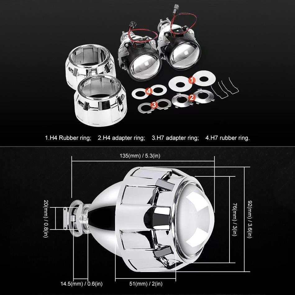 Lensa bi-xenon Visteon HID 2,5 inci, lampu xenon H1, lampu depan LED mobil, sinar tinggi dan rendah, super terang.