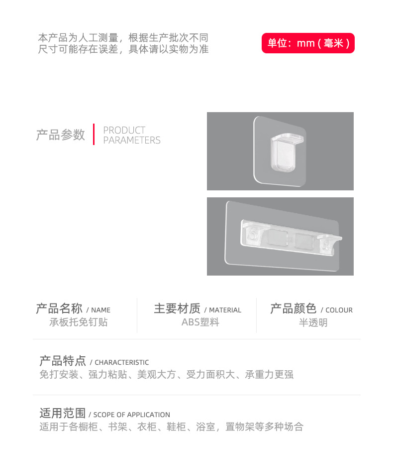 Rak Tempel tanpa kelim, rak tempel bebas lubang, lemari pakaian, lapisan partisi, Pel, braket segitiga, penyangga tetap, rak kuku, aksesori tetap