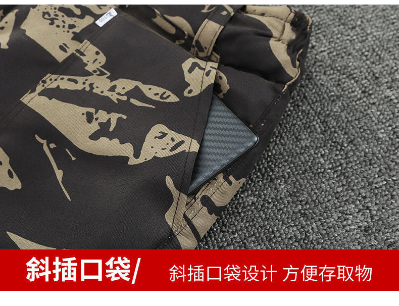 定制夏季薄款迷彩套装弹力迷彩裤休闲大码宽松透气短袖工装劳保服