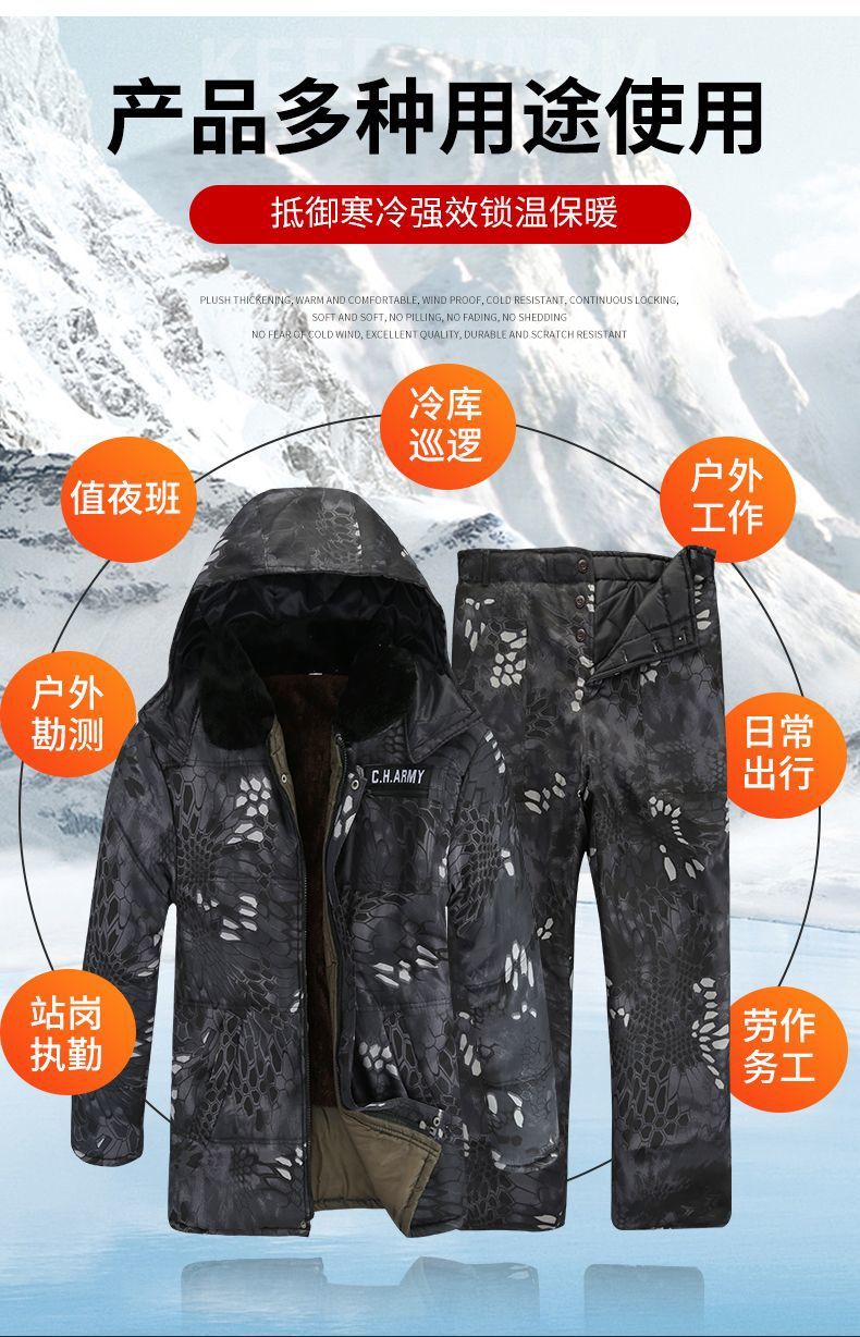 冬季棉服加绒加厚迷彩男士棉袄劳保干活厚棉衣保暖冷库工作防寒服