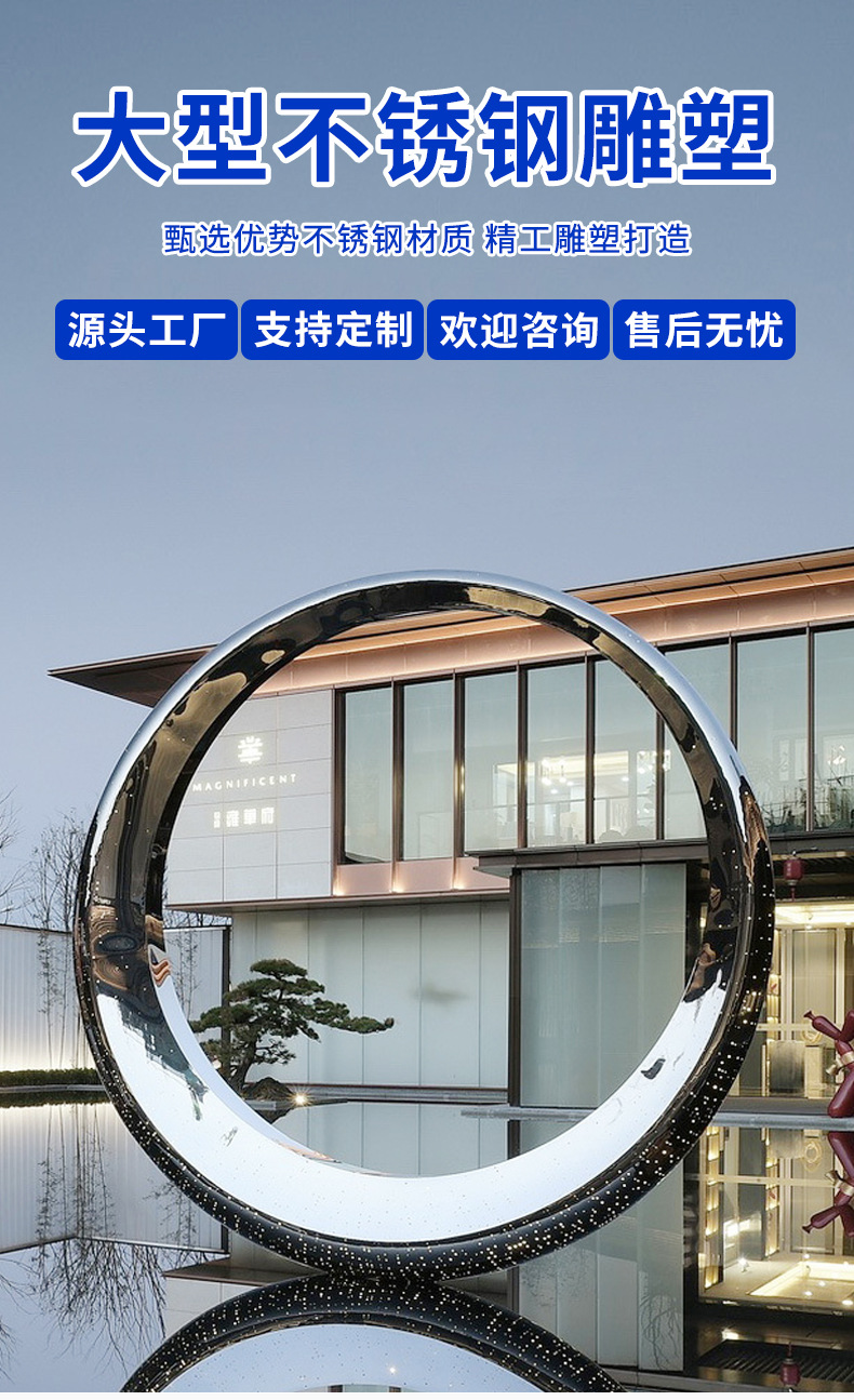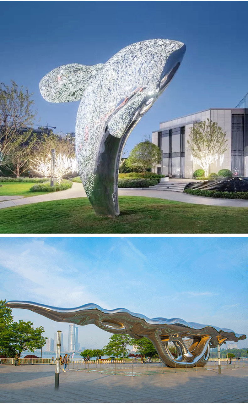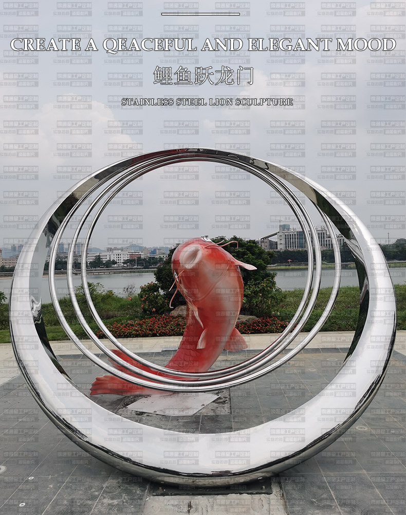 Lansekap Taman Cermin Logam Stainless Steel Ikan Mas Yuilongmen Logam Patung Taman Air Patung Luar Ruangan Besar