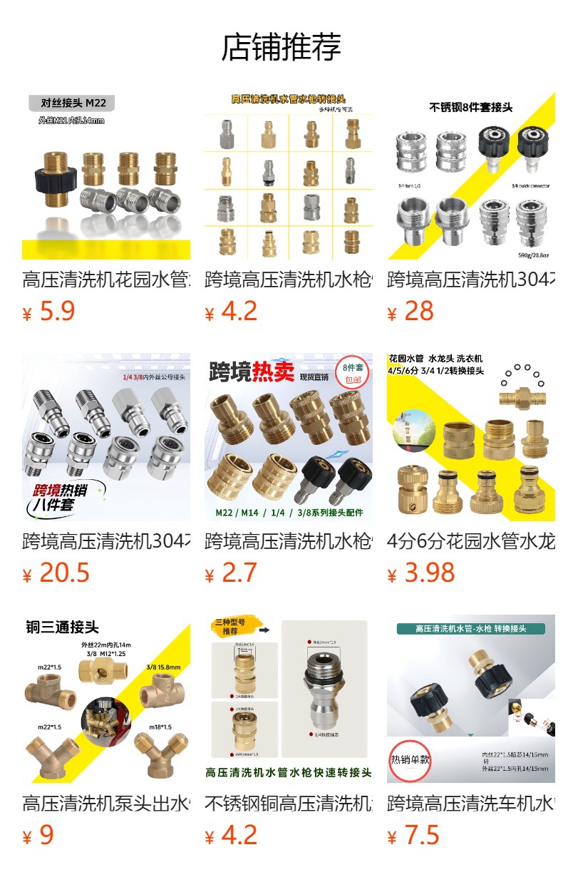 Mesin Pembersih Tekanan Tinggi Lintas Batas 304 Baja Tahan Karat Rumah Tangga NPT Cuci Mobil 1/4 Pipa Air 3/8 Pistol Air Aksesori Konektor Steker Cepat