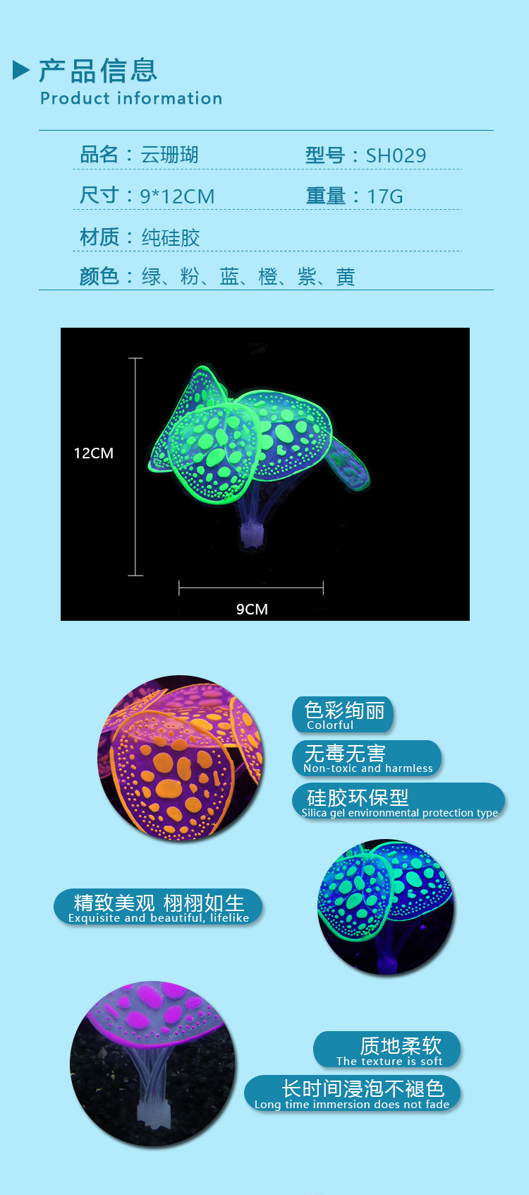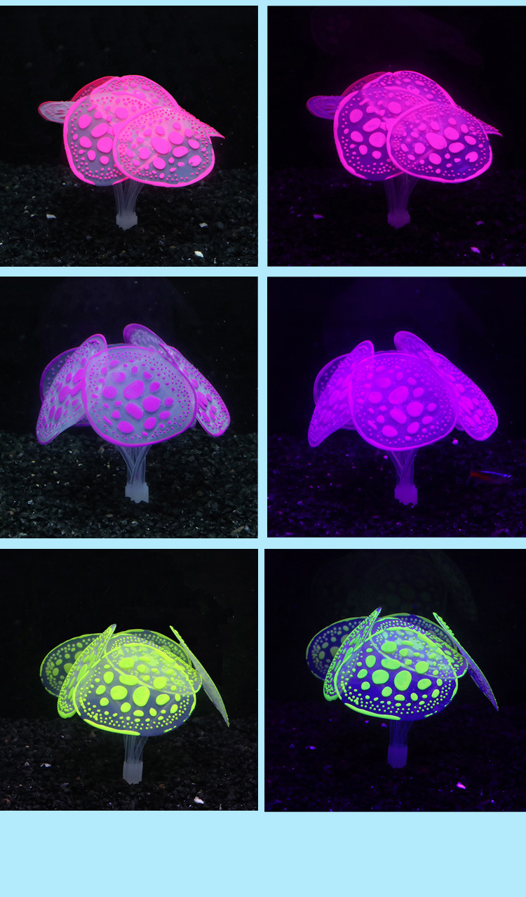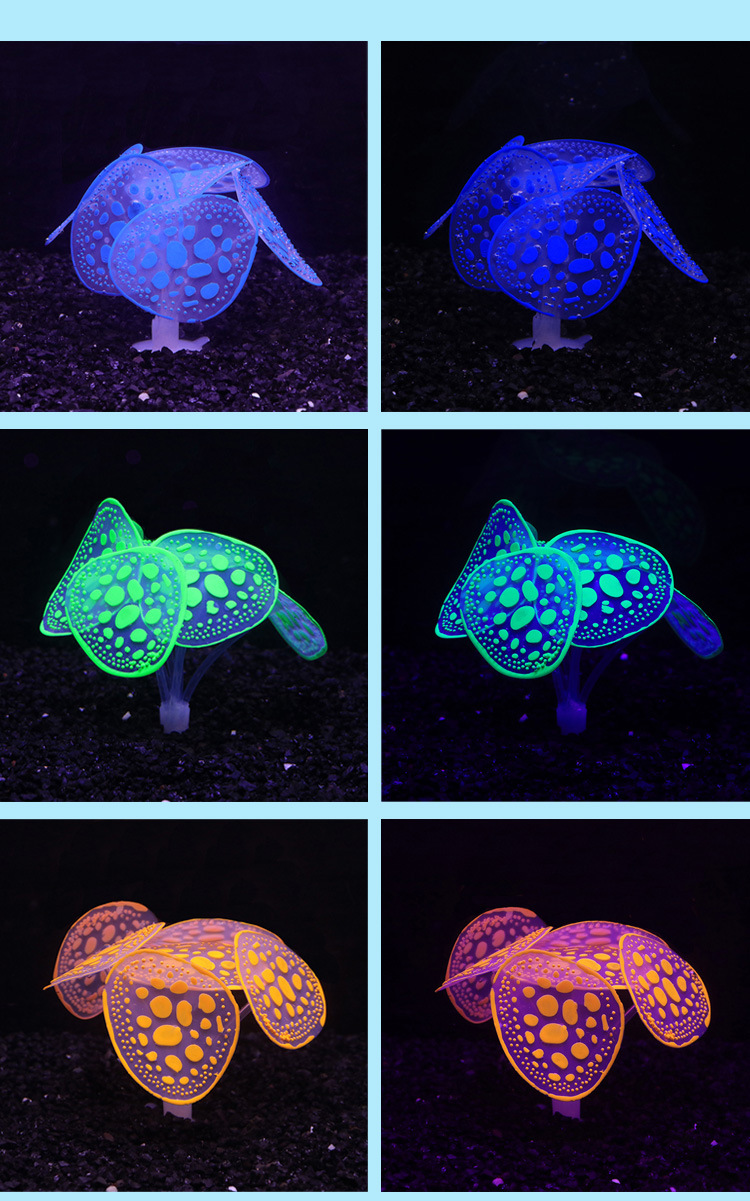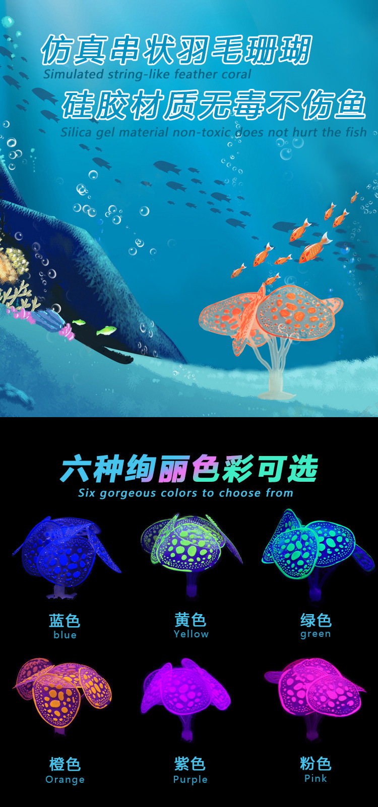 Dekorasi akuarium tangki ikan silikon lembut simulasi karang dengan efek fluoresensi dekorasi tangki ikan fluoresen.