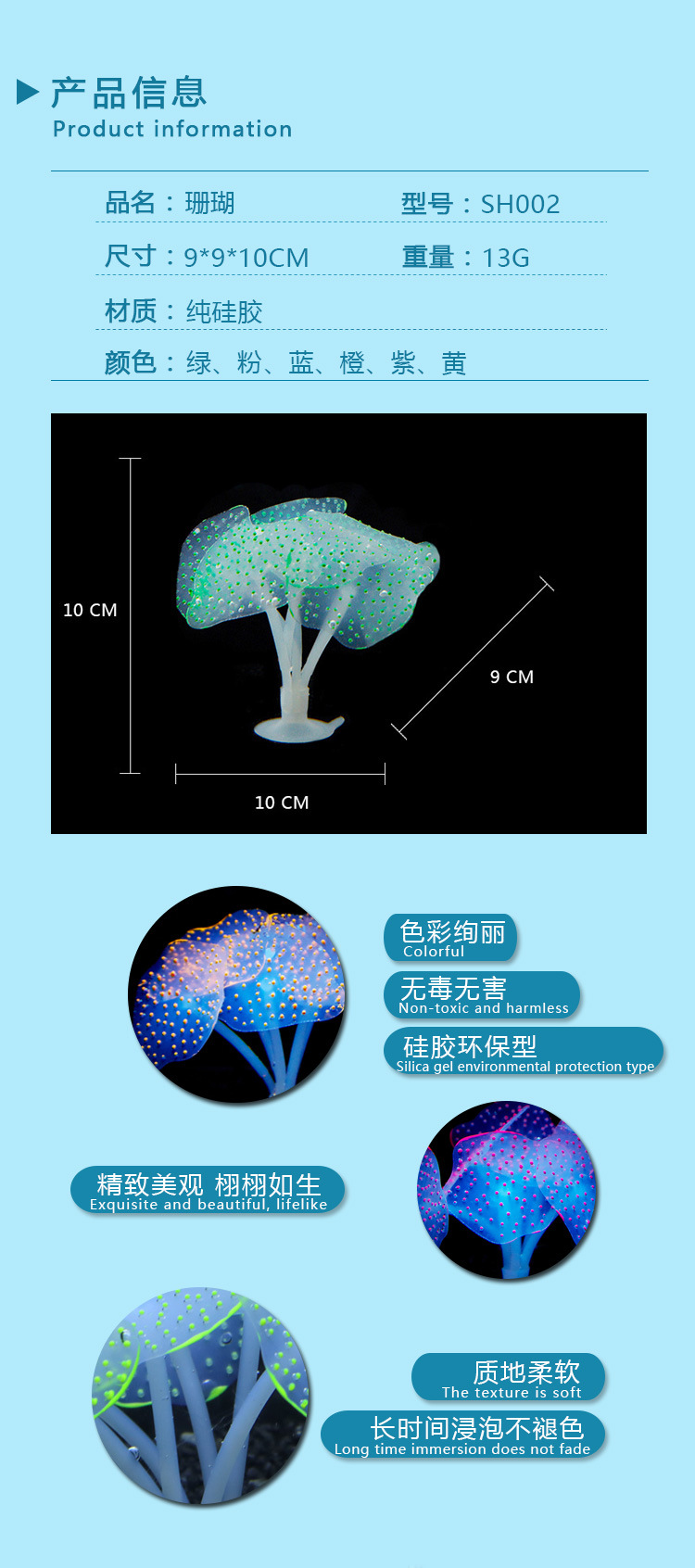 Silikon Neon Kreatif Tangki Ikan Akuarium Dekorasi Ubur-Ubur Buatan Akuarium Lansekap Perlengkapan Kerajinan Karang Buatan
