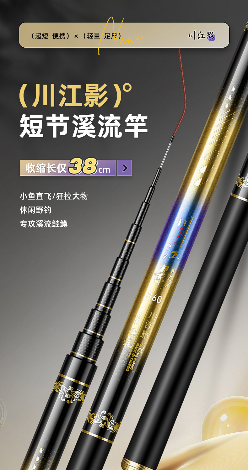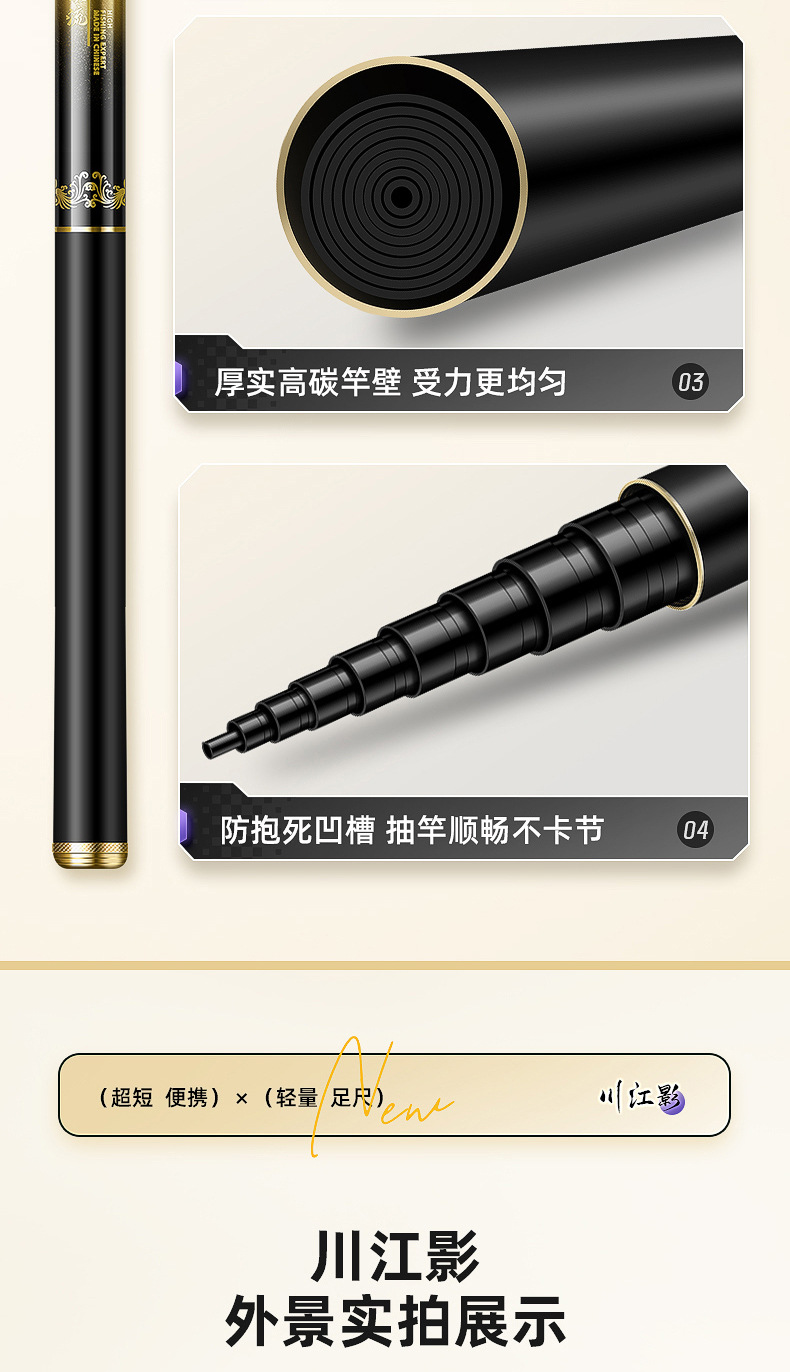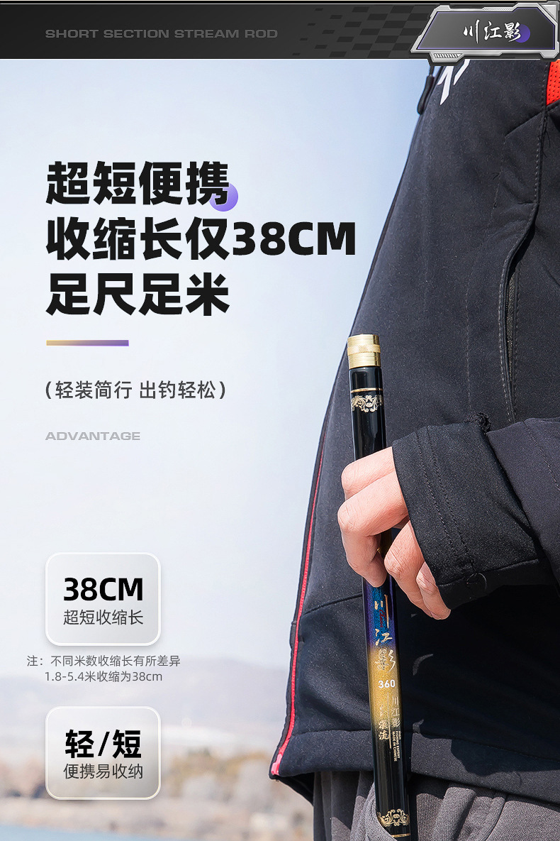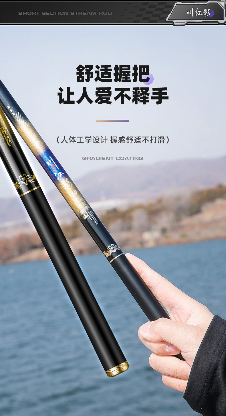 Chuanjiang tongkat pancing shadow portabel, tongkat tangan bagian ultra pendek, Ultra ringan super keras 28 dapat diatur untuk memancing ikan karper