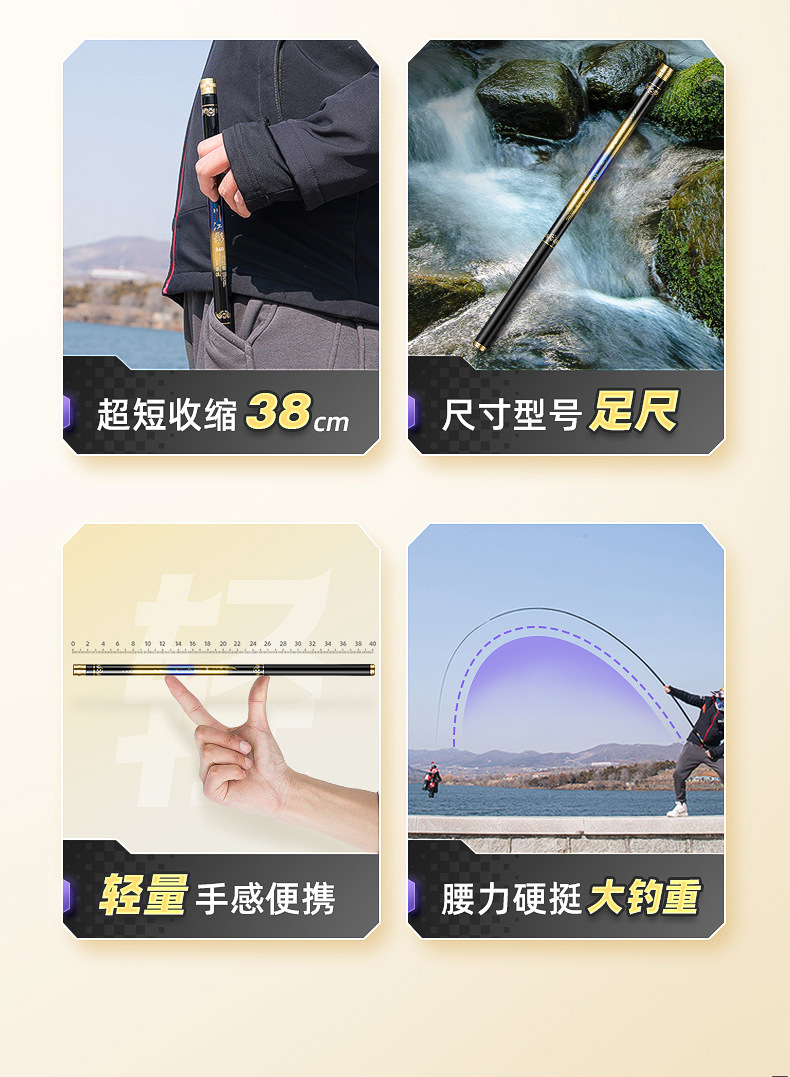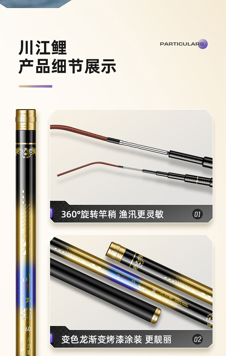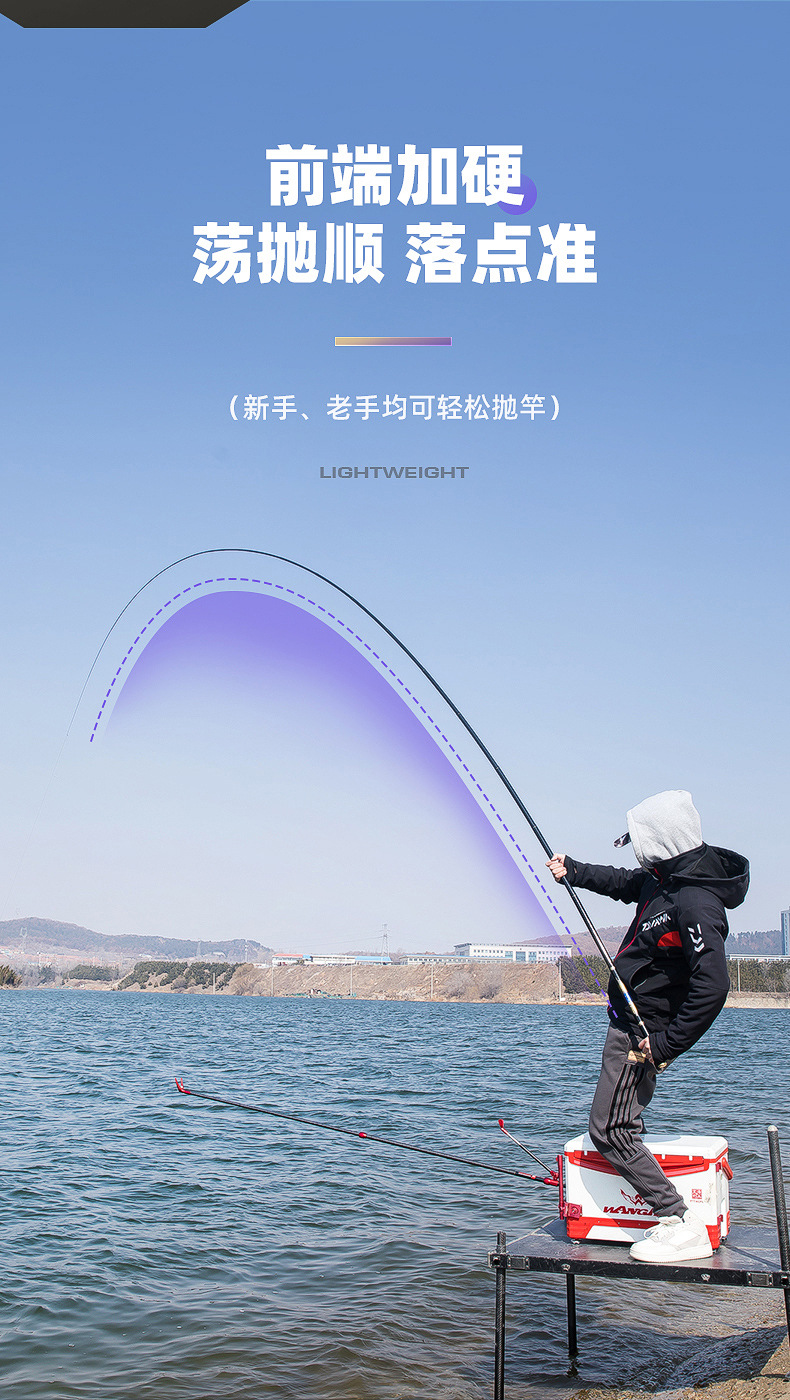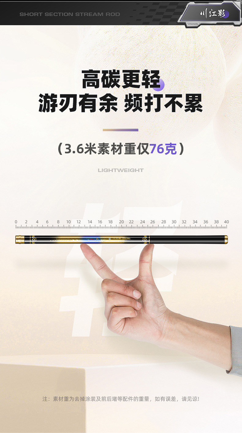 Chuanjiang tongkat pancing shadow portabel, tongkat tangan bagian ultra pendek, Ultra ringan super keras 28 dapat diatur untuk memancing ikan karper