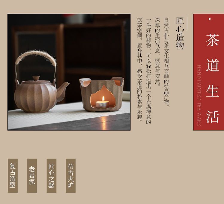 Teko Stoneware, kompor, teko, lilin api terang, Pot sorot, teh hangat sederhana sesuai teko luar ruangan