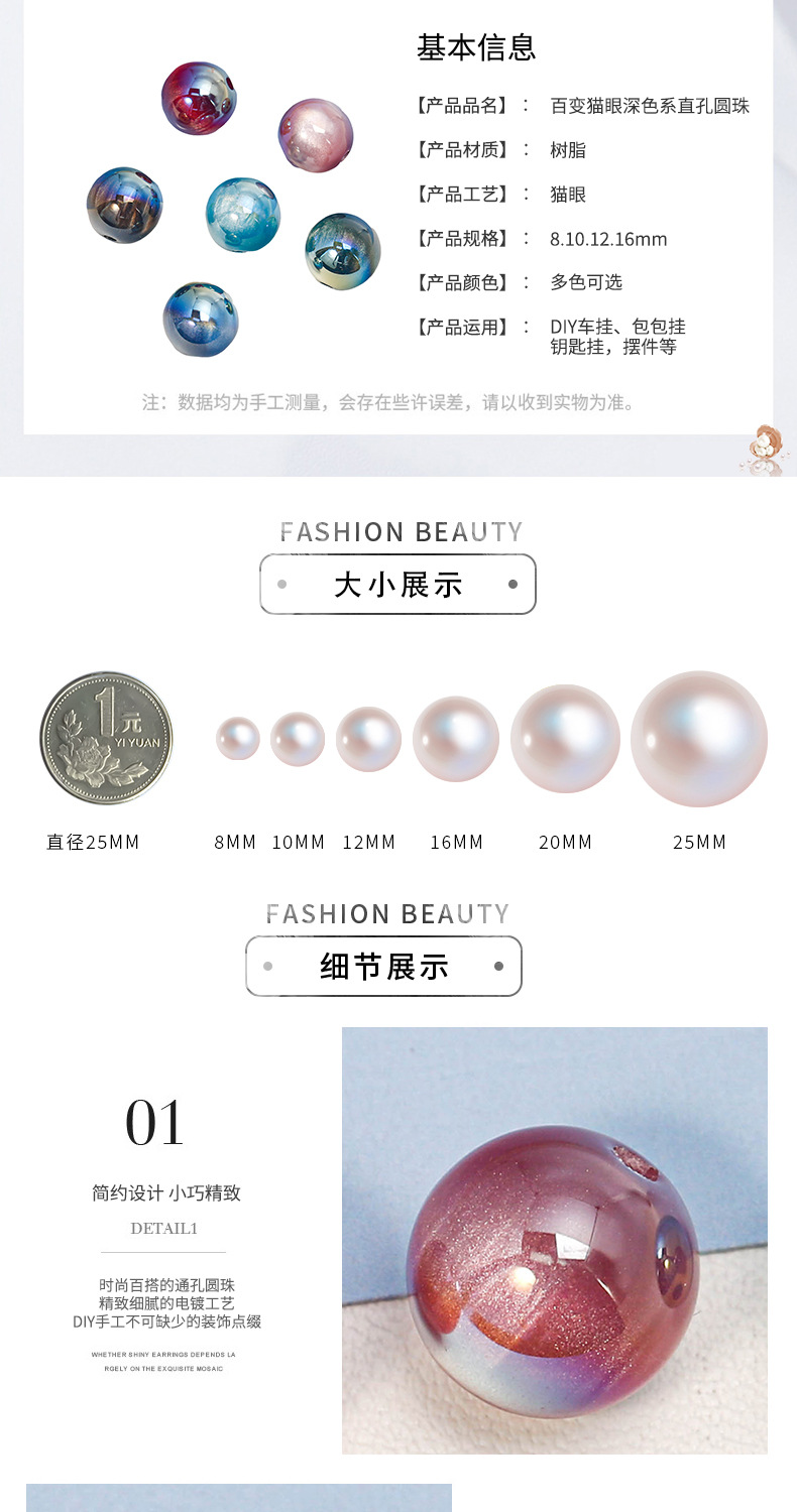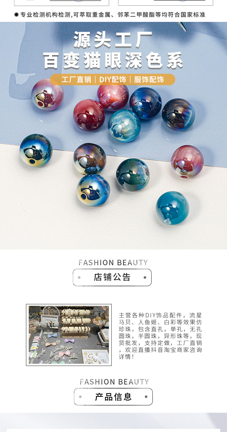 [Isi 20-50 buah] Manik-manik mata kucing serbaguna berlapis elektroplating untuk diy gelang rantai ponsel, manik-manik resin lepas ukuran 16mm