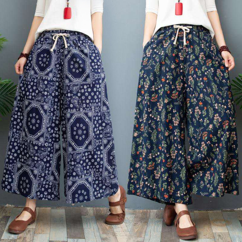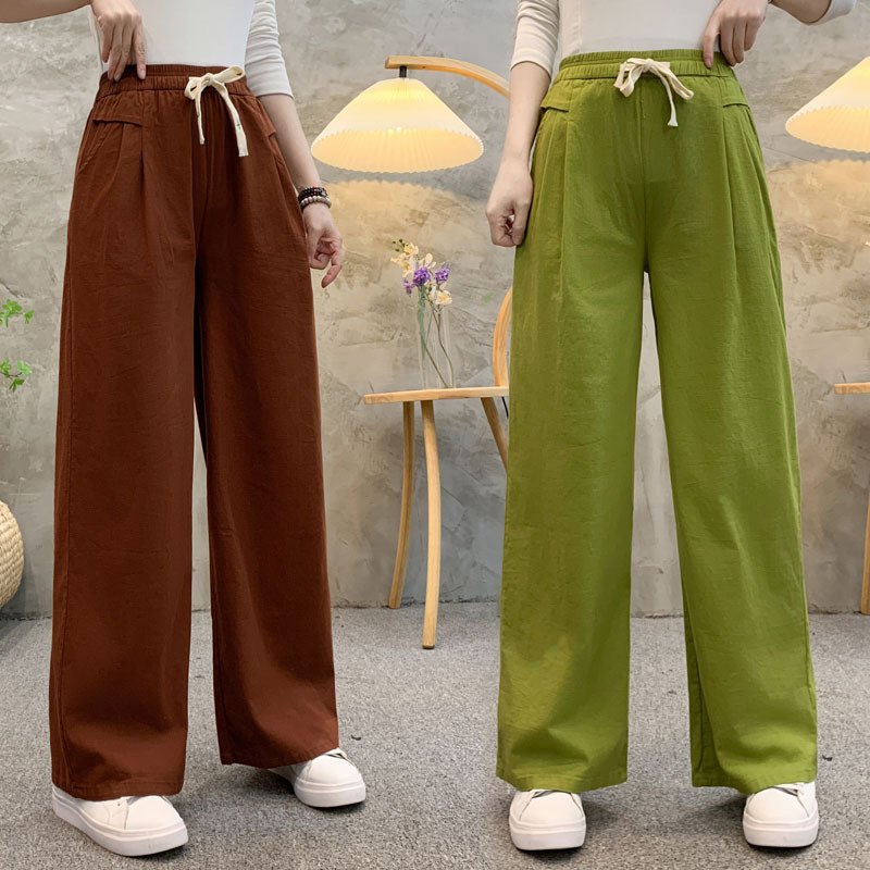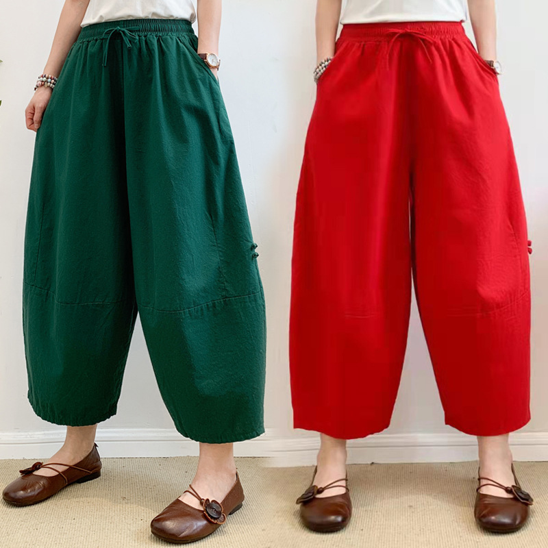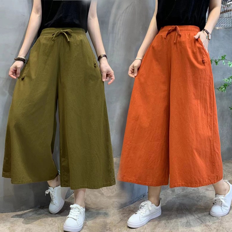 Celana Kulot Katun dan Linen Musim Panas untuk Wanita, Celana Wanita Ukuran Besar Tipis Delapan Titik, Celana Lebar Rami Longgar, Celana Terbungkus Linen Kasual