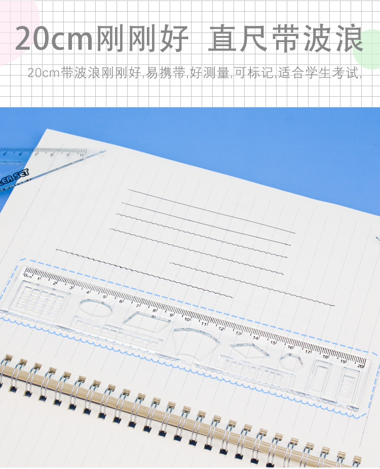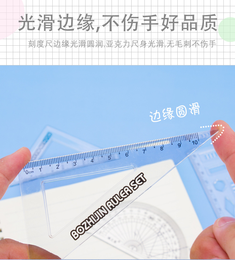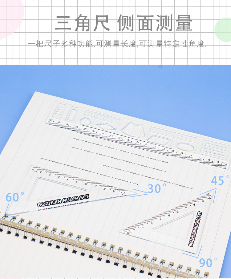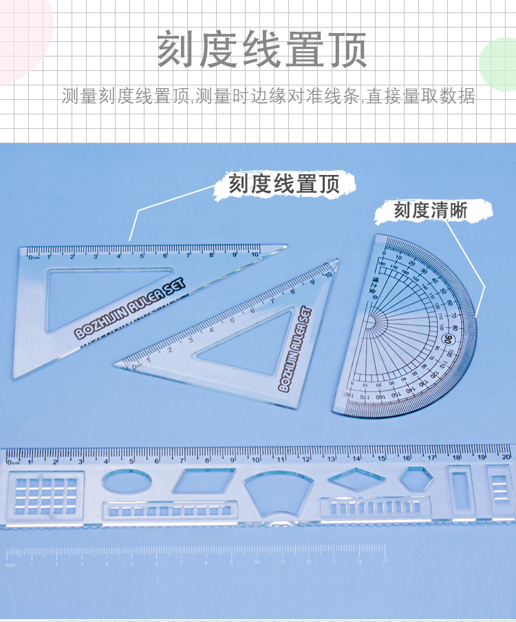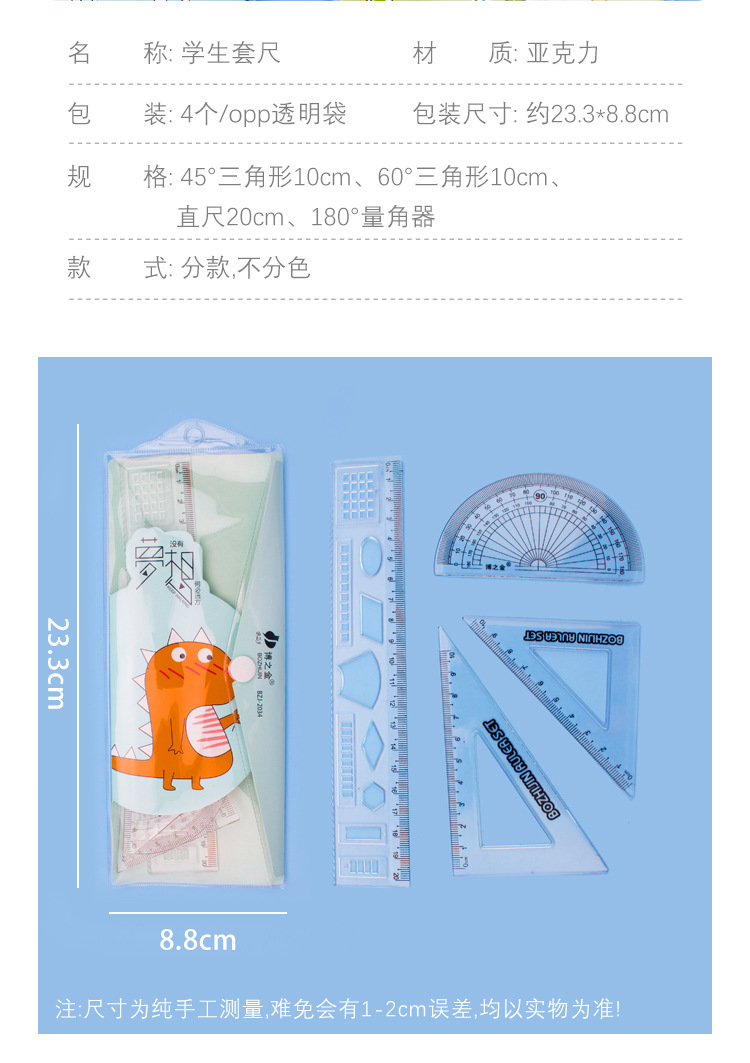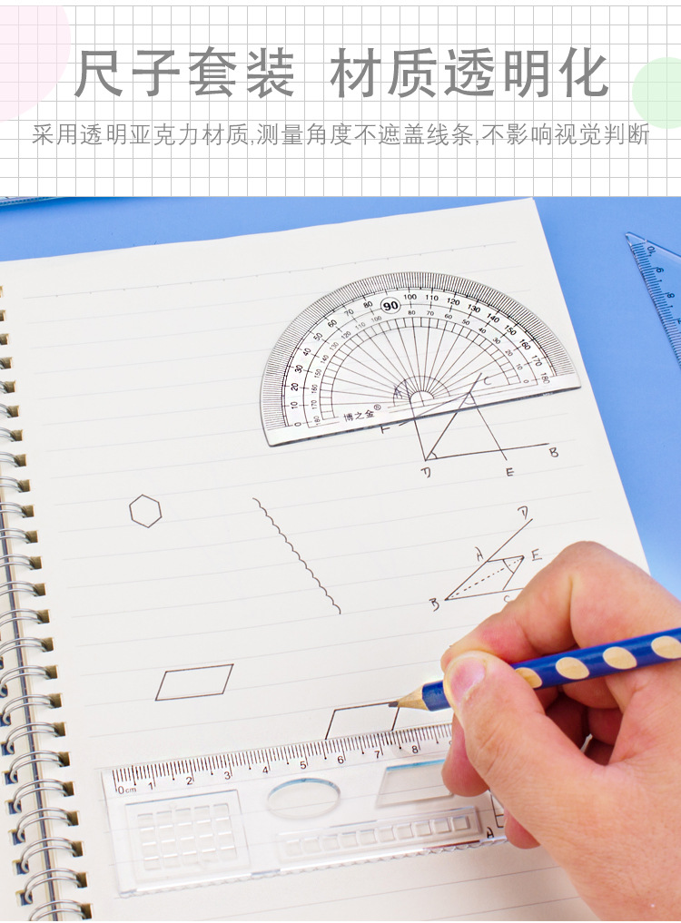 Penggaris setelan anak, perlengkapan alat tulis belajar kartun multifungsi, penggaris segitiga
