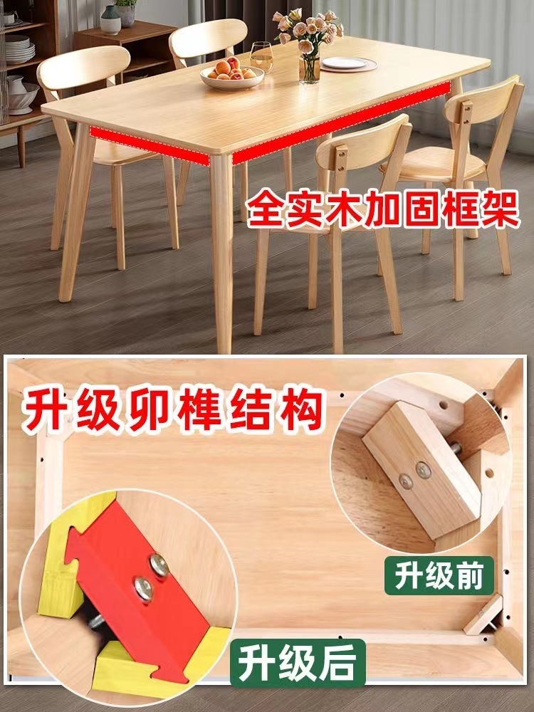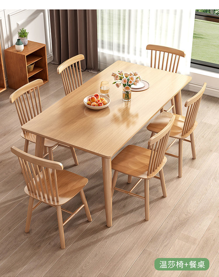 Meja makan dan kursi Nordic, kayu solid murni kombinasi modern minimalis rumah tangga apartemen kecil persegi panjang meja makan restoran meja makan