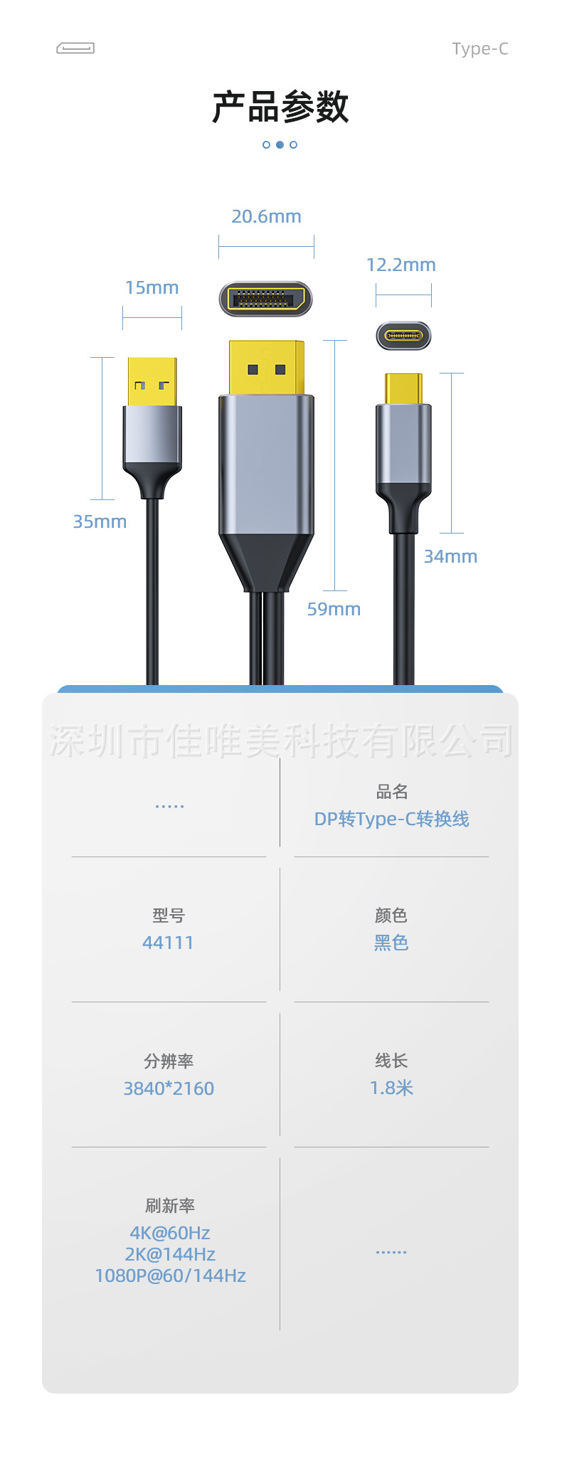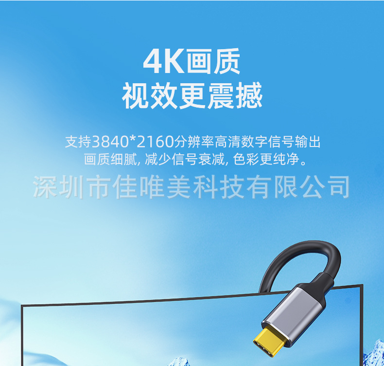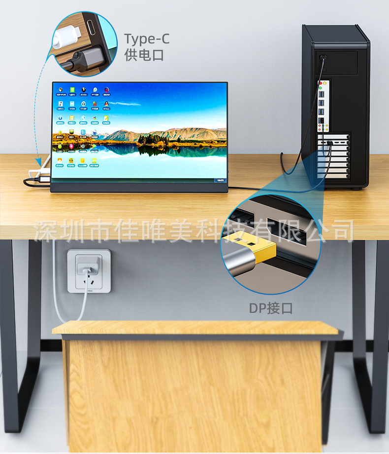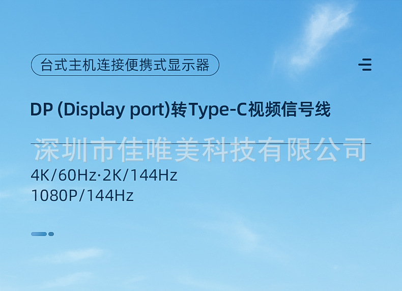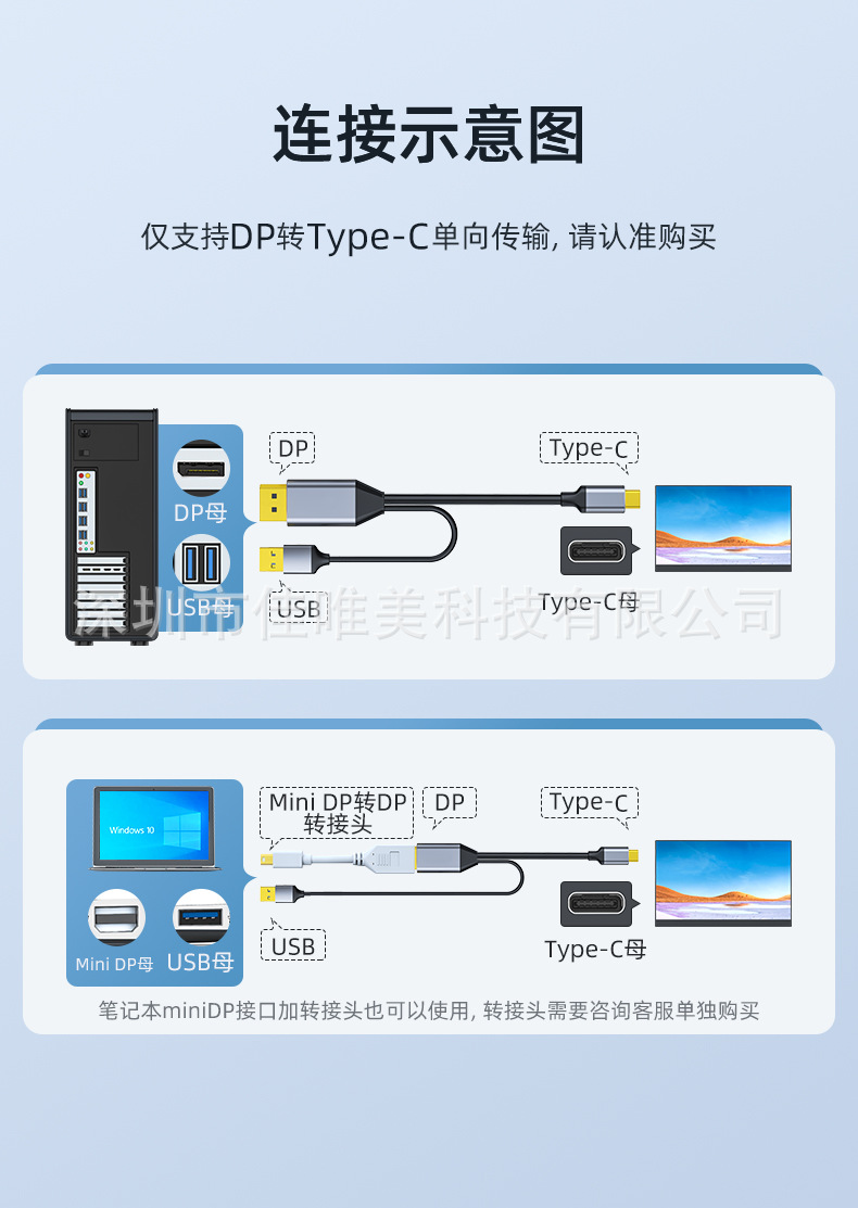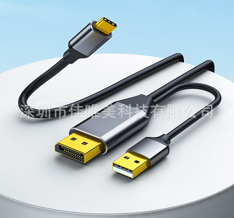Kabel DP ke Type-C definisi tinggi dengan adaptor monitor catu daya DP ke Type-C dengan kabel pengisi daya kabel video