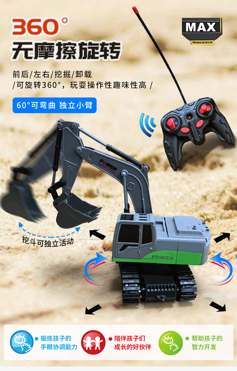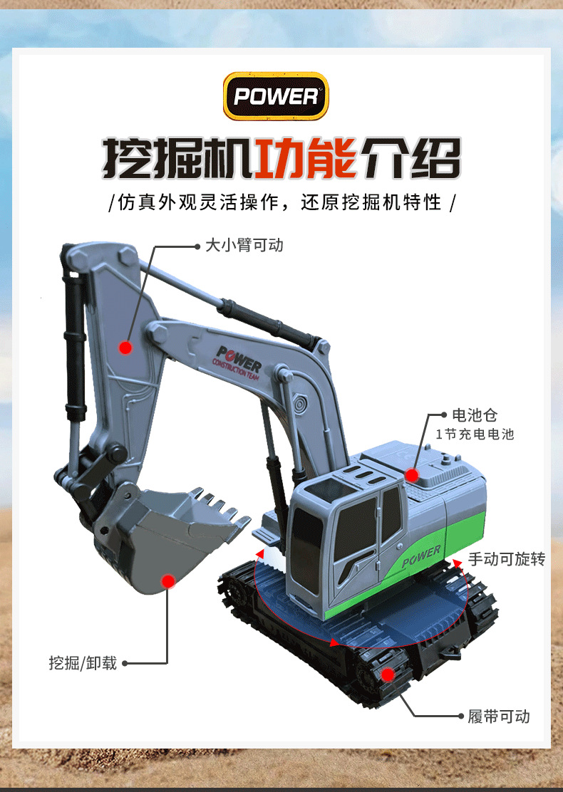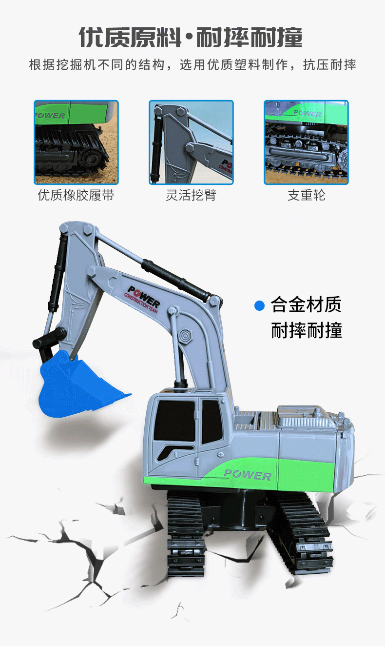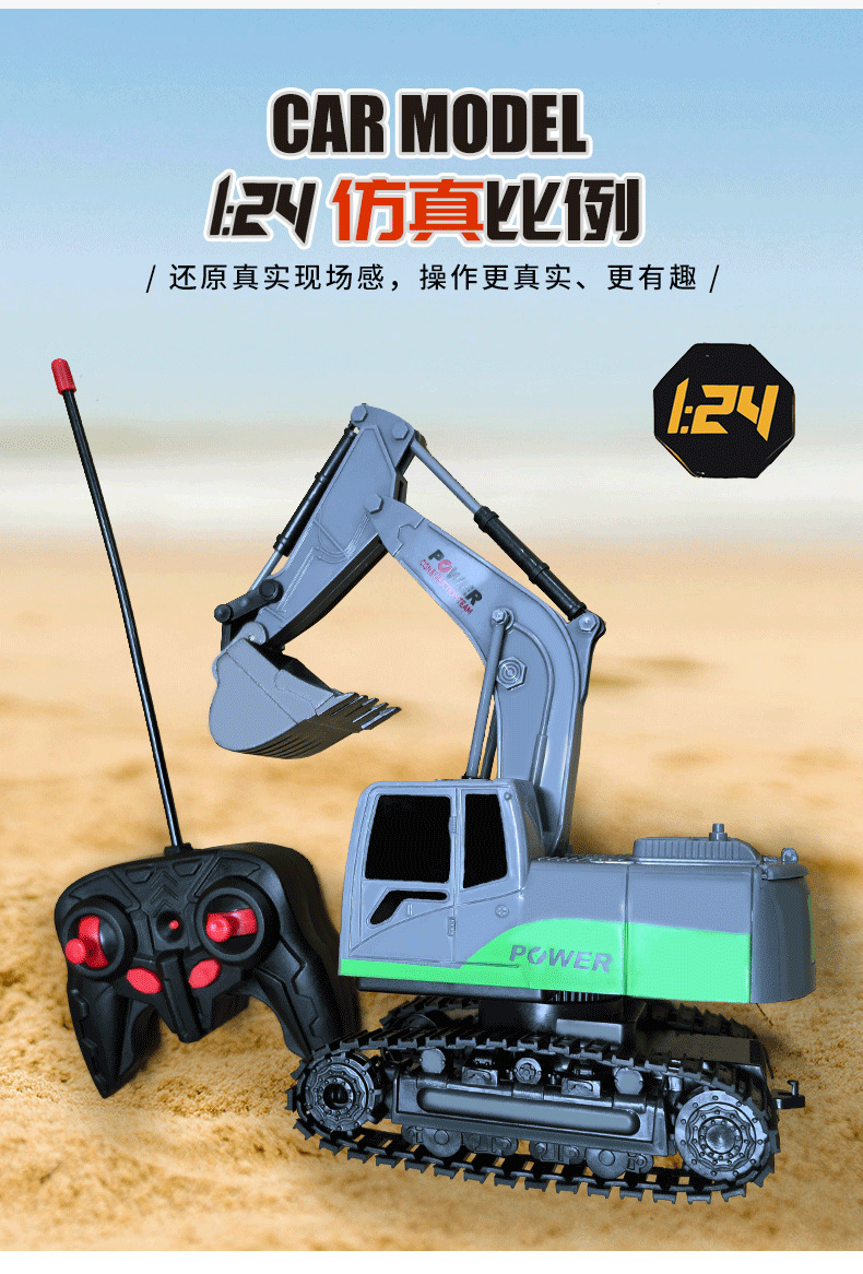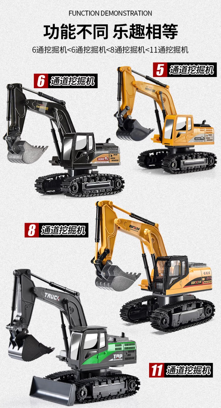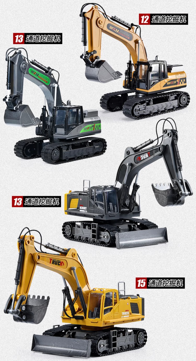 Mobil mainan remote control anak laki-laki, mobil mainan teknik penggali elektrik simulasi logam paduan besar lintas batas