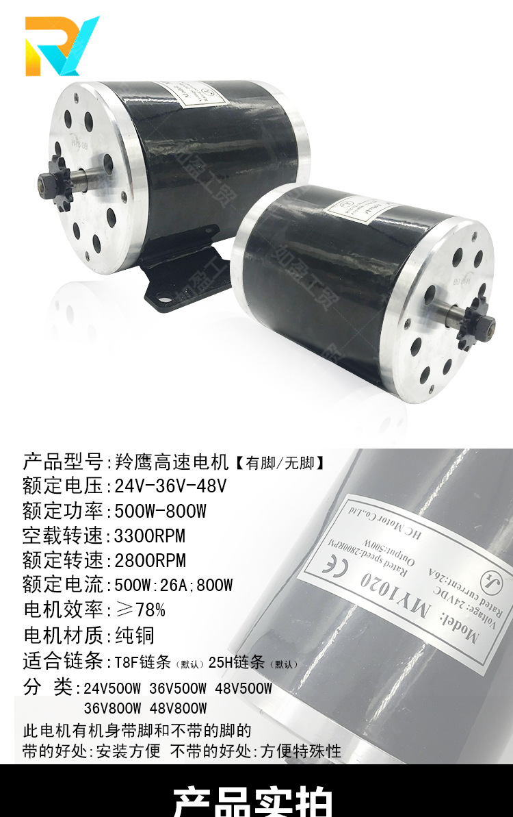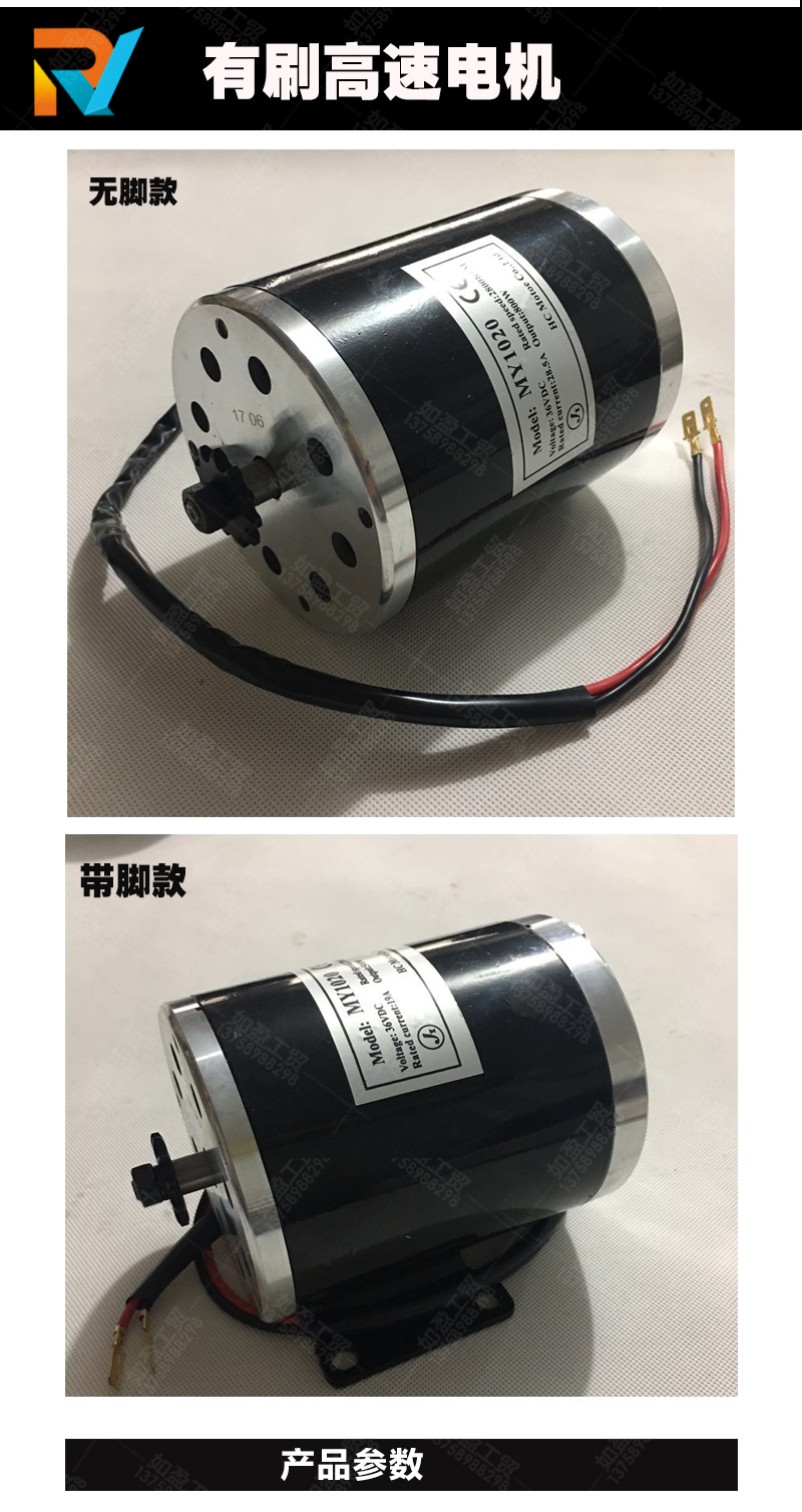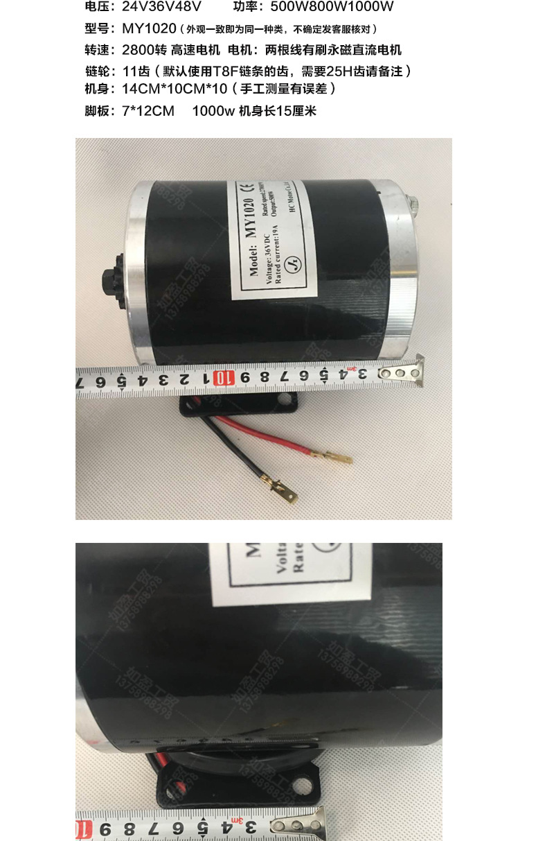 48V高速电机电动车改装直流永磁有刷电机24V36V500W大功率MY1020
