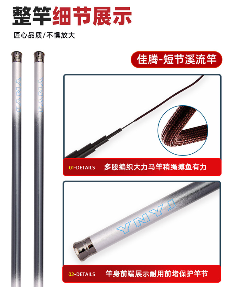 Xiliu alat pancing portabel, tongkat tangan bagian pendek super ringan ultra halus super keras 37 ikan karper dapat disesuaikan pabrik grosir