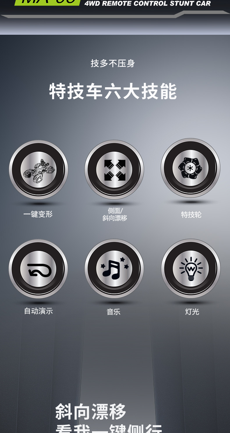 Dragon cepat mobil mainan anak-anak, mobil listrik kendali jarak jauh gagang baru 2.4g penggerak empat-roda aksi suara dan lampu mendaki