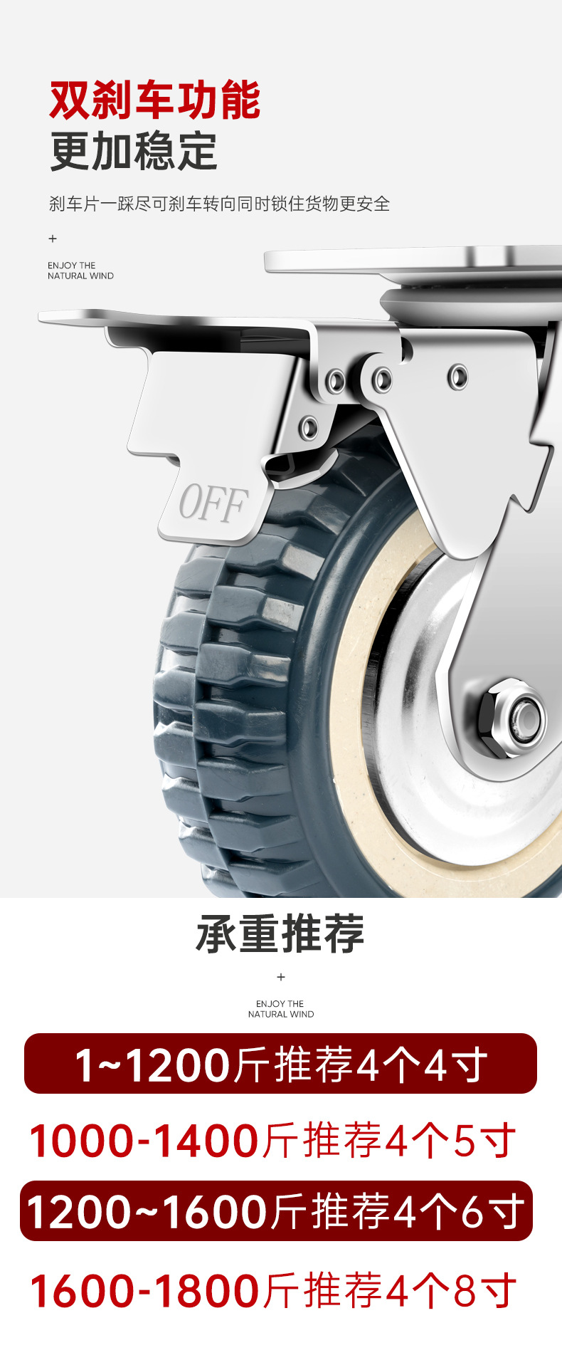 Roda dorong kuat, roda suar 4568 inci polyurethane pu caster dengan rem tarik kargo roda panas skuter roda universal