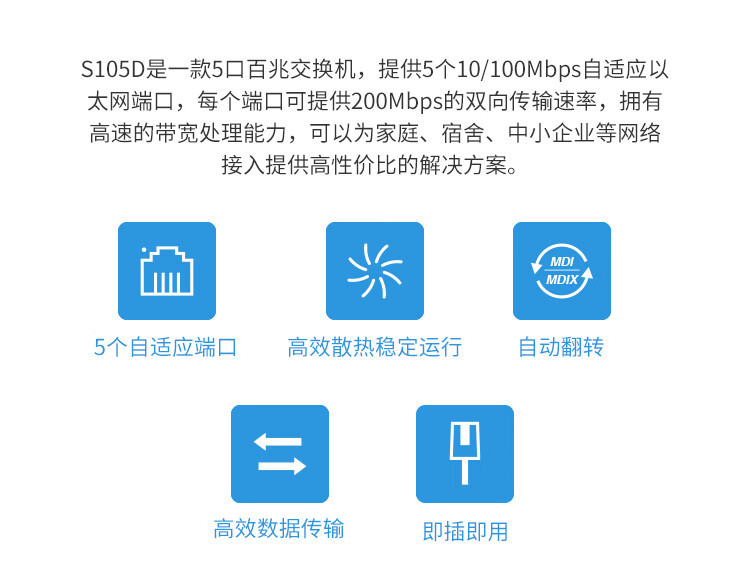 支持即插即用,端口自动翻转(Auto MDI/MDIX)