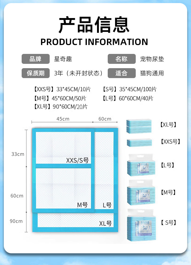 Xingqiqu bantalan popok hewan peliharaan, bantalan penyerap bau S/M/L biru tebal bantalan produksi penyerap bau