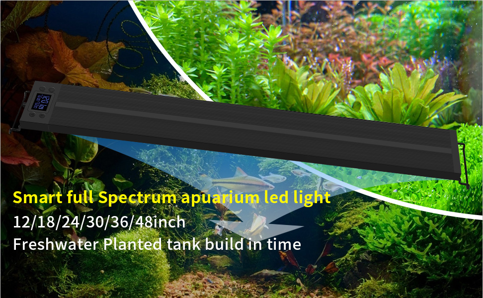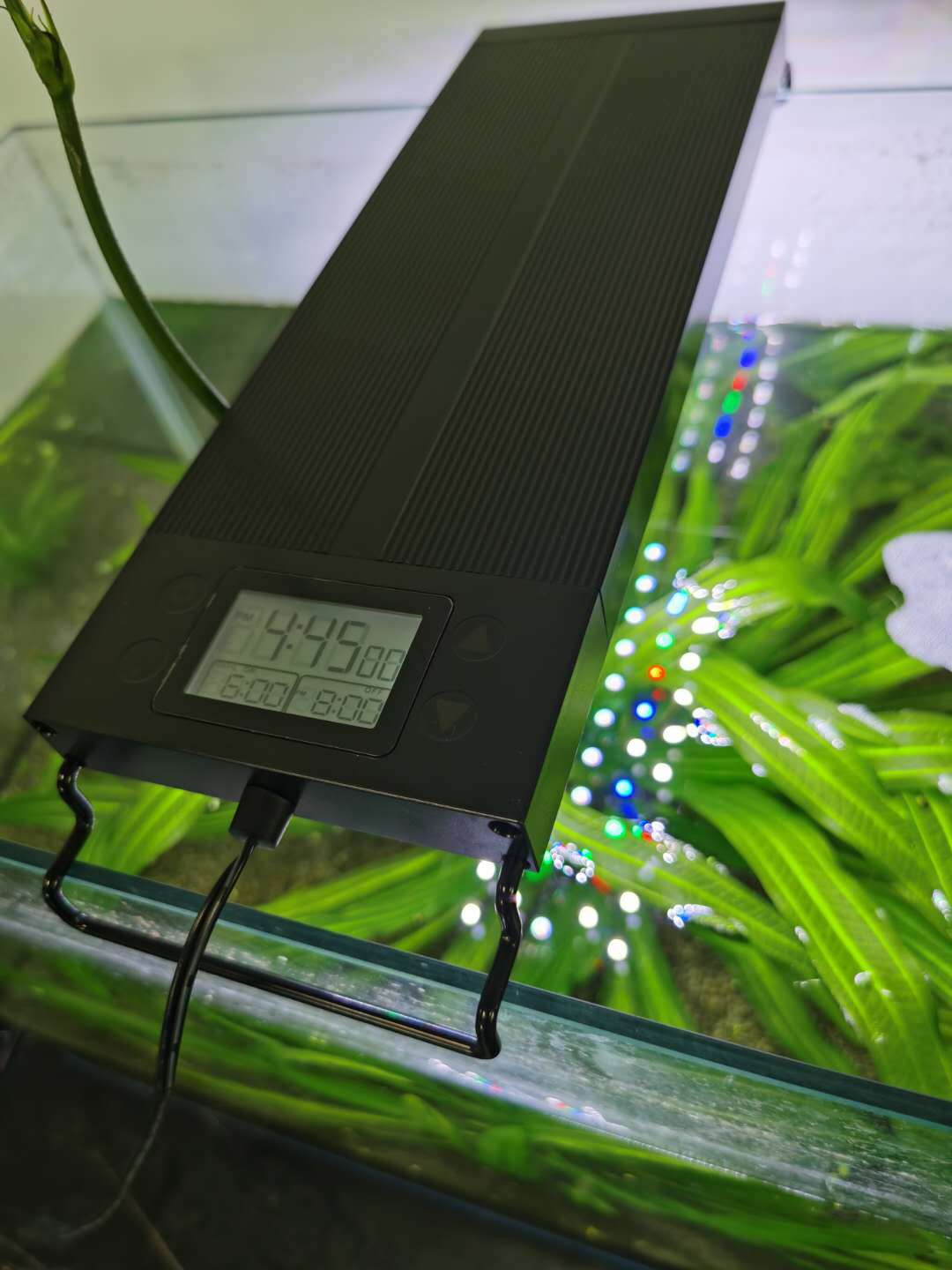 定时主灯DAYLIHGT (白天模式)开与关,开灯时模拟日出效果90分钟内由最低亮度开始慢慢到最亮。防止灯光突然变亮鱼儿受到惊吓跳缸。