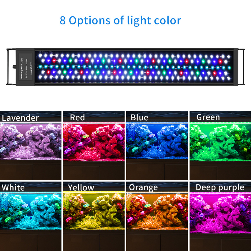 也可由RGB7彩组成的渐变循环色来装饰夜晚的鱼缸,把鱼缸装扮成一道美丽生动的风景。