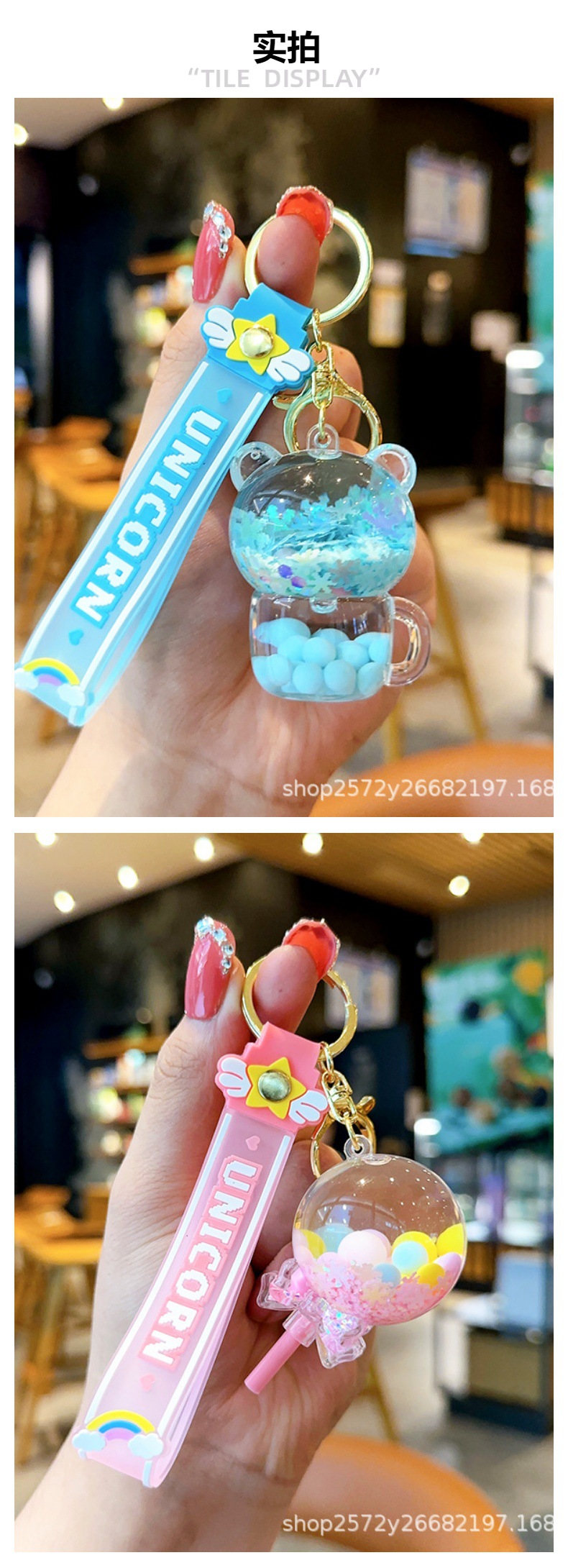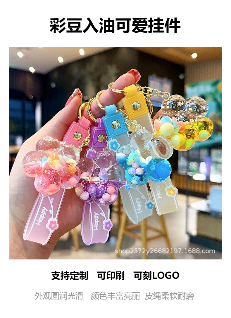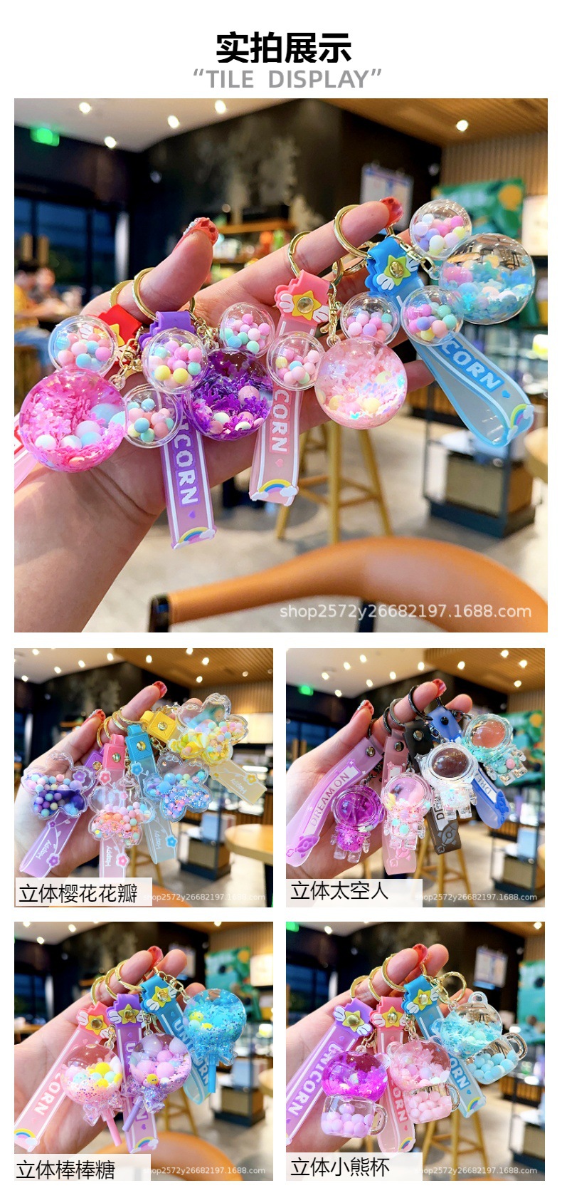 Manik-manik warna-warni baru gantungan kunci mobil minyak liontin transparan akrilik pasir hisap gantungan kunci perusahaan Festival hadiah kreatif