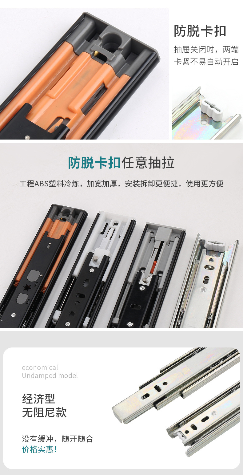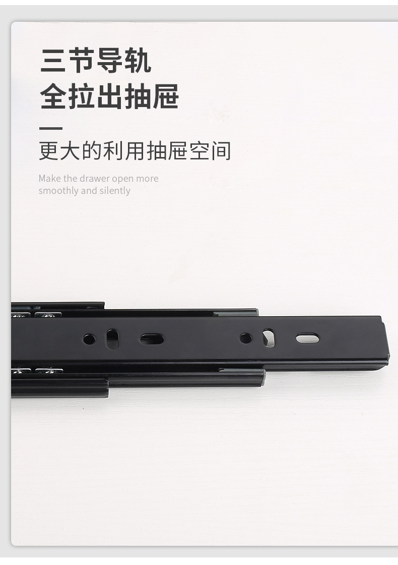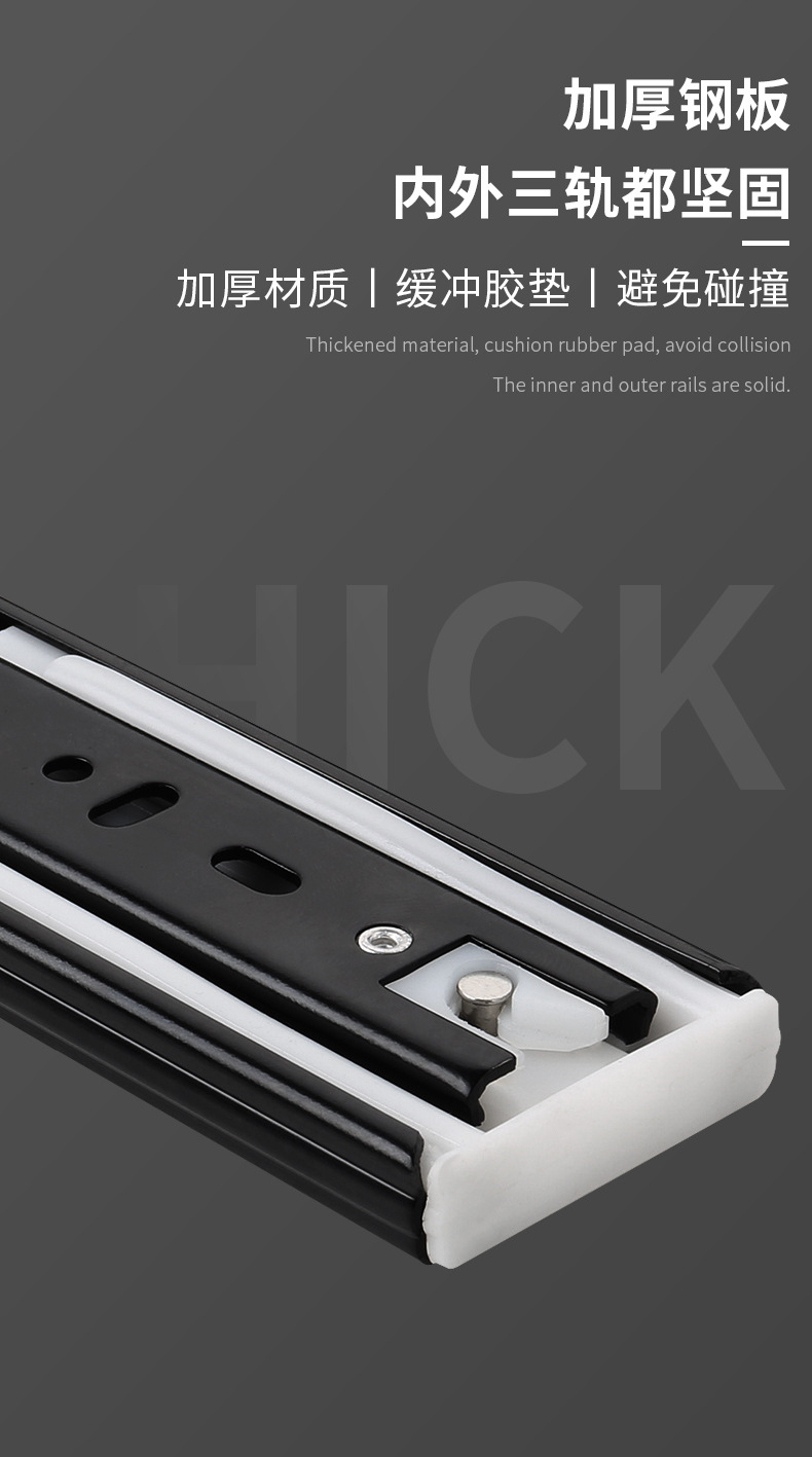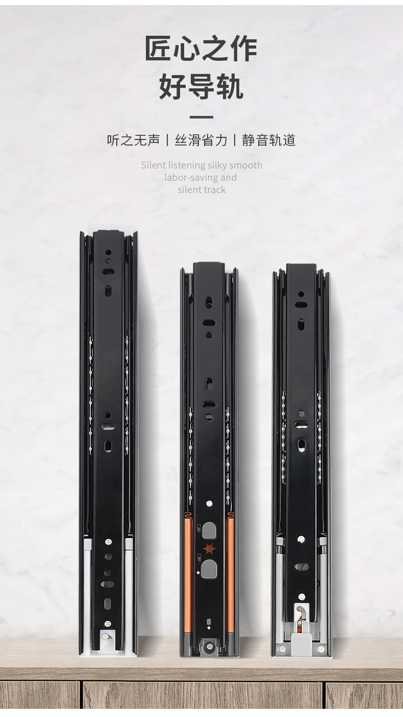 Laci tiga bagian Rebound rel geser kabinet rel geser kabinet bola bengkok lemari penyangga redaman terpasang sisi tebal