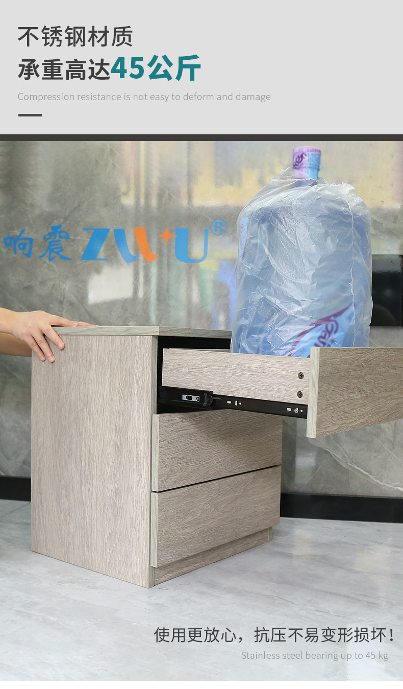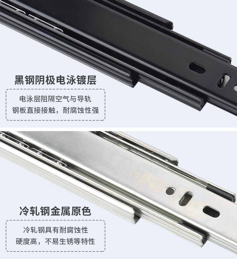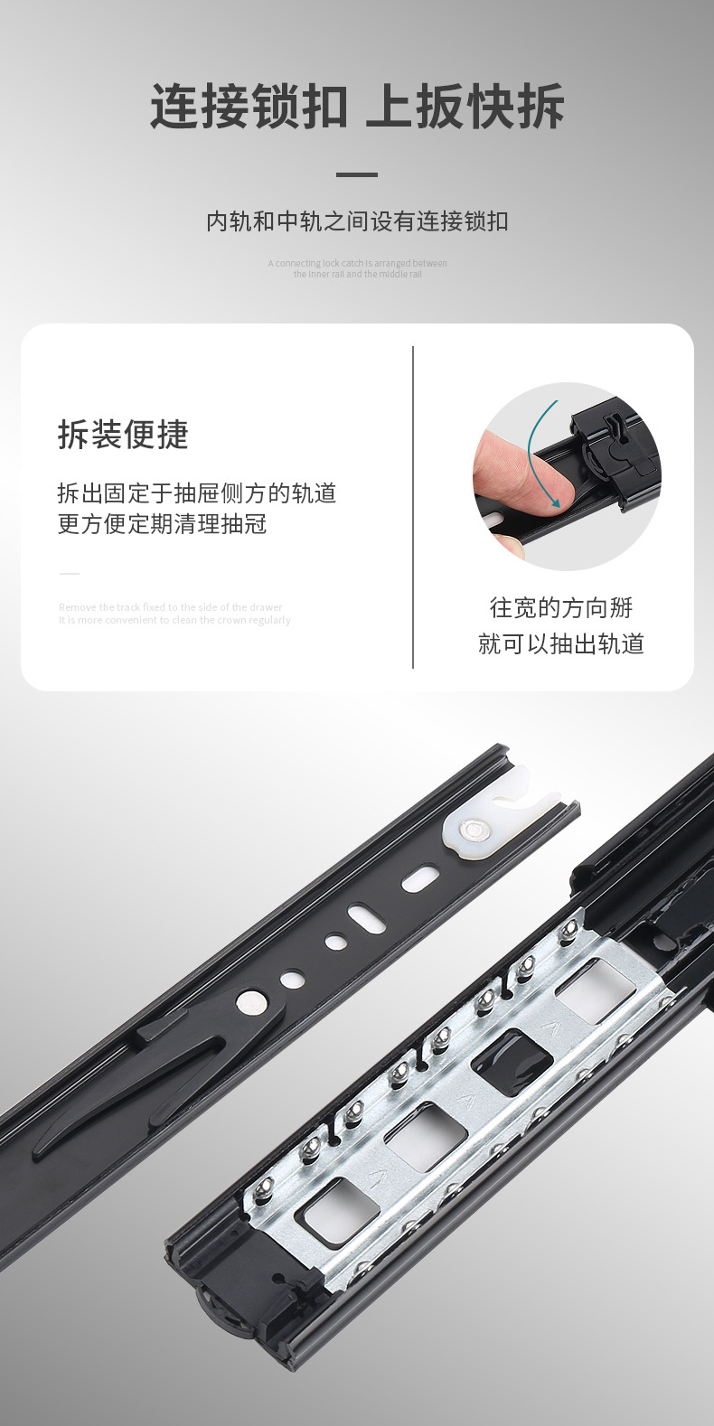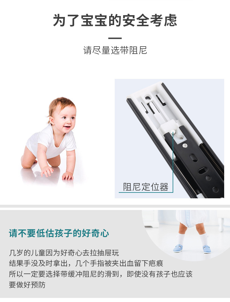 Laci tiga bagian Rebound rel geser kabinet rel geser kabinet bola bengkok lemari penyangga redaman terpasang sisi tebal