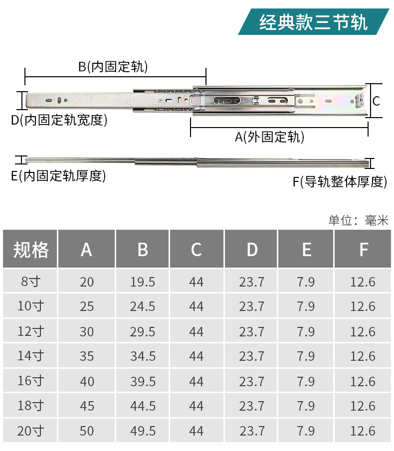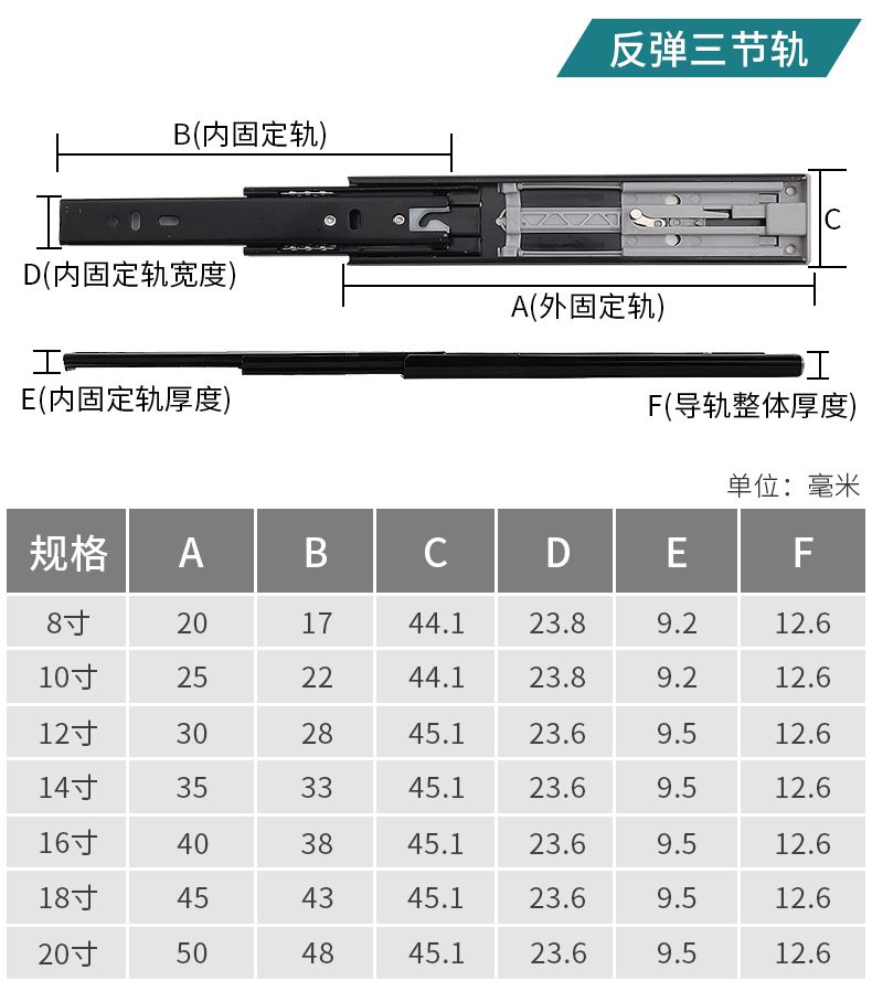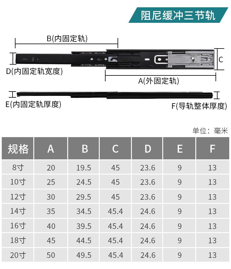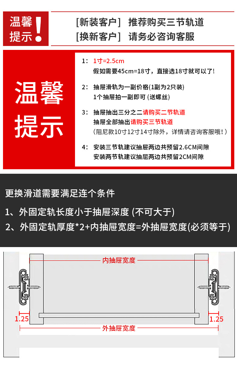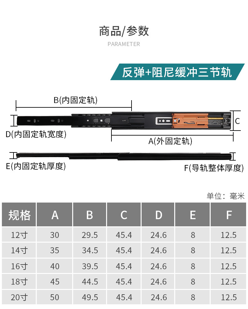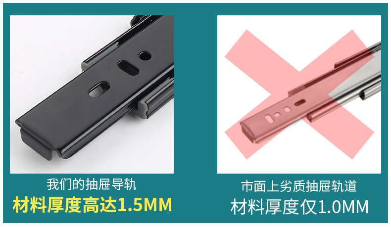 Laci tiga bagian Rebound rel geser kabinet rel geser kabinet bola bengkok lemari penyangga redaman terpasang sisi tebal