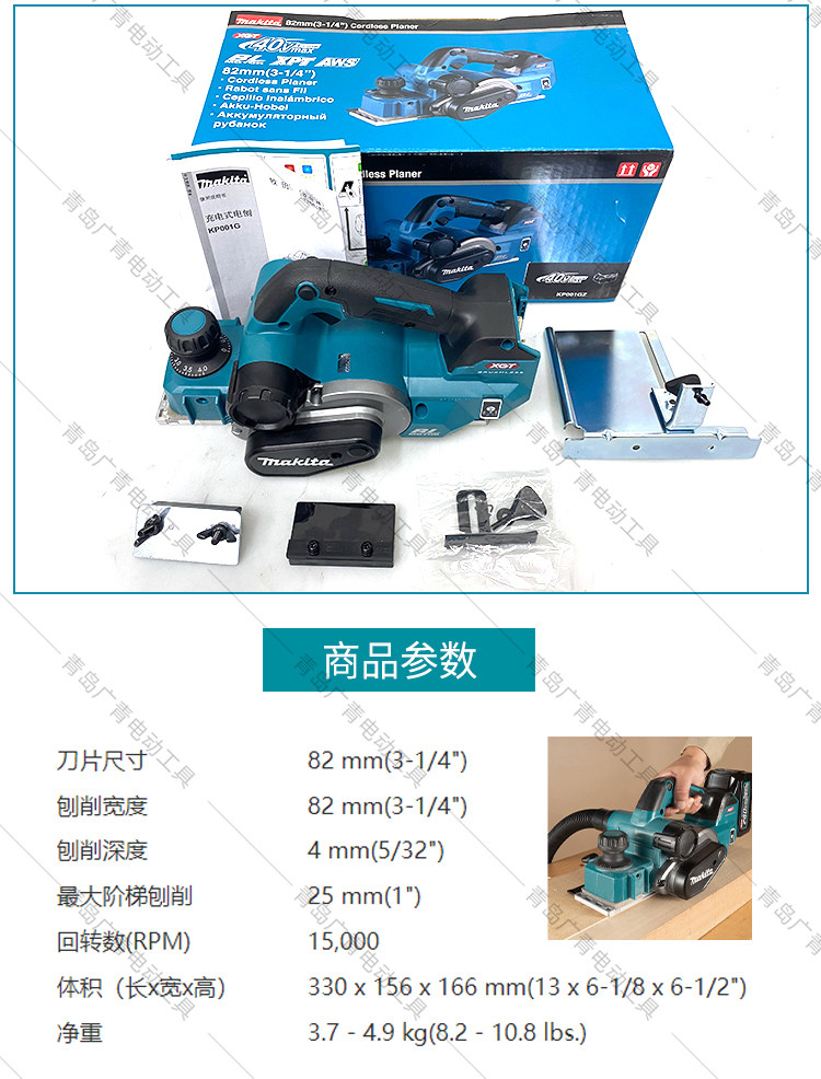 Makita KP001G planer listrik untuk pekerjaan kayu yang dapat diisi ulang untuk penggunaan di rumah, planer listrik portabel tanpa sikat, planer kayu dorong tangan.