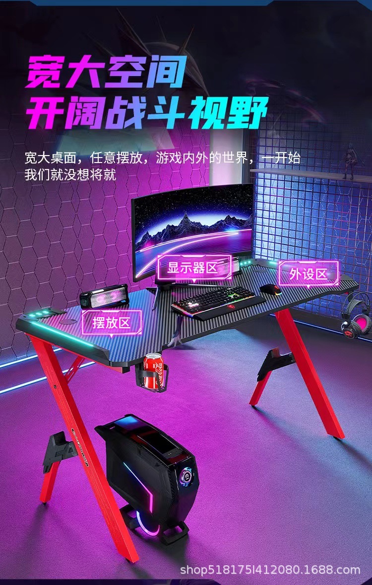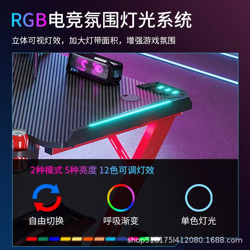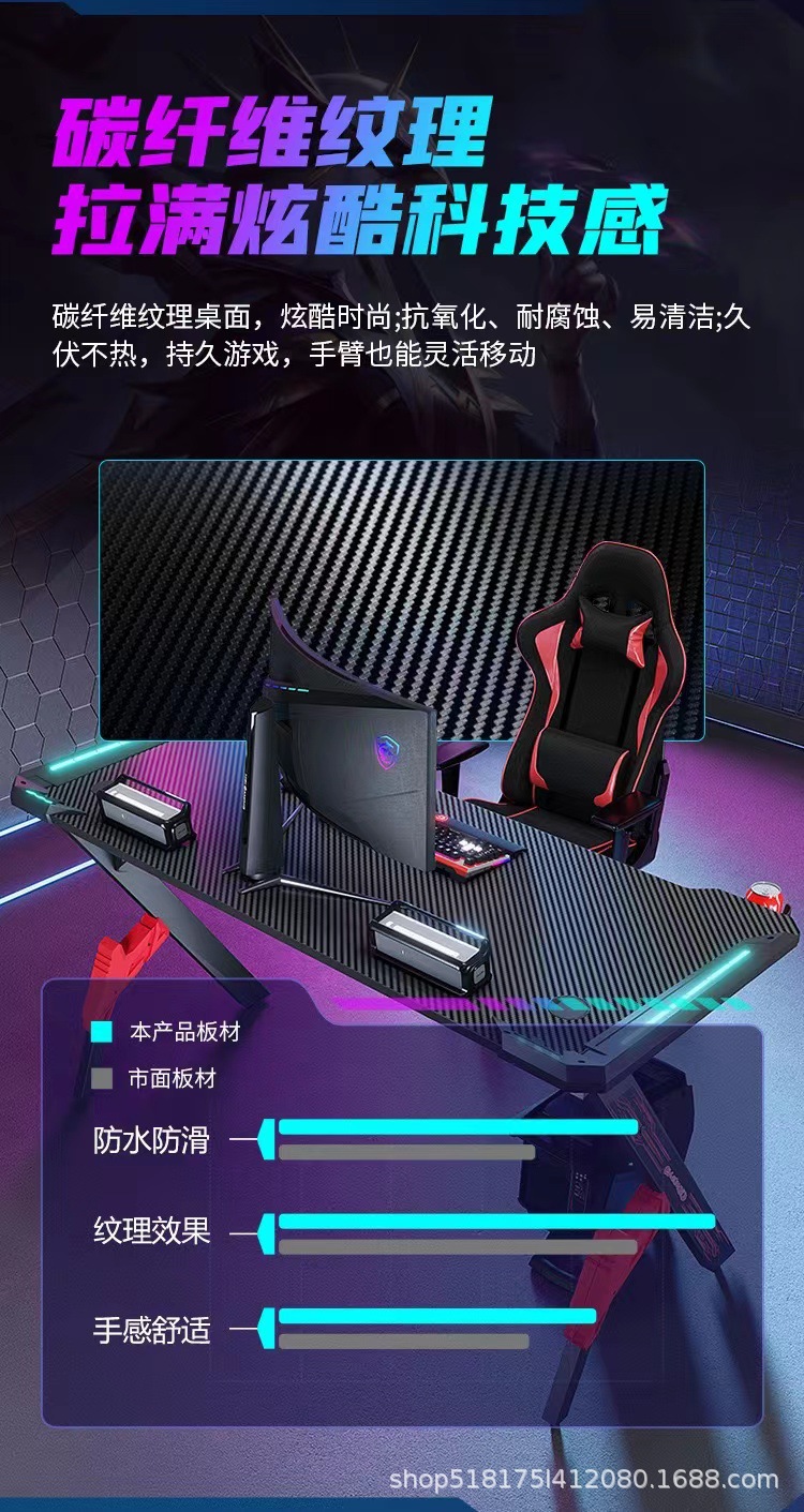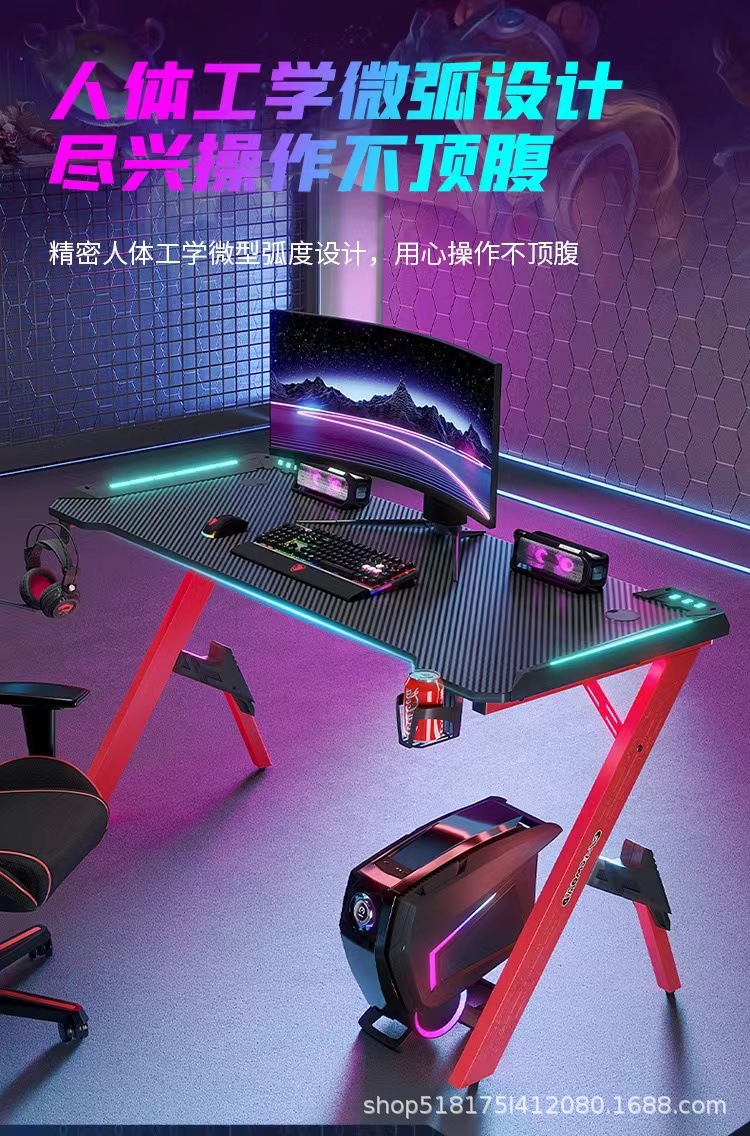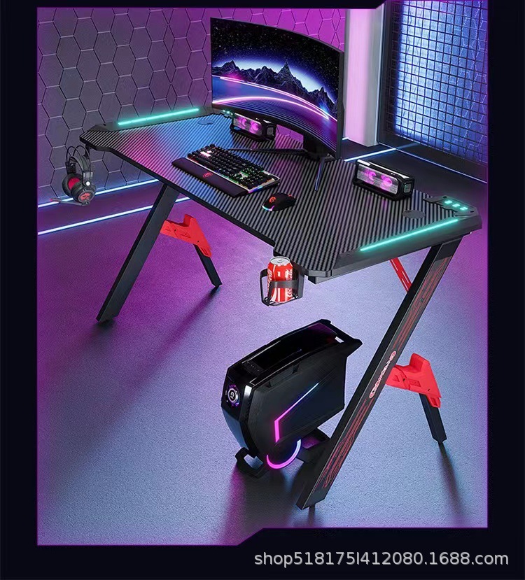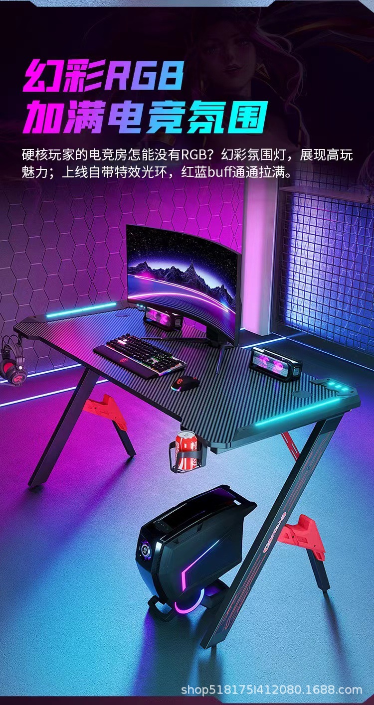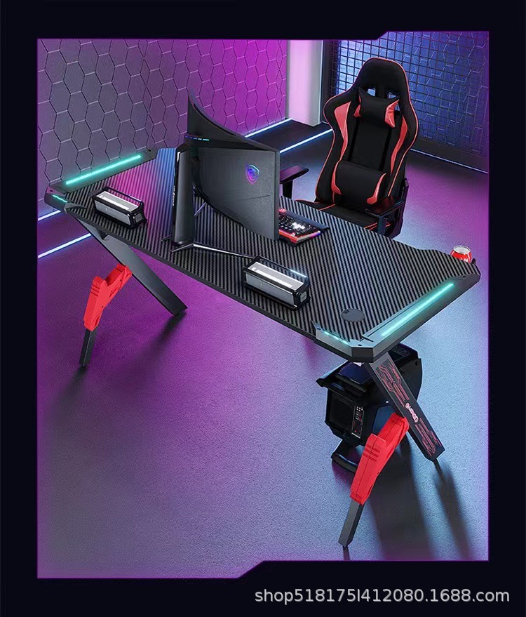 Pabrik serat karbon e-olahraga meja lintas batas RGB lampu depan bar Internet rumah kantor kompetitif perdagangan luar negeri meja komputer