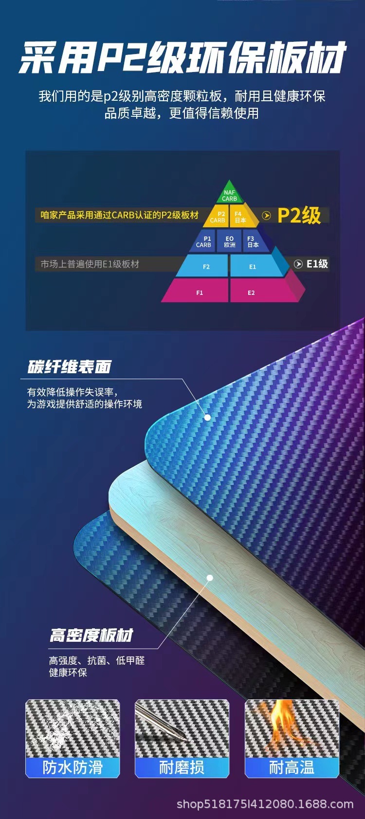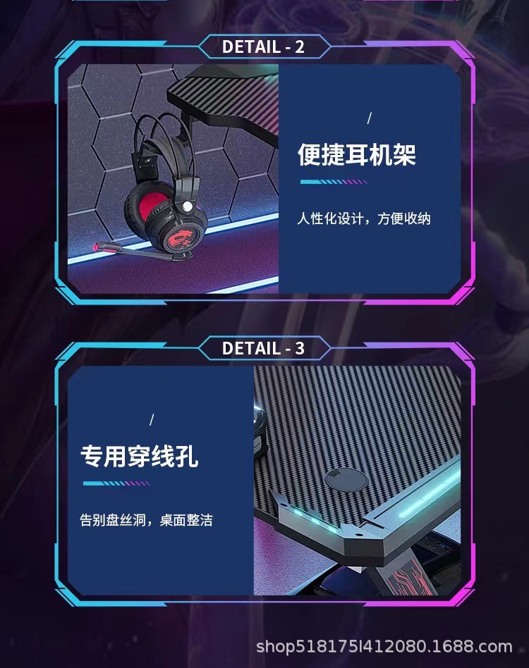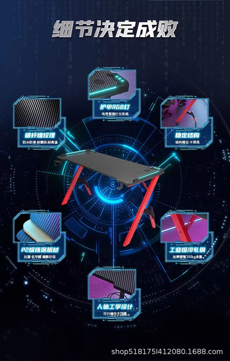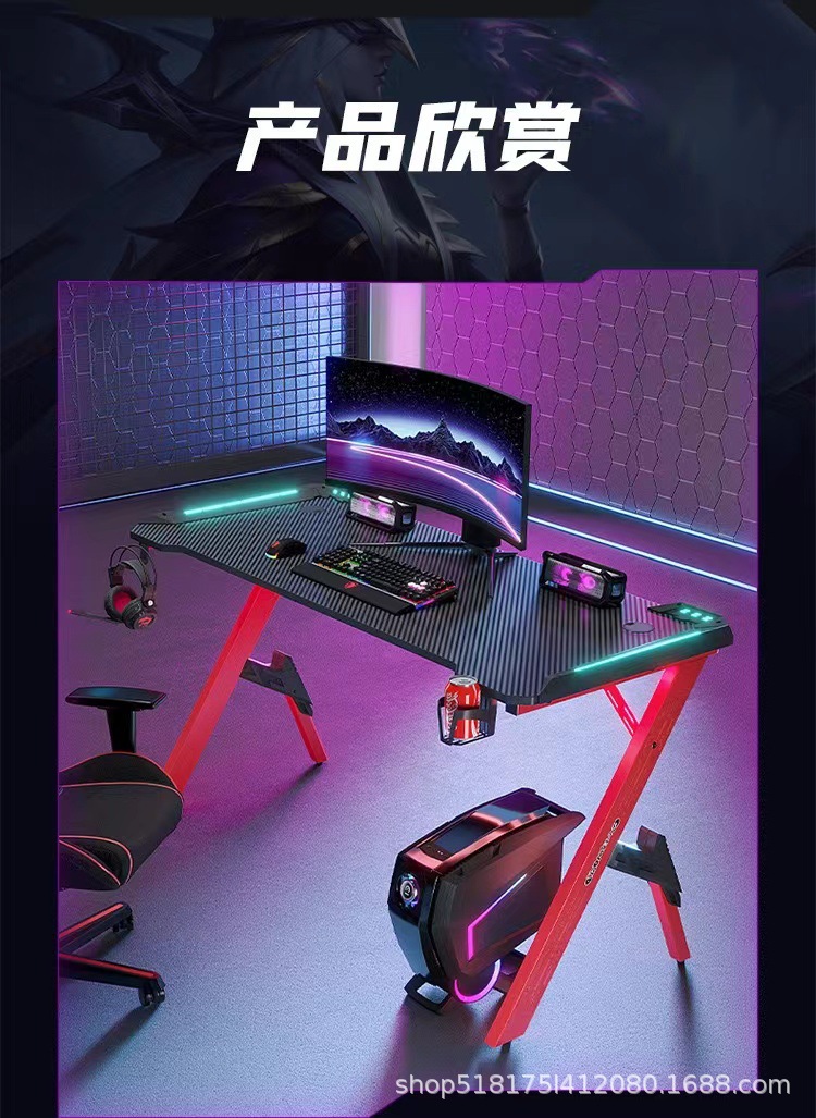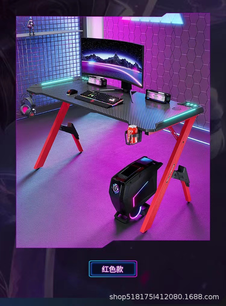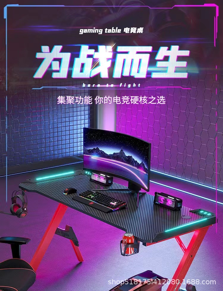 Pabrik serat karbon e-olahraga meja lintas batas RGB lampu depan bar Internet rumah kantor kompetitif perdagangan luar negeri meja komputer