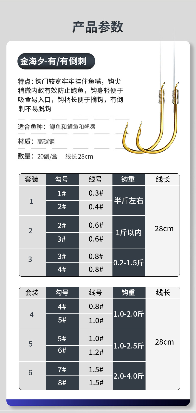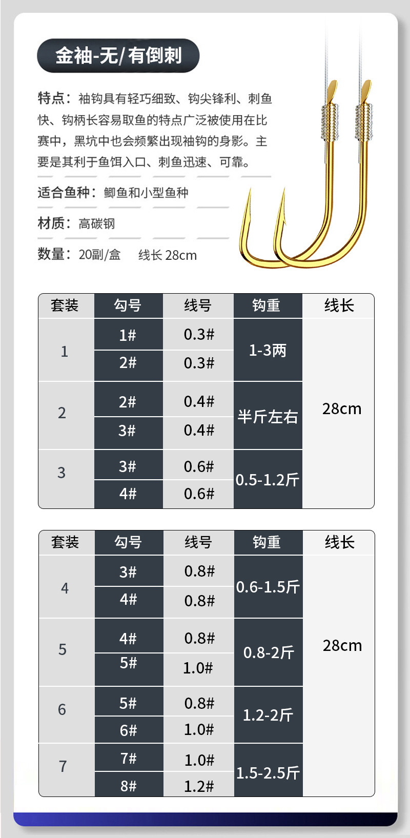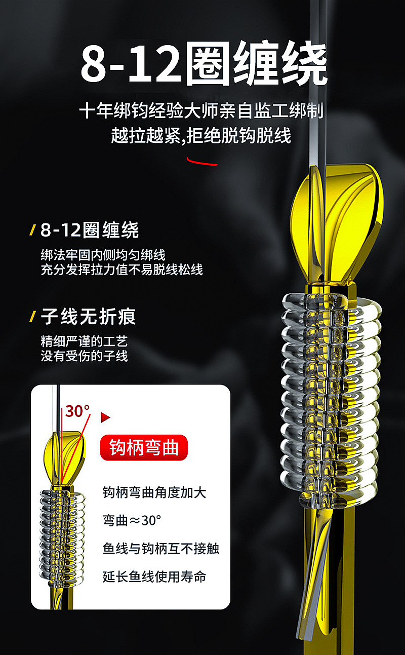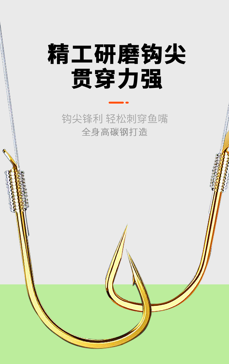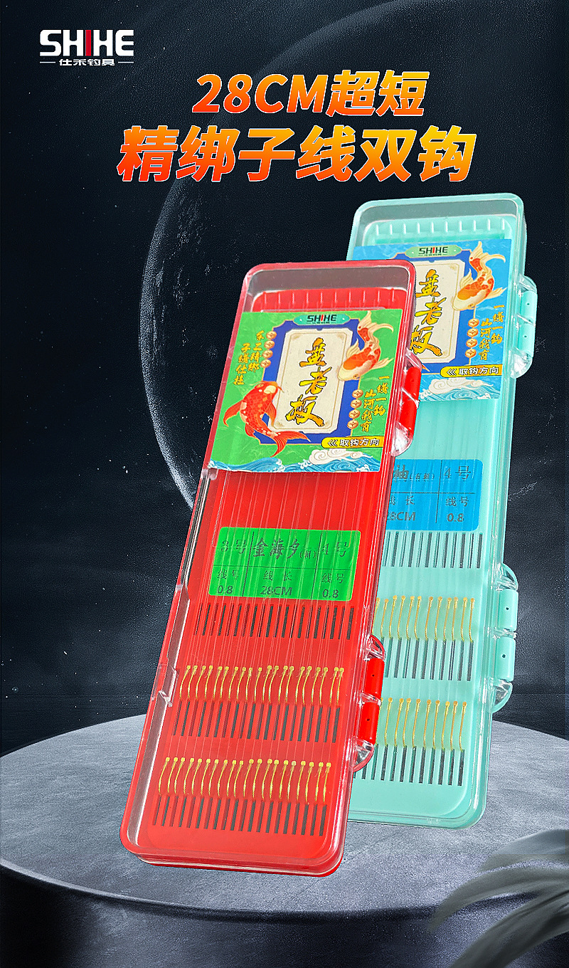 Shihe kail pancing pendek, kait ganda sub-line lengan emas haixi kait pancing buatan tangan murni, setelan shimhang grosir
