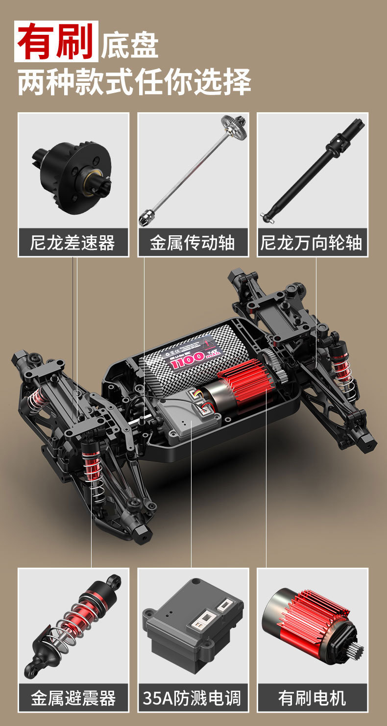 Mobil remote control, mainan mobil balap kendali jarak jauh penggerak empat roda lintas batas, mobil memanjat kecepatan tinggi, brushless, mobil drift besar, mobil off-road, mobil balap semua medan
