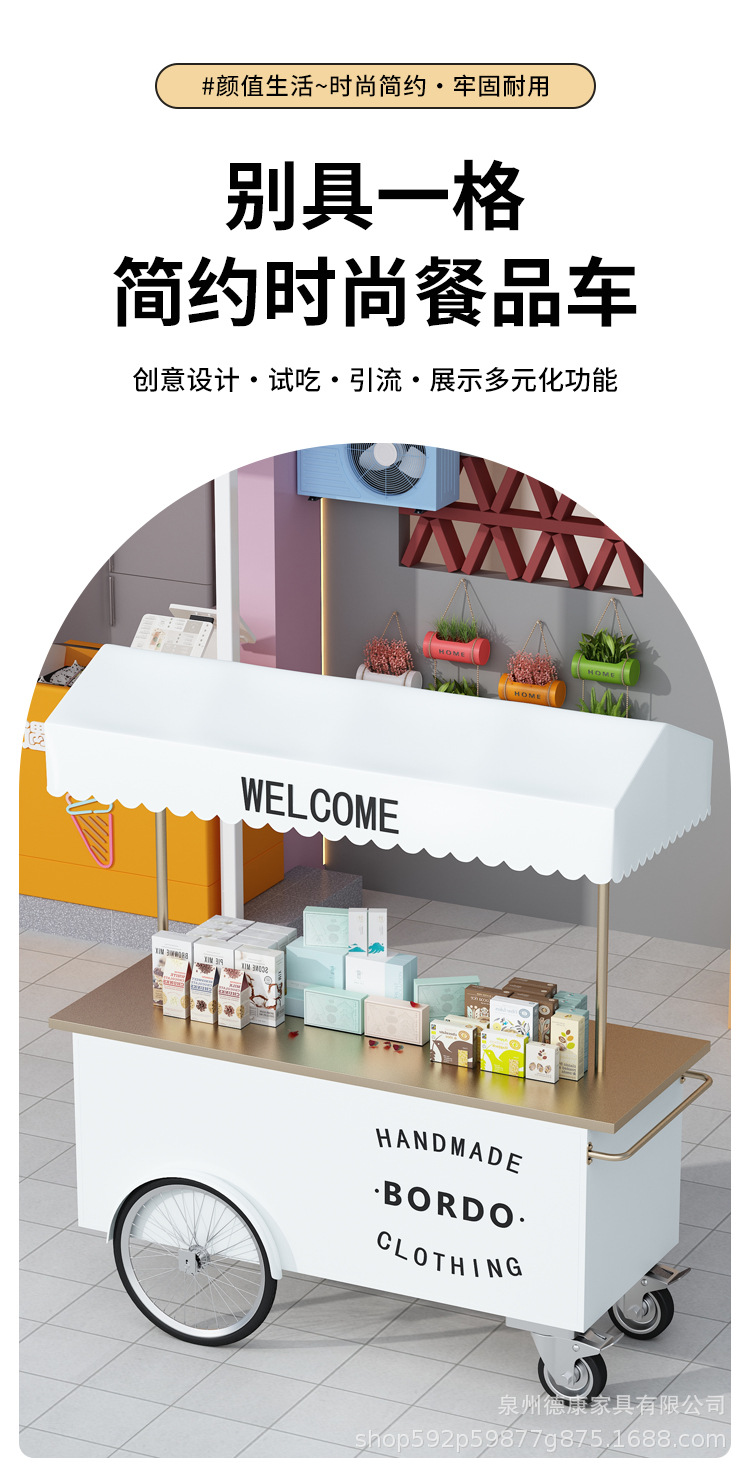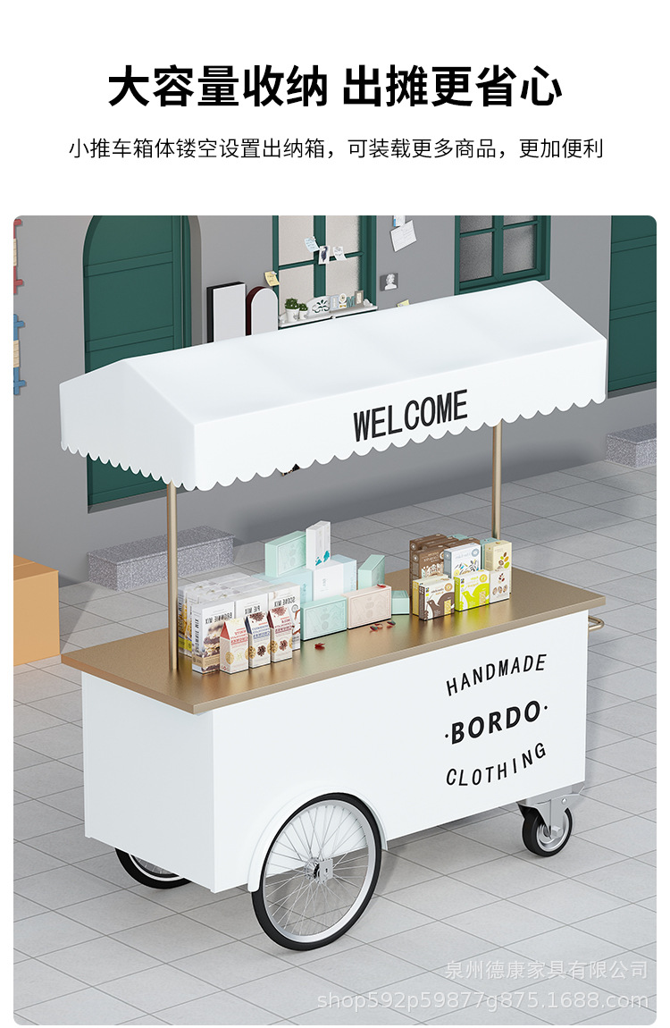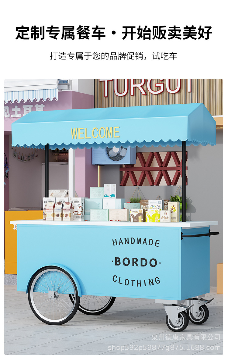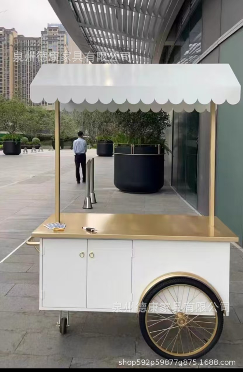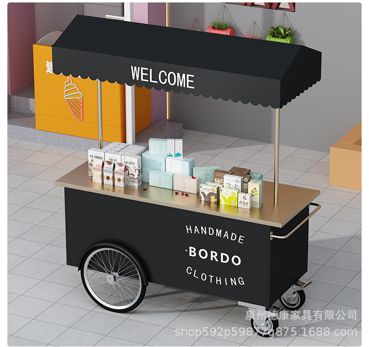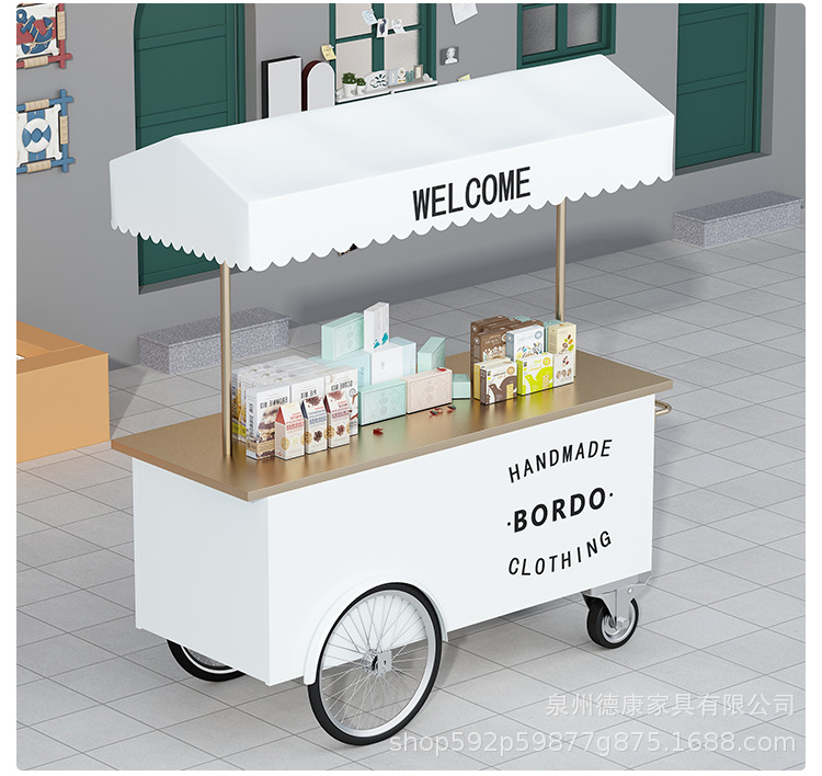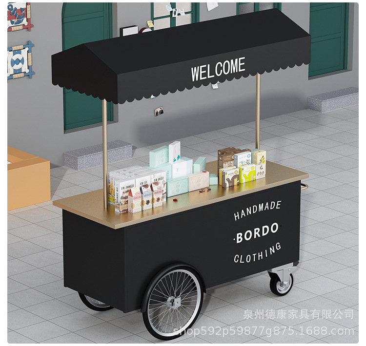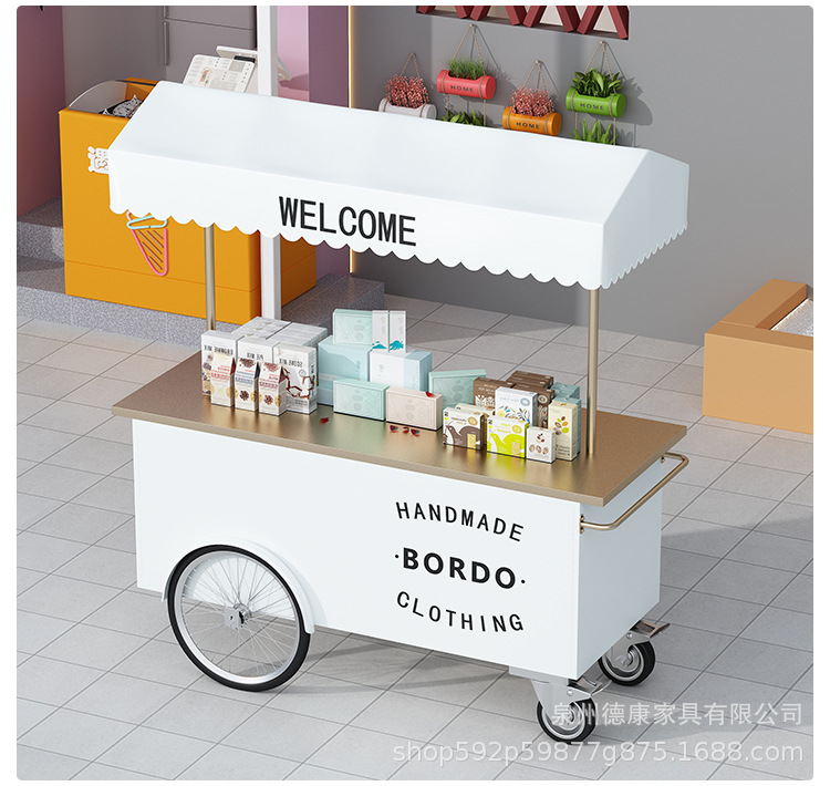 Stan troli apung luar ruangan tangan mendorong makan mobil supermarket shopping mall tampilan aktivitas mobil pasar malam makanan ringan mobil