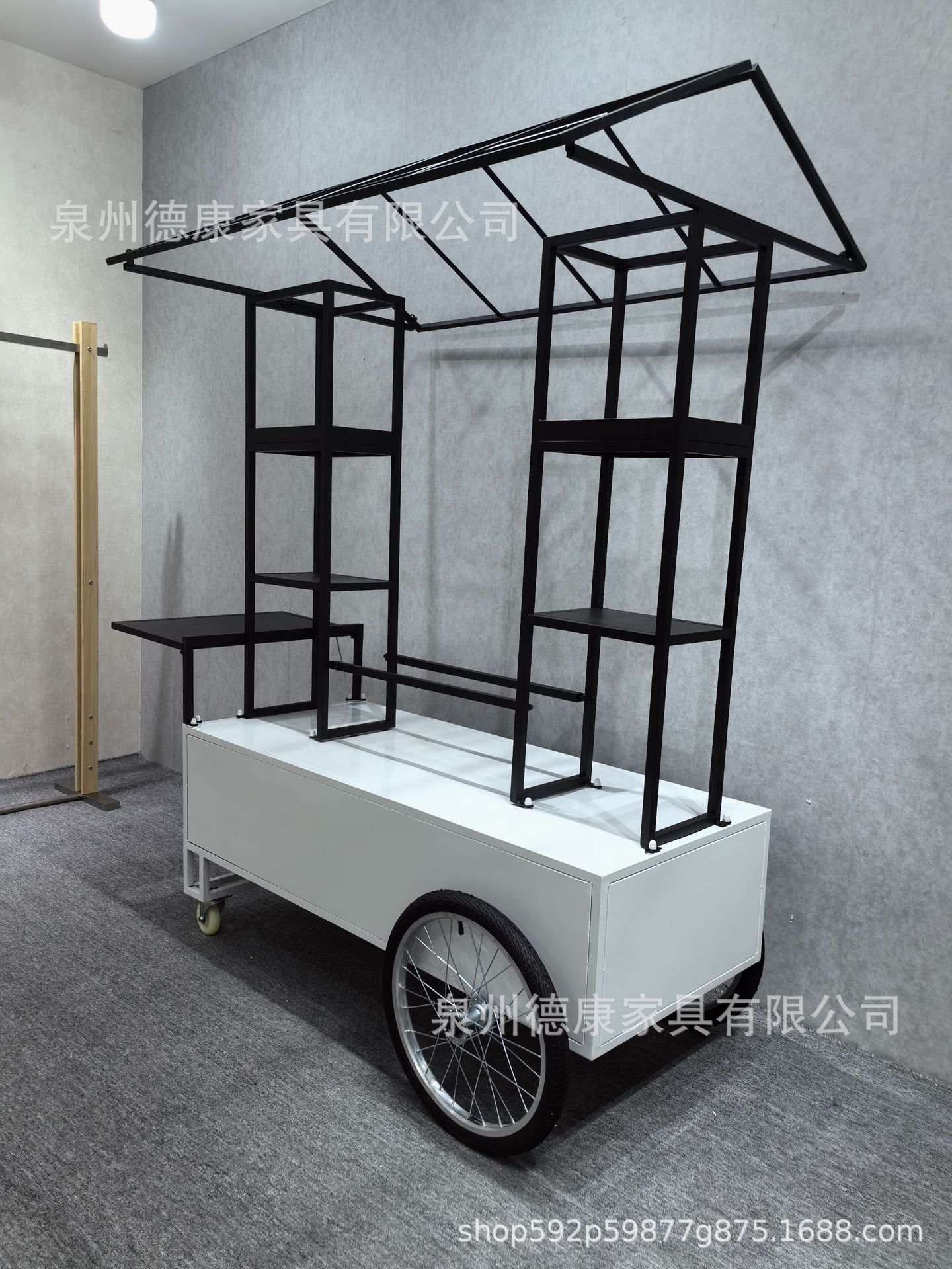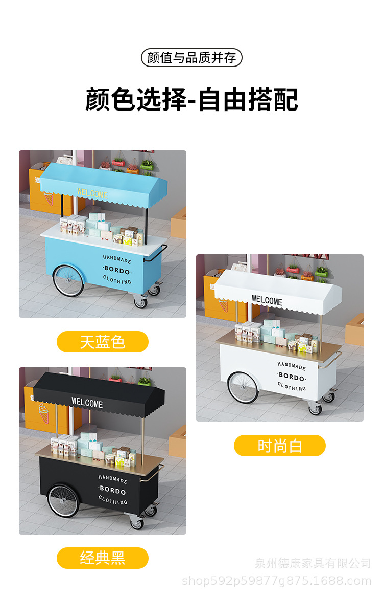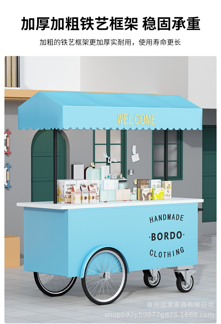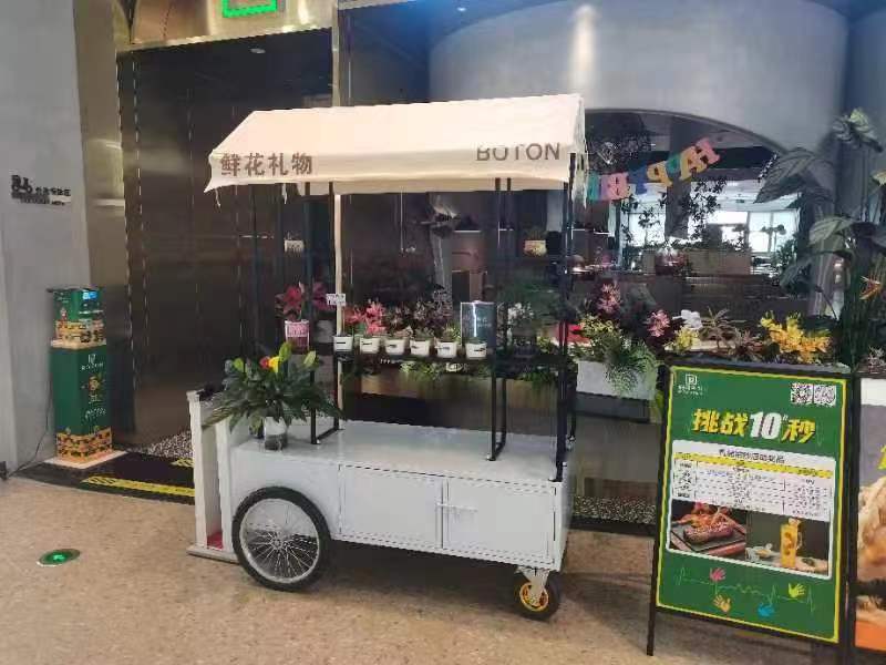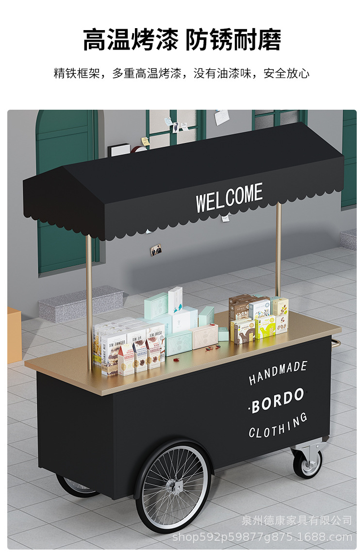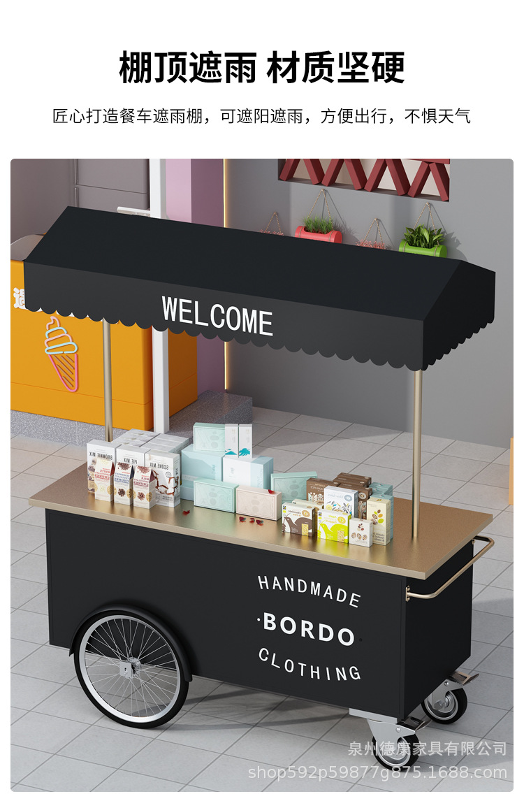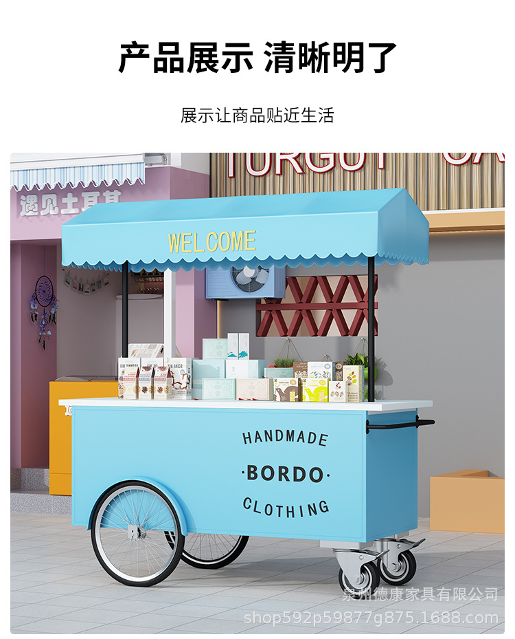 Stan troli apung luar ruangan tangan mendorong makan mobil supermarket shopping mall tampilan aktivitas mobil pasar malam makanan ringan mobil