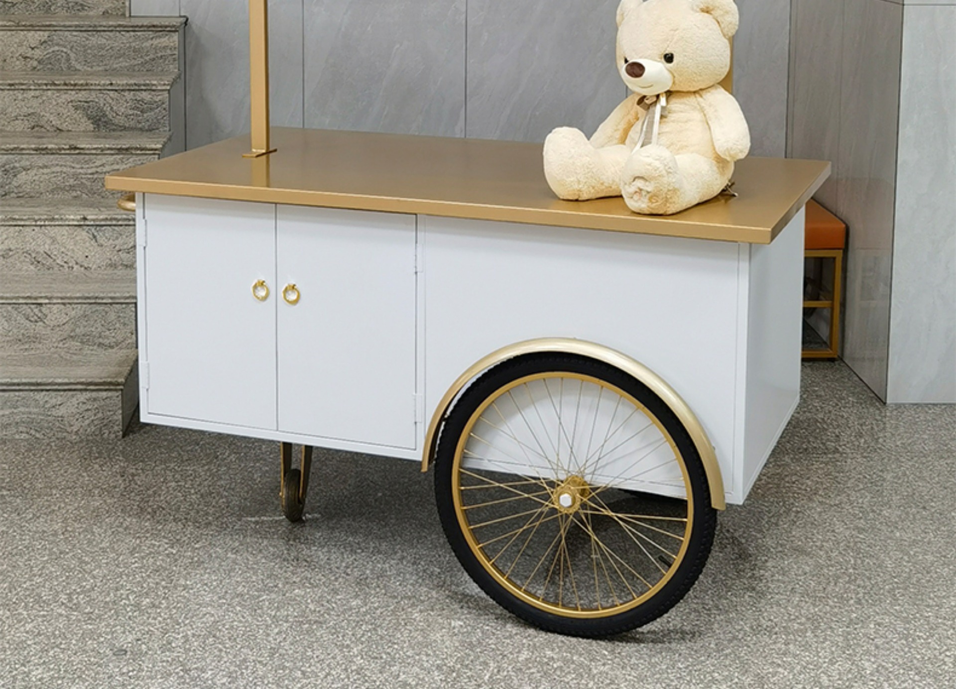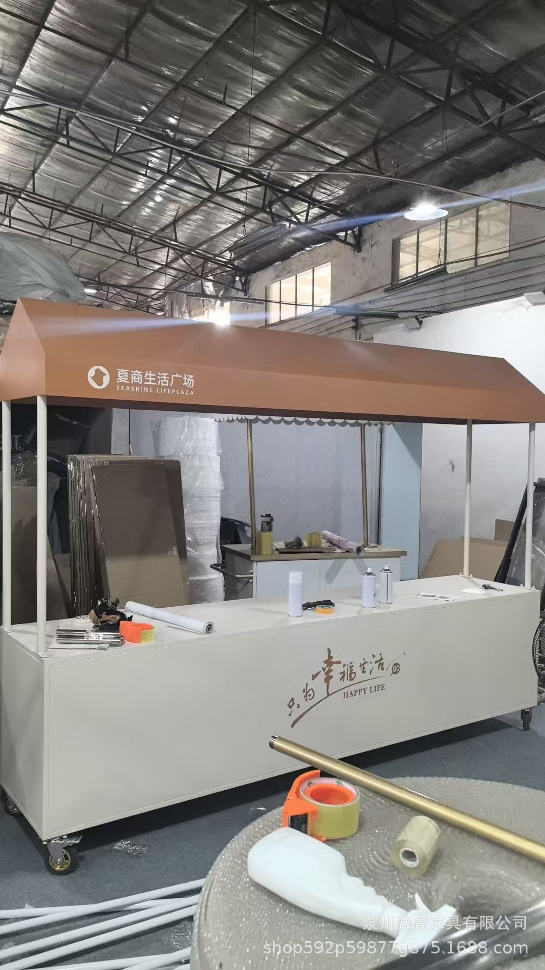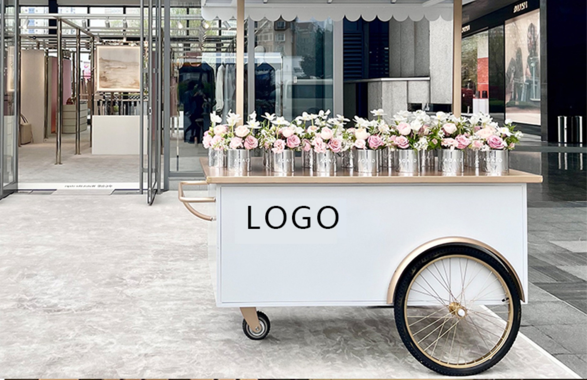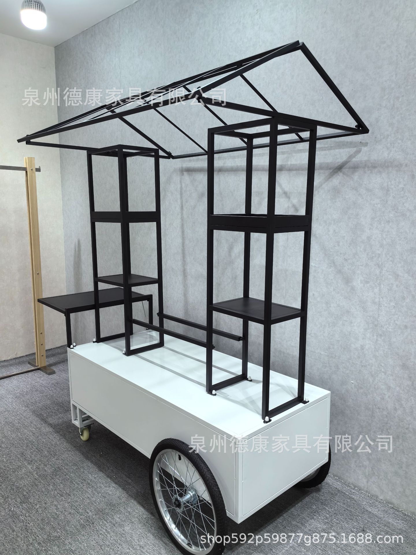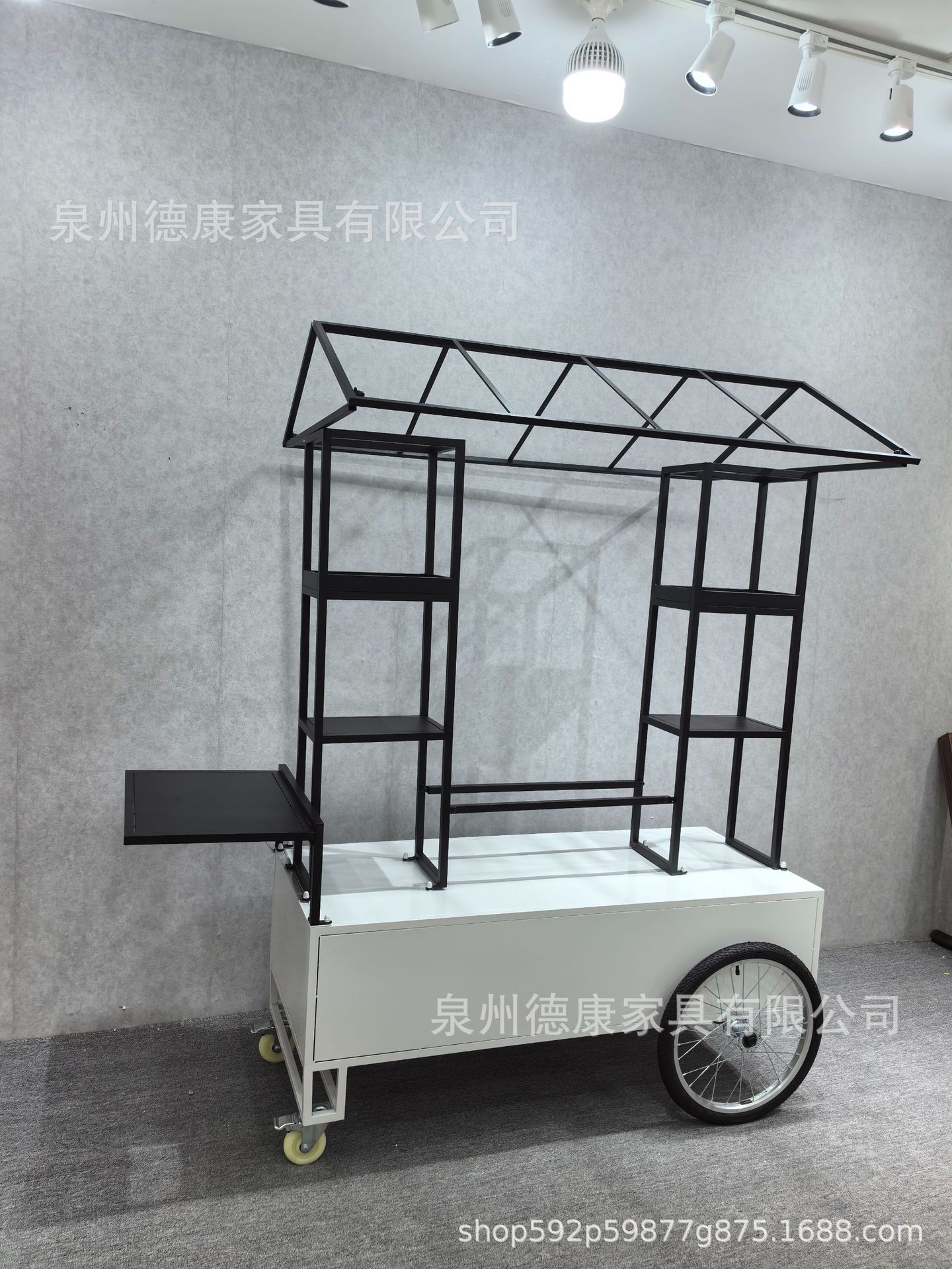 Stan troli apung luar ruangan tangan mendorong makan mobil supermarket shopping mall tampilan aktivitas mobil pasar malam makanan ringan mobil
