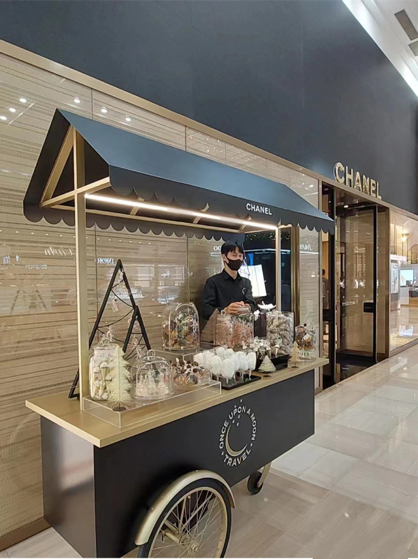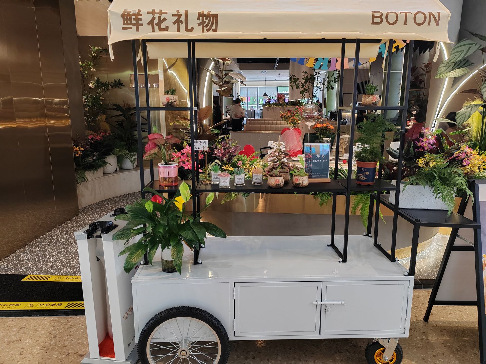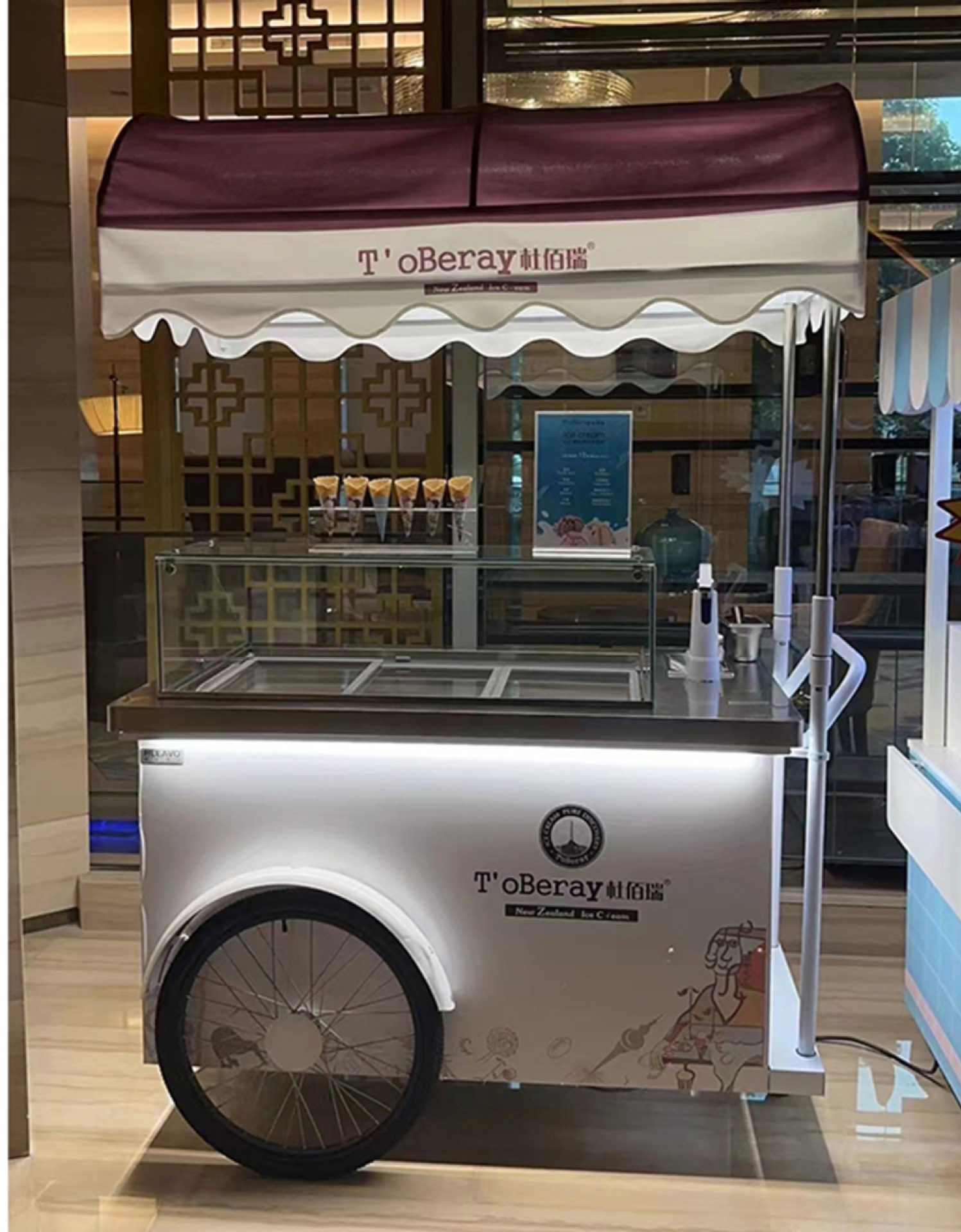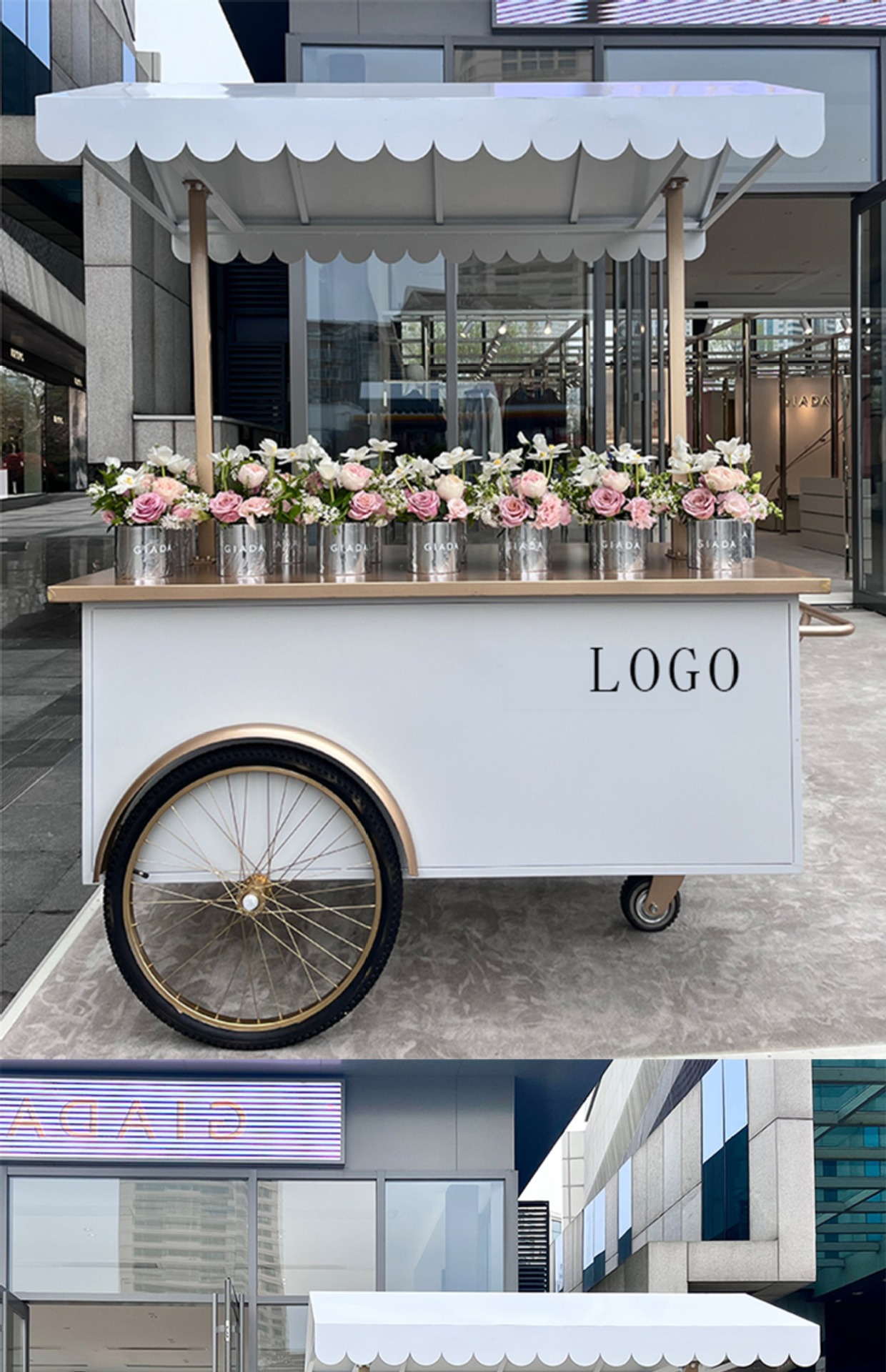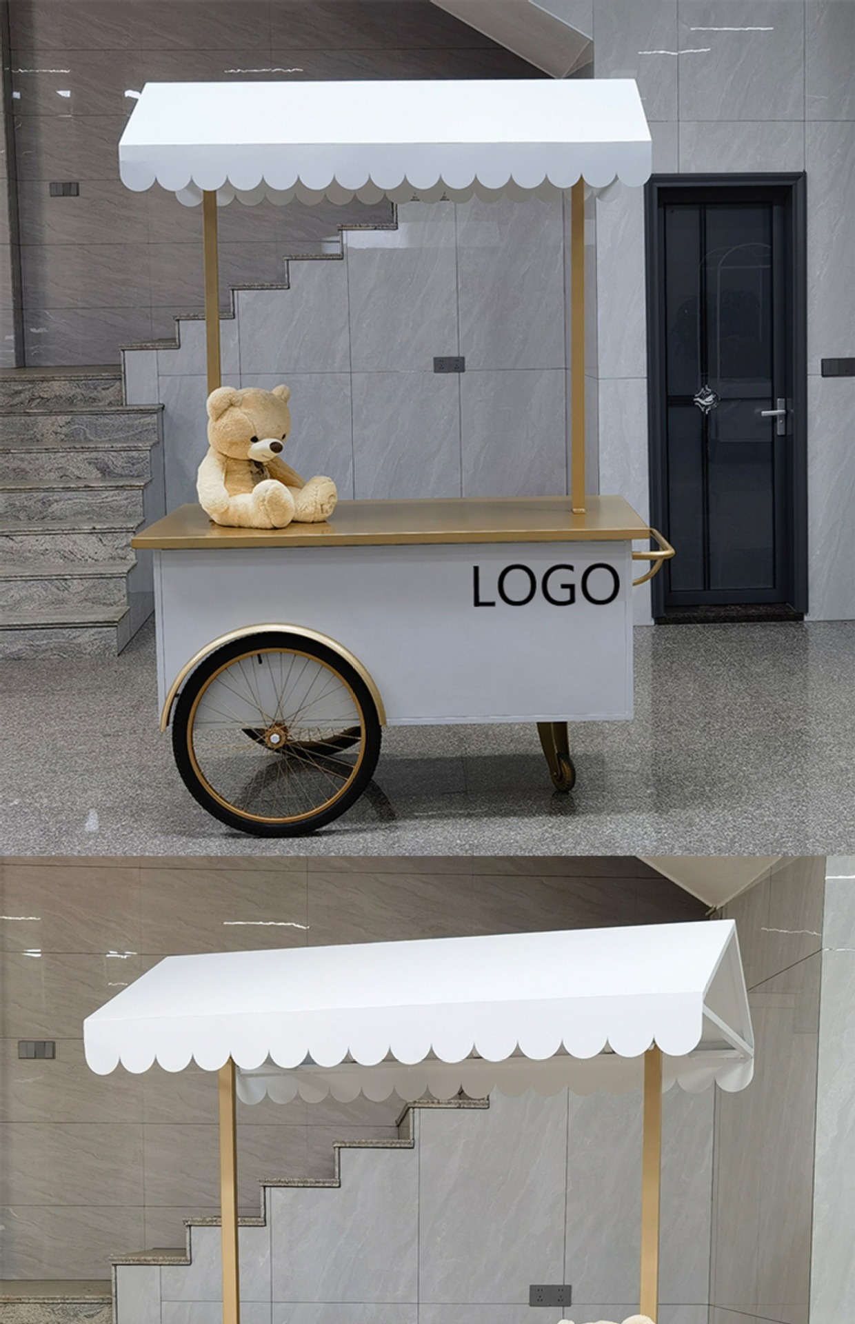Stan troli apung luar ruangan tangan mendorong makan mobil supermarket shopping mall tampilan aktivitas mobil pasar malam makanan ringan mobil