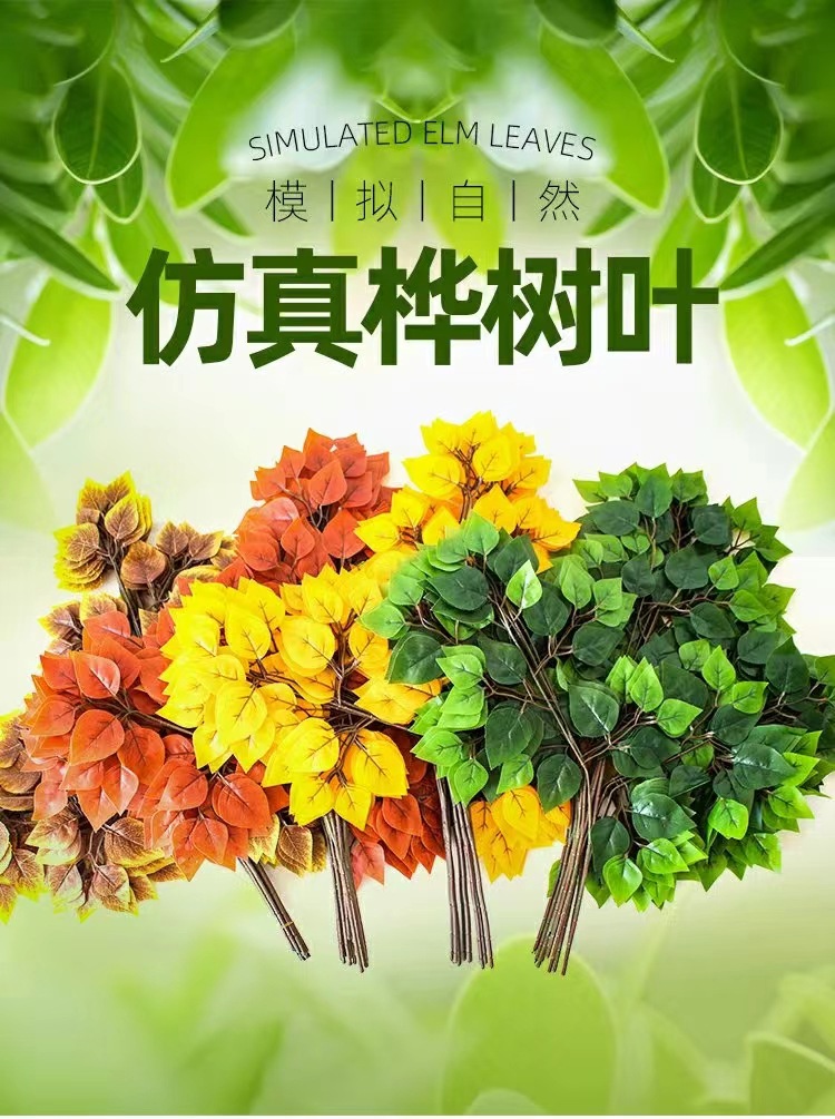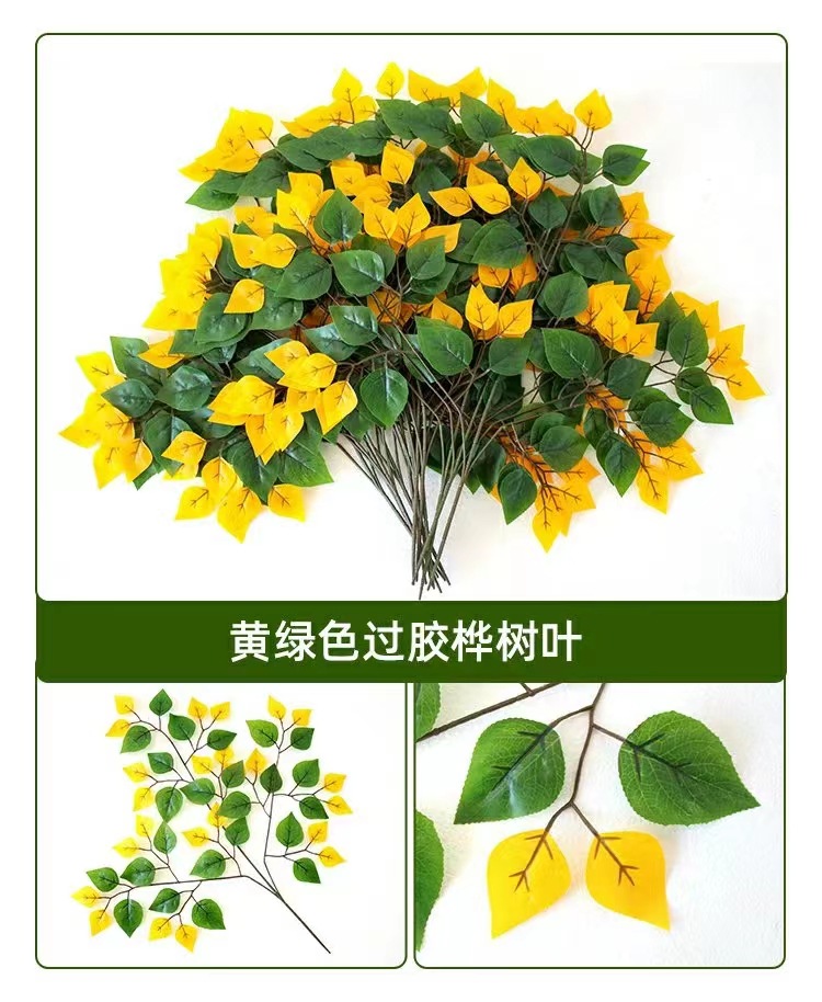 Daun Birch simulasi daun Banyan palsu daun cabang plastik daun hijau dekorasi tanaman hotel dalam ruangan teknik lansekap