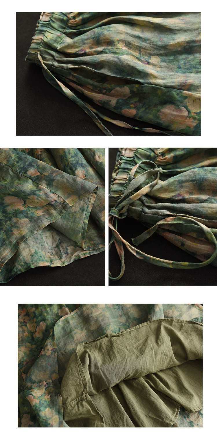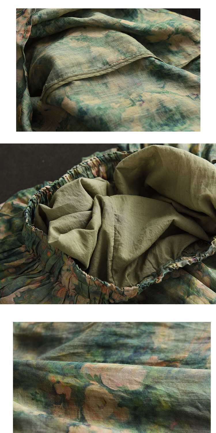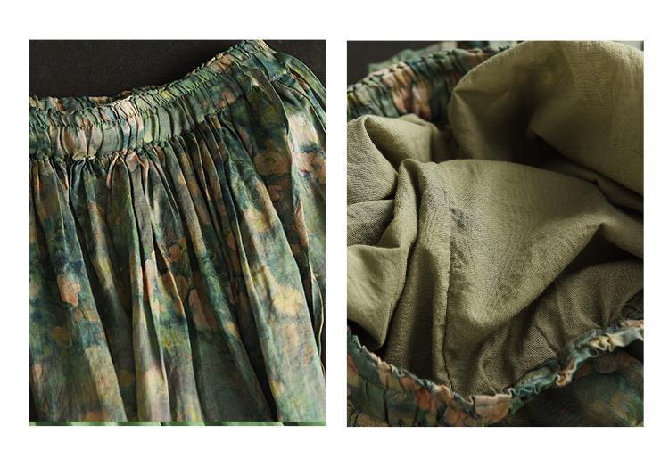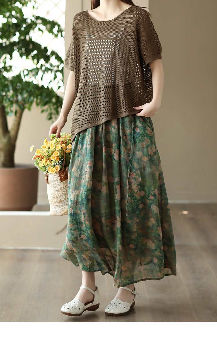 Rok Midi Katun Linen Motif Bunga Bordir Tebal Musim Panas 2023, Rok A-Line Motif Bunga Vintage untuk Wanita