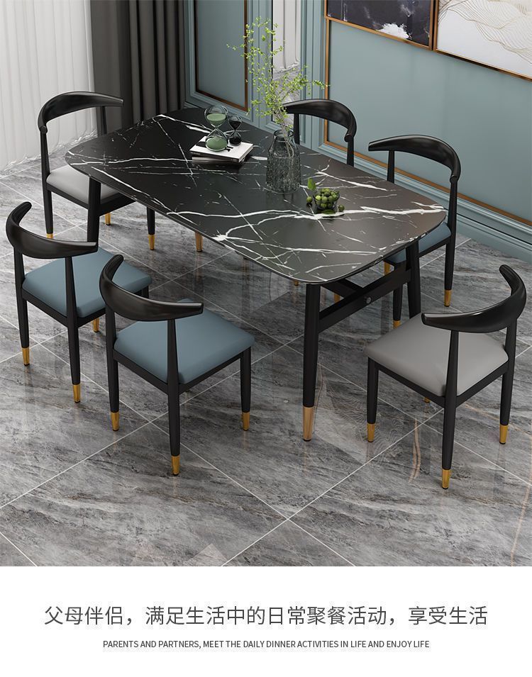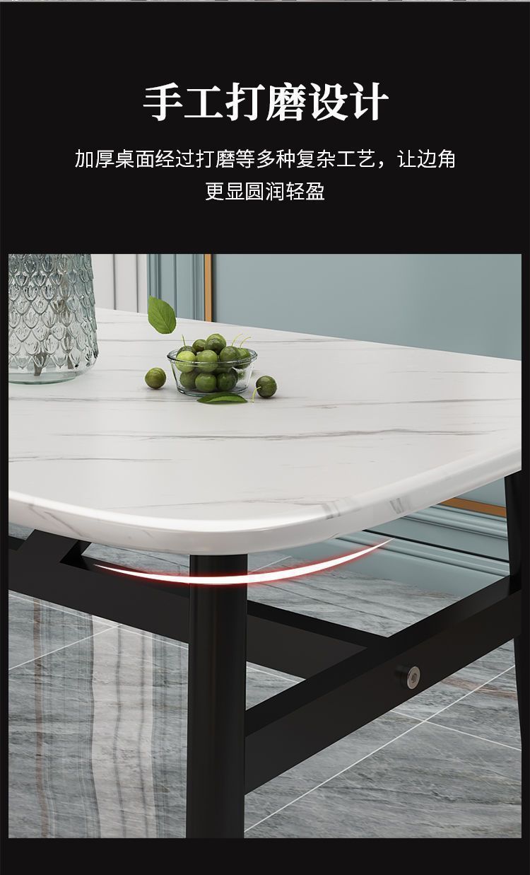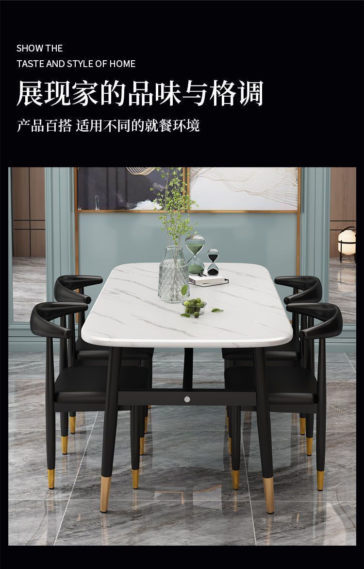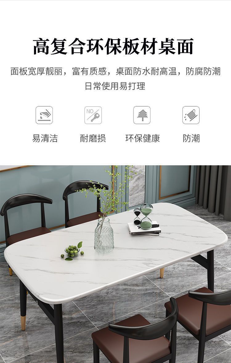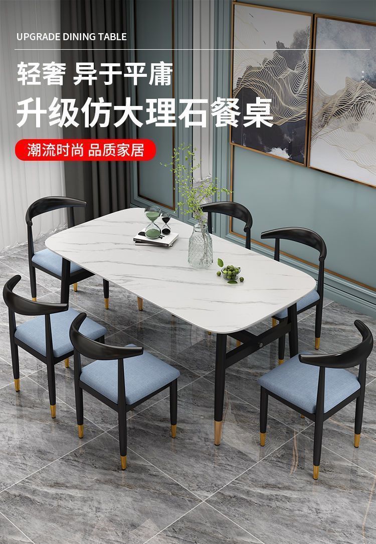 Meja Makan Marmer imitasi, meja makan dan kursi imitasi kombinasi meja makan rumah tangga modern sederhana kecil restoran meja makan persegi panjang