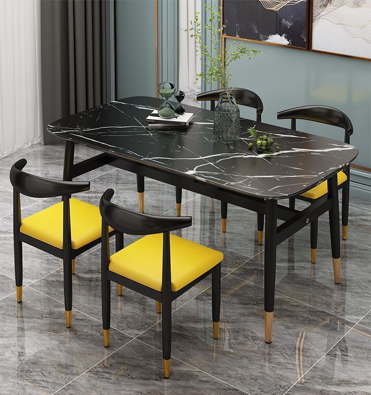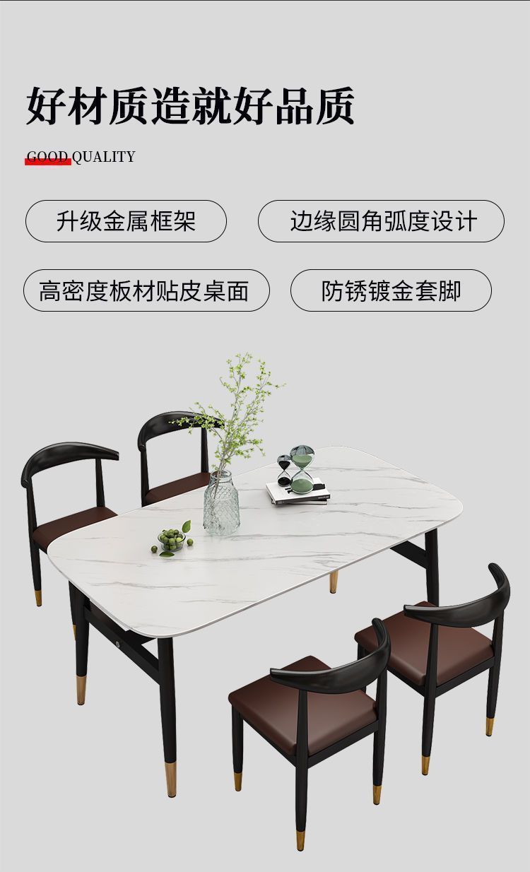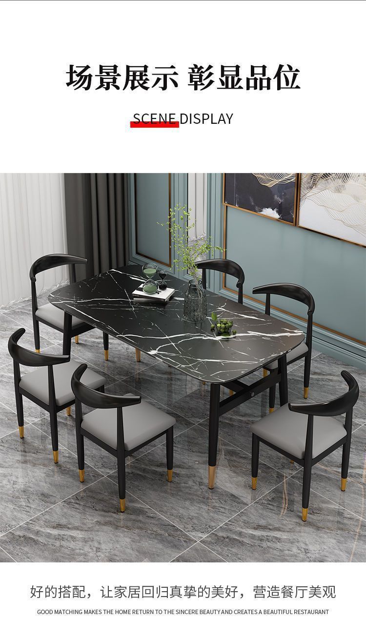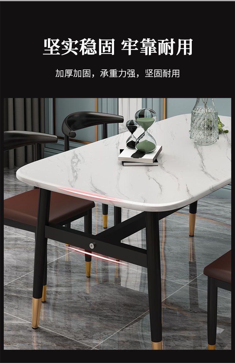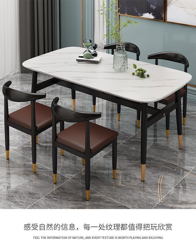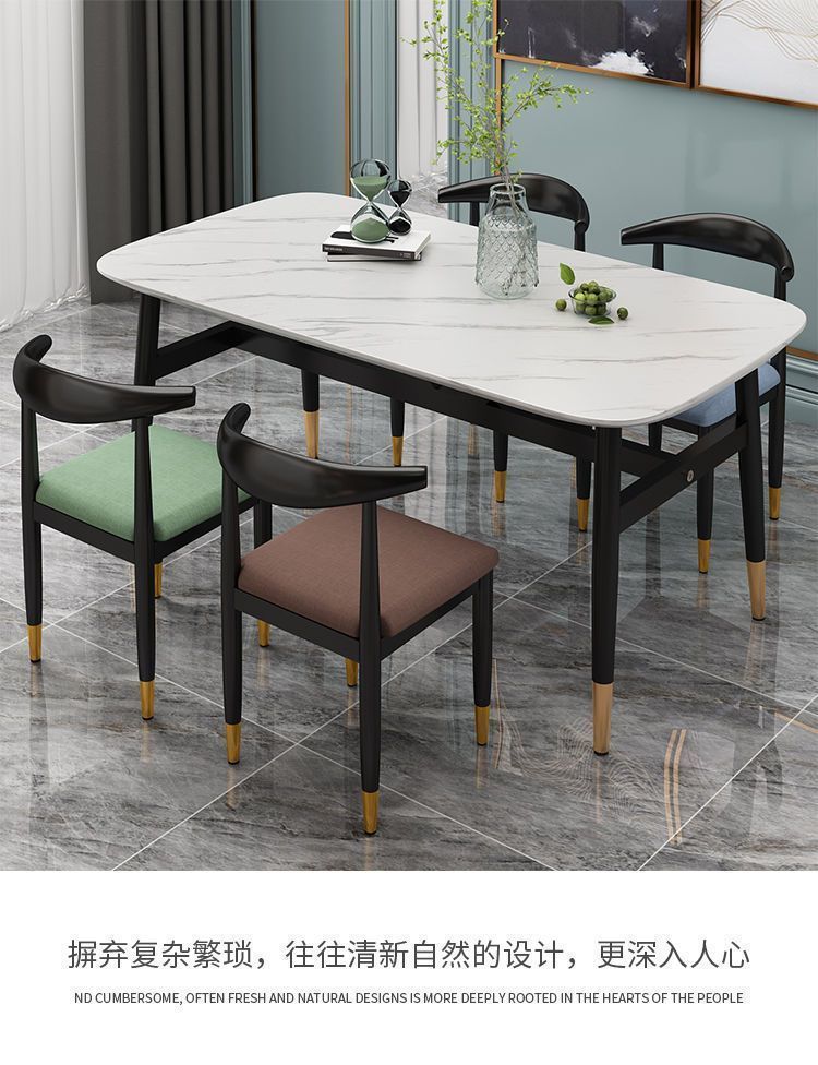 Meja Makan Marmer imitasi, meja makan dan kursi imitasi kombinasi meja makan rumah tangga modern sederhana kecil restoran meja makan persegi panjang