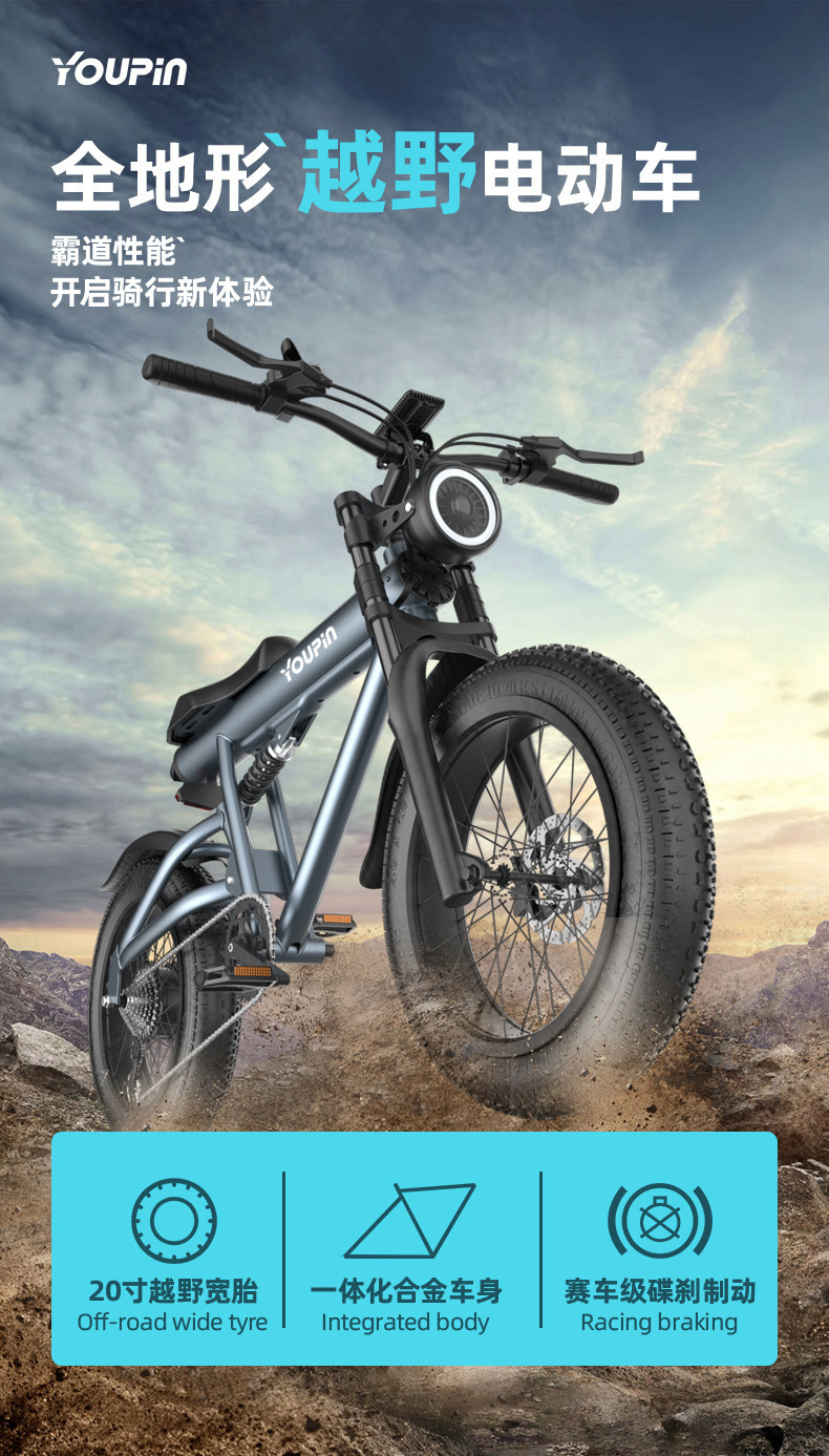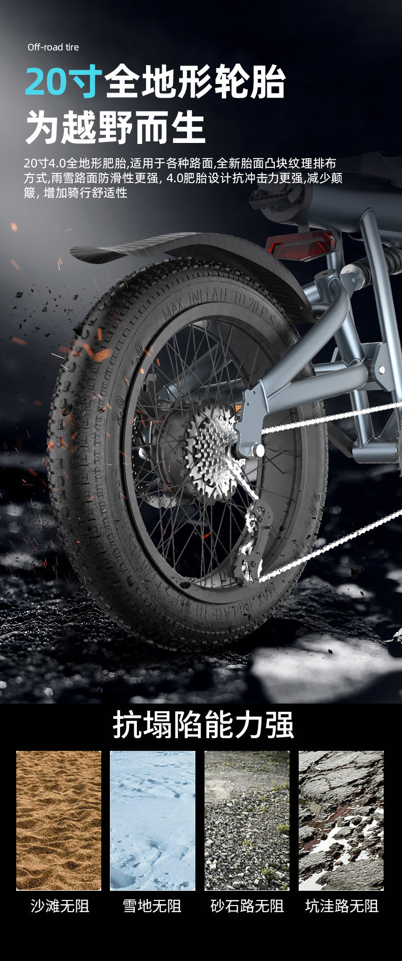 Sepeda listrik kuat lintas batas, sepeda listrik kuat off-road 20 inci cocok untuk mobil baterai daya lithium gunung pantai