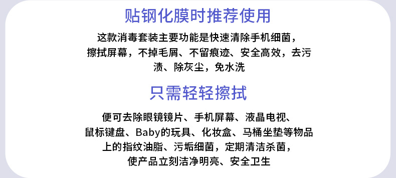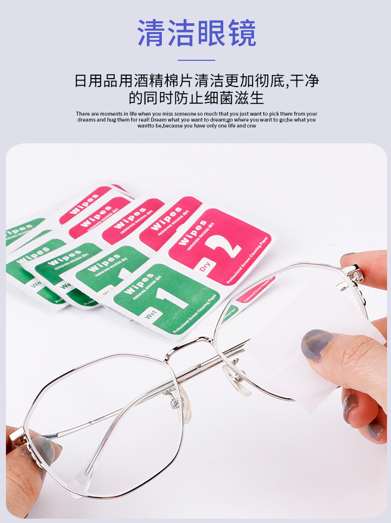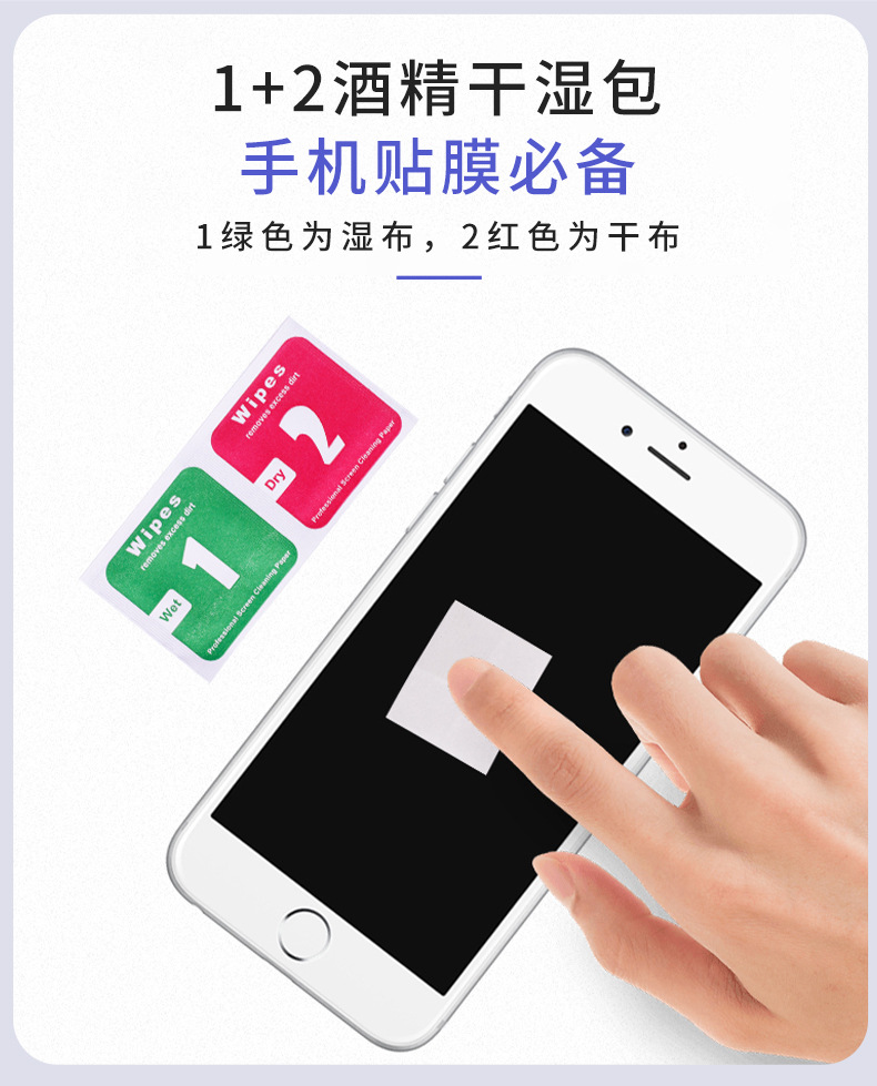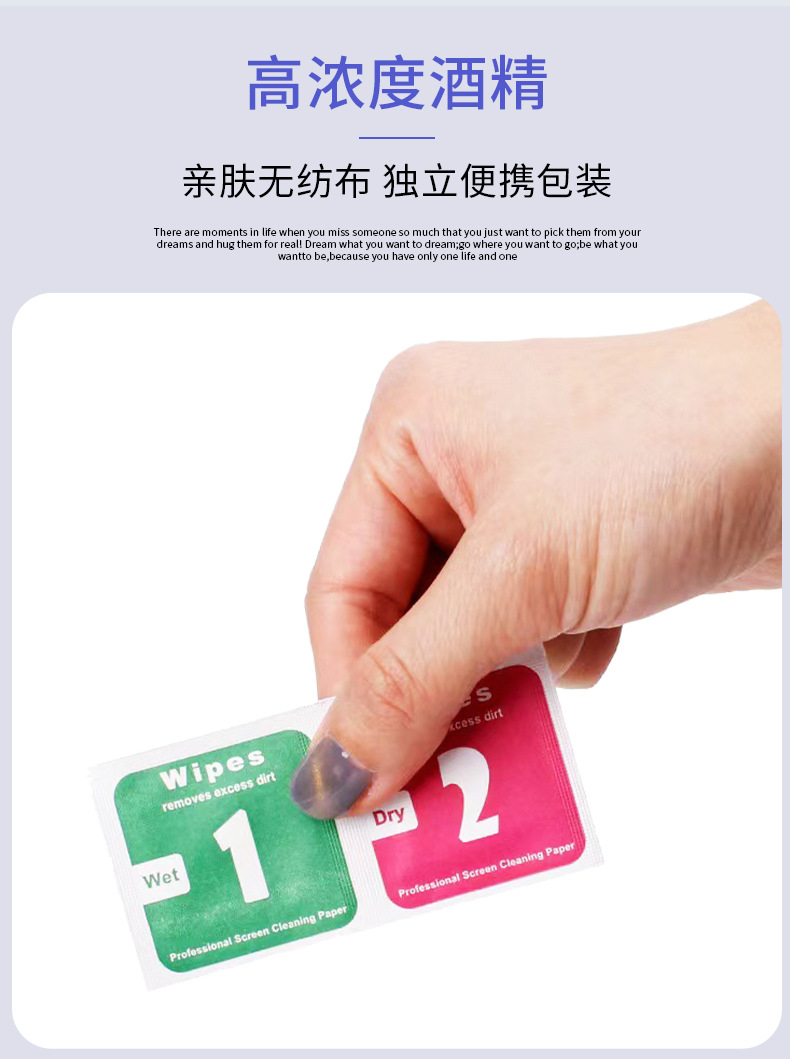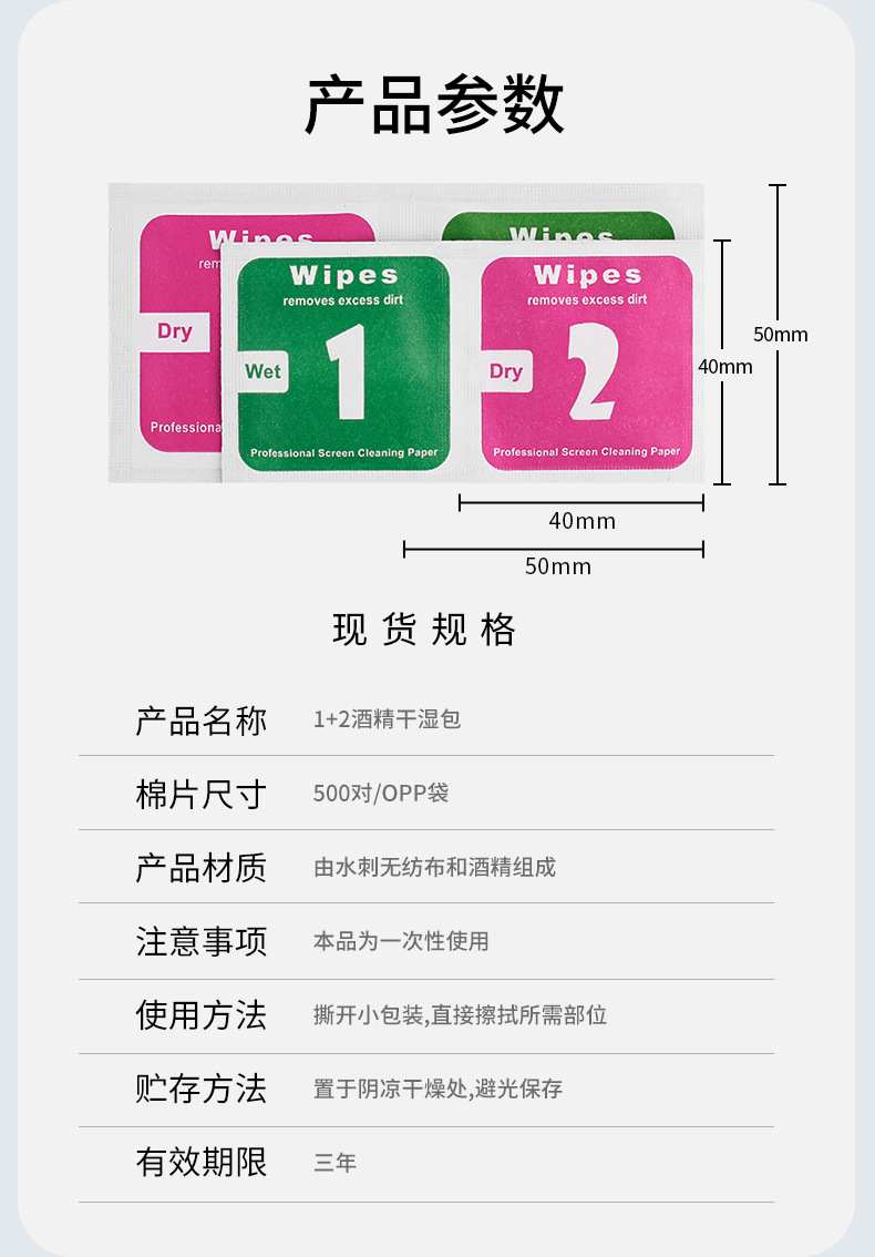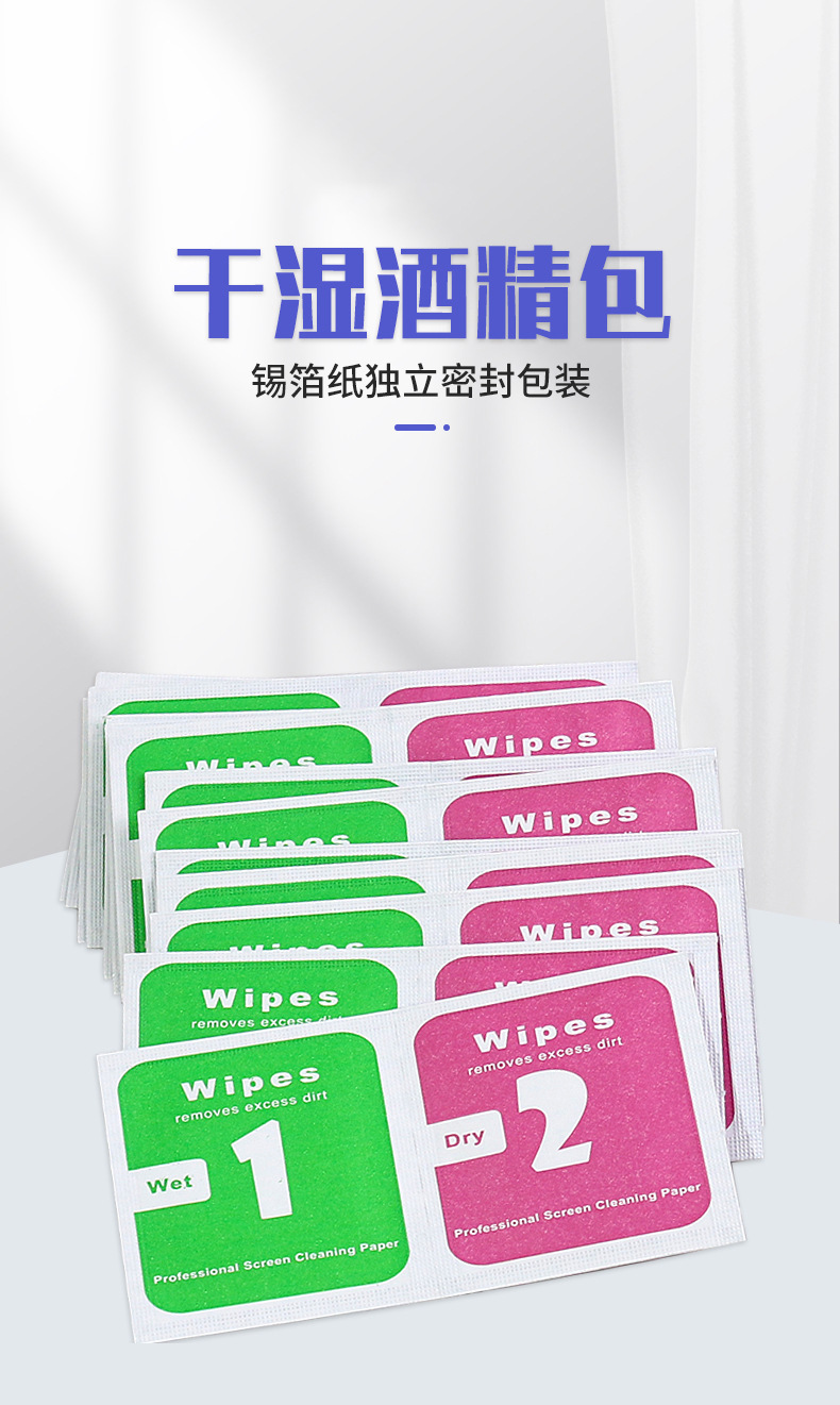 1+2 lembar tisu alkohol basah dan kering untuk aplikasi film tempered ponsel, penghilang debu, dan pembersih layar, grosir tisu alkohol.