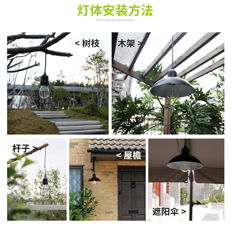 Yinglang lampu gantung tenaga surya, lampu gantung besi retro luar ruangan taman halaman koridor