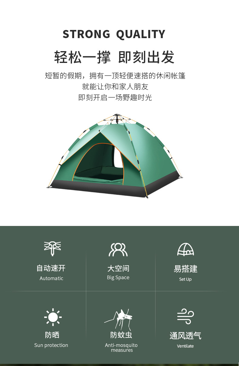 Tenda berkemah lintas batas, tenda piknik portabel lipat otomatis tanpa persiapan untuk penggunaan di luar ruangan.