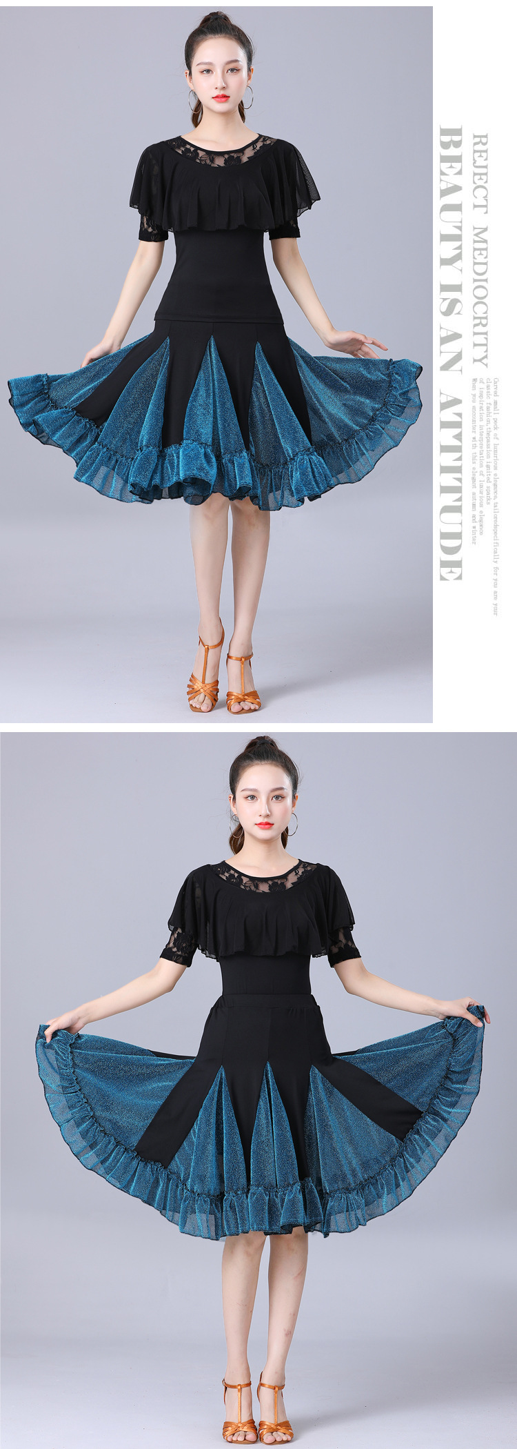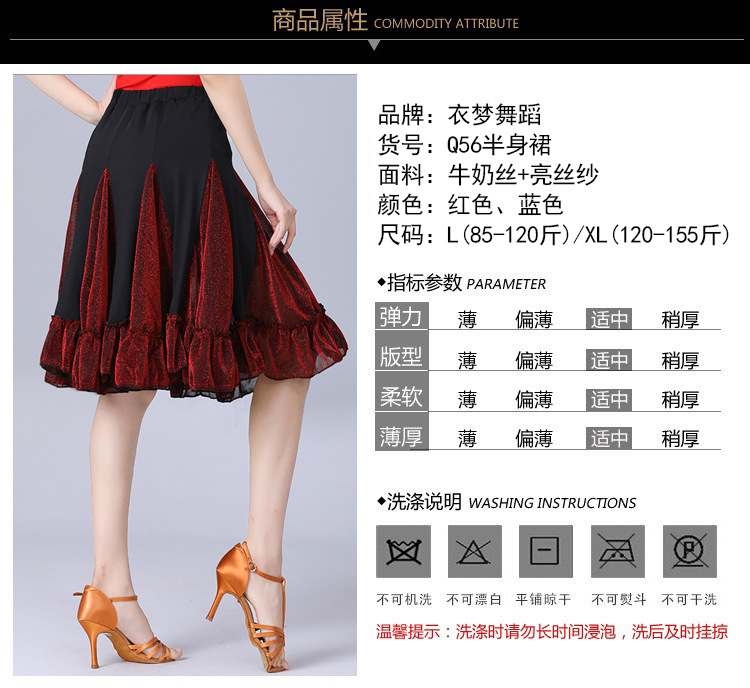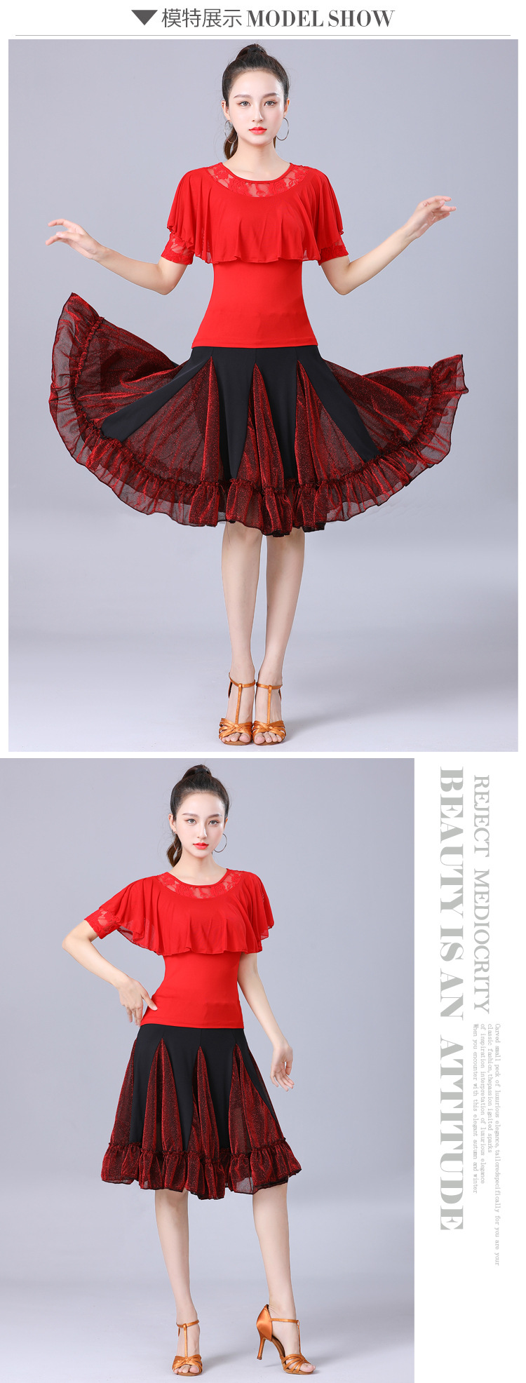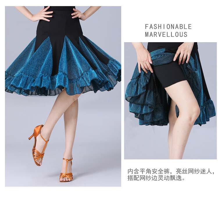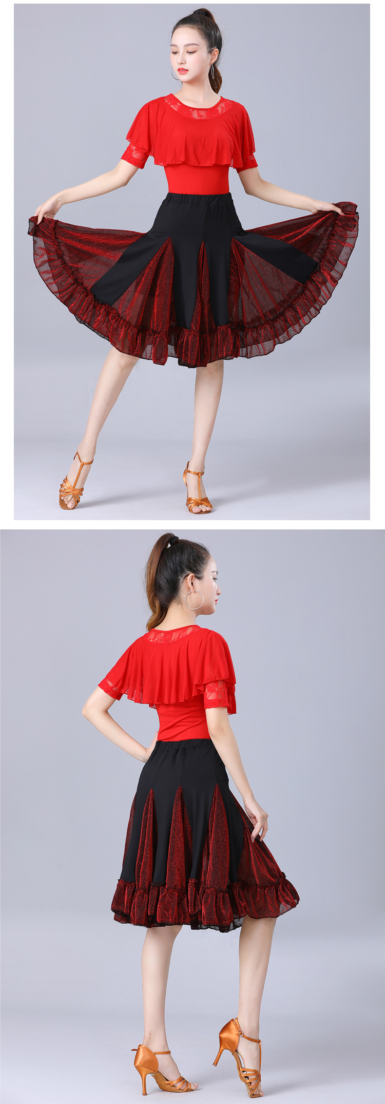 Pakaian dansa, rok tari Latin wanita dewasa, pakaian latihan dansa, rok ayun besar