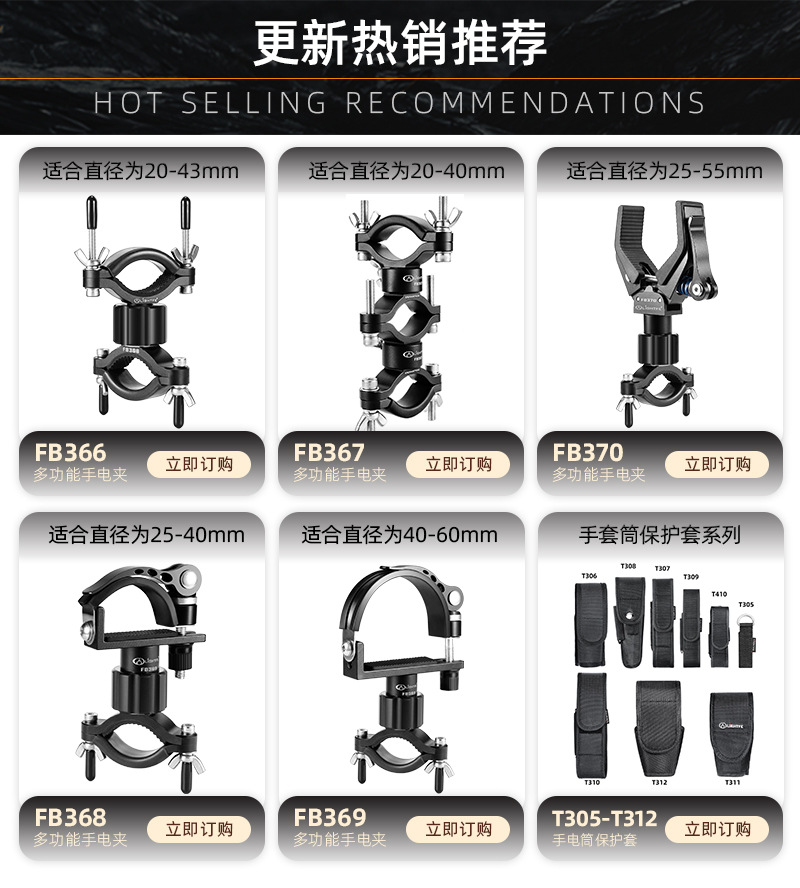 FB367 可多个组合手电筒支架铝合金360度旋转