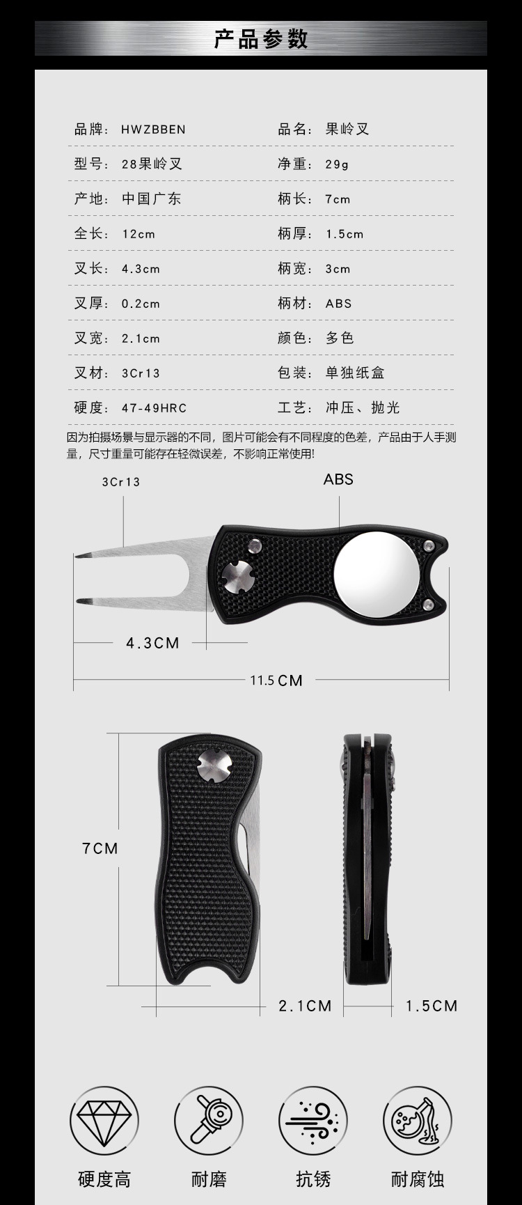 Aksesoris golf tersedia, alat luar ruangan, garpu lipat untuk lapangan golf, baja tahan karat, gagang plastik ABS, garpu perbaikan rumput