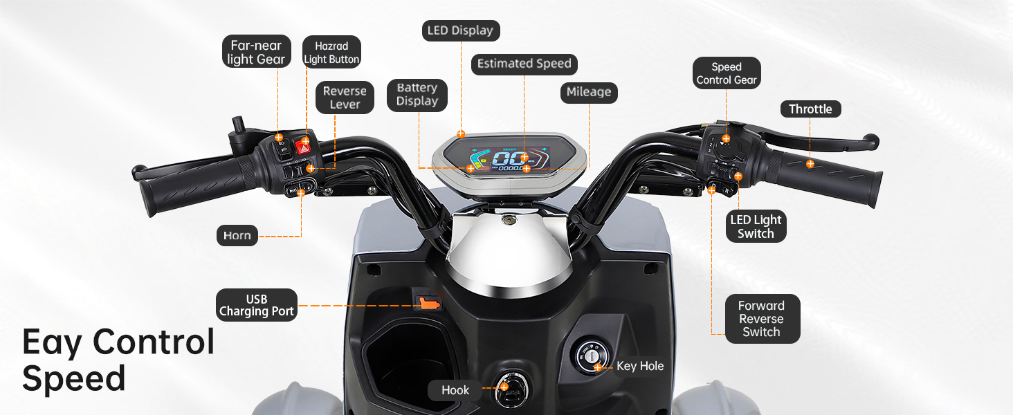 Skuter listrik roda empat bertenaga tinggi untuk wisata pabrik sumber, sepeda motor untuk penyandang disabilitas rumahan, dan rekreasi ganda.